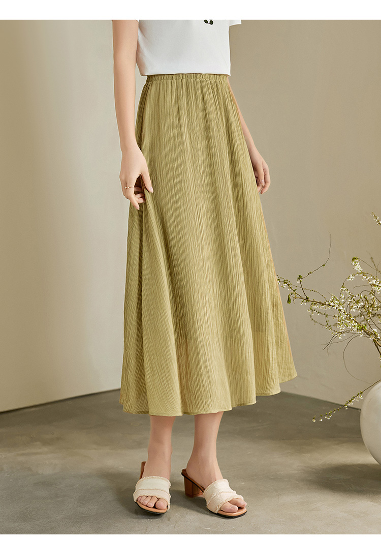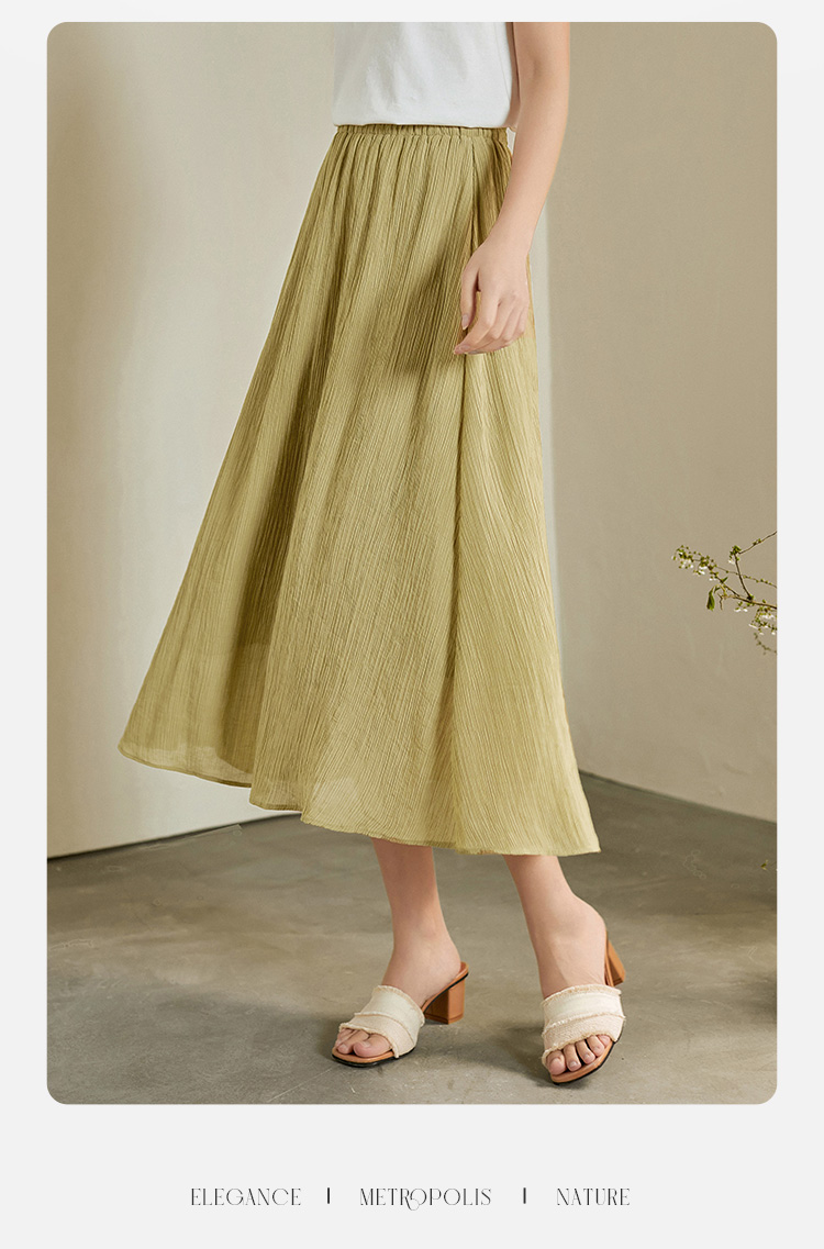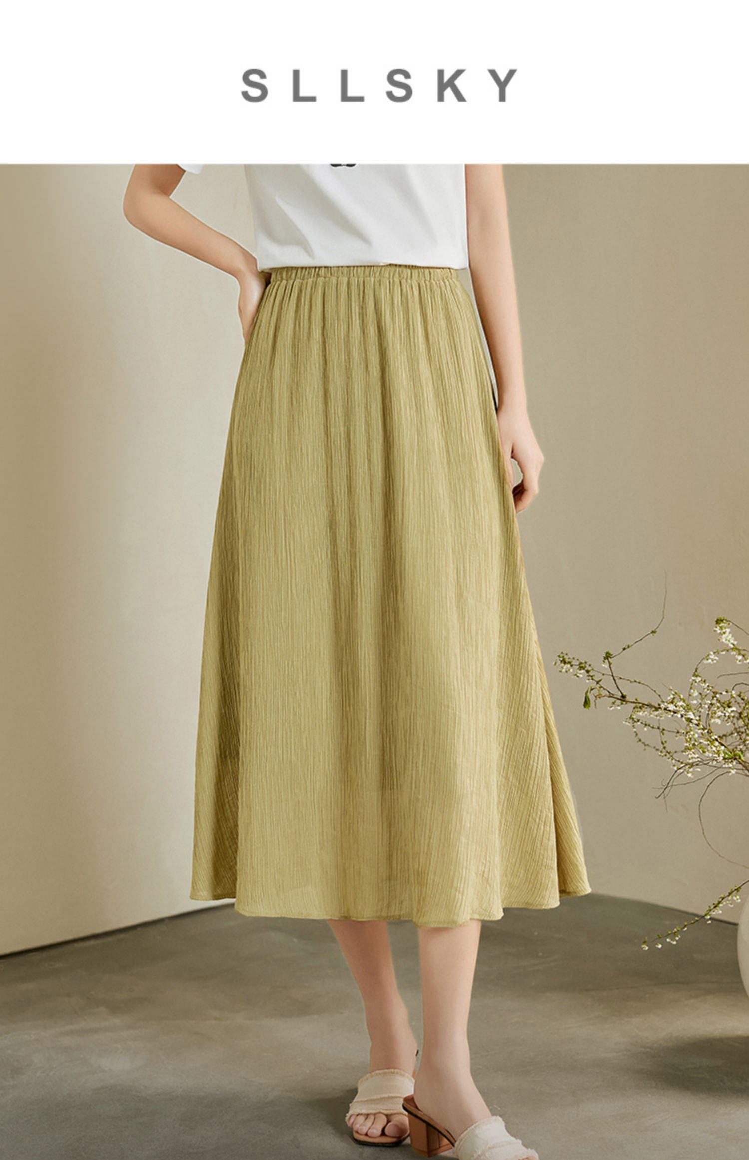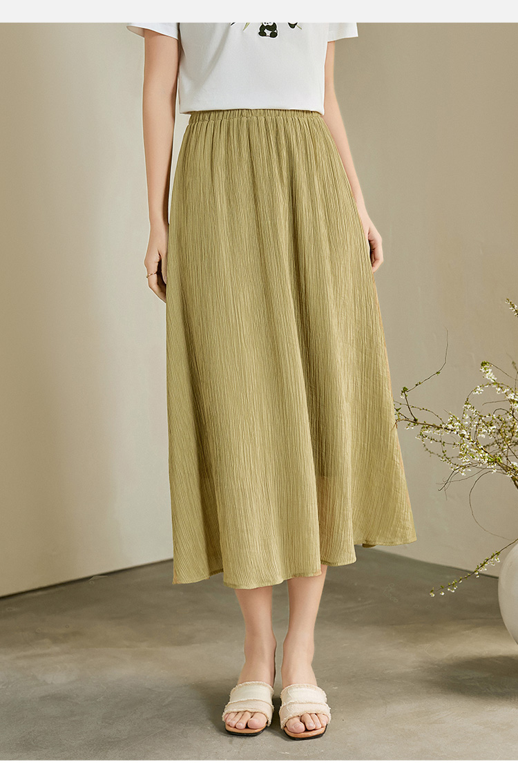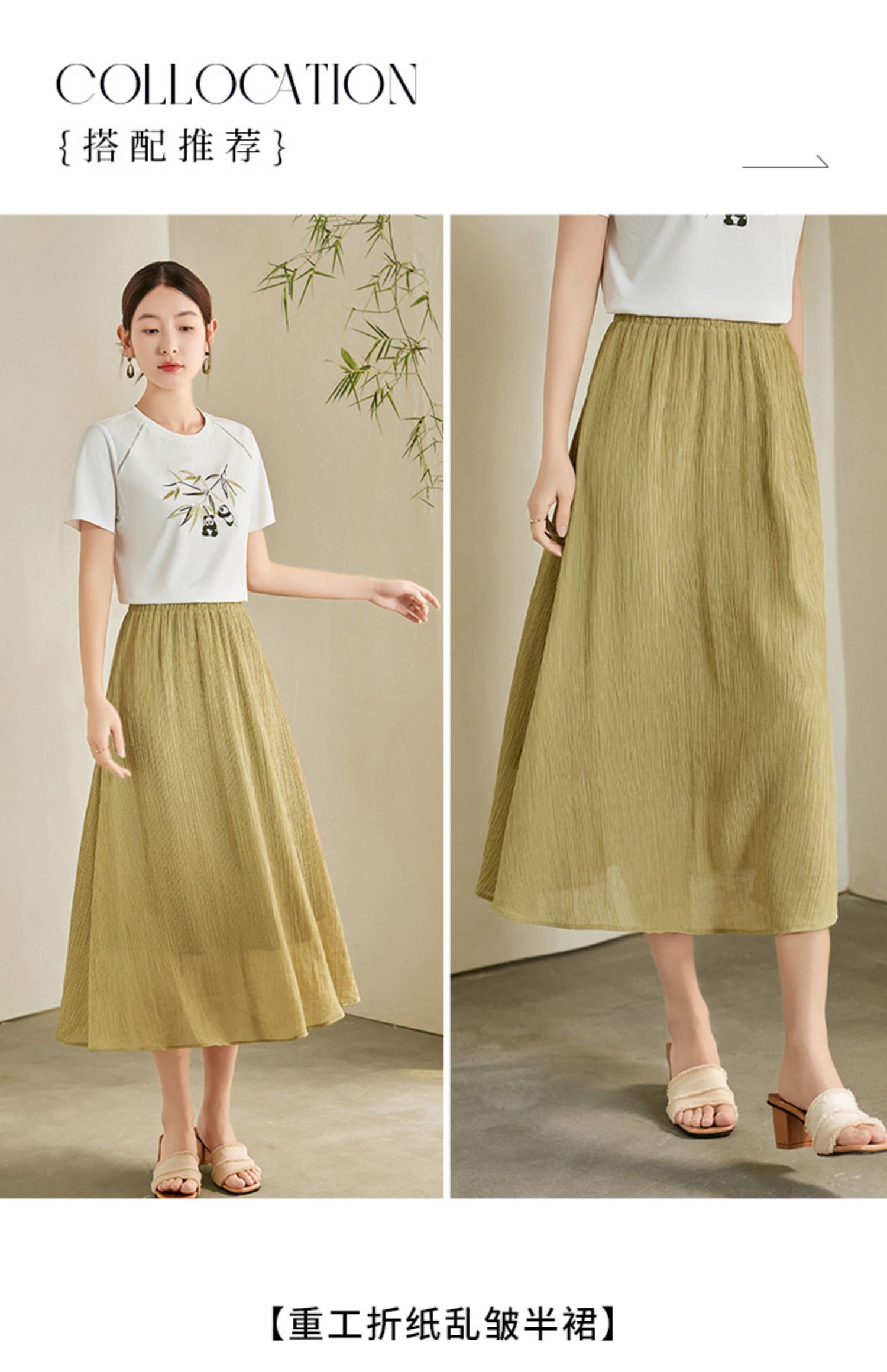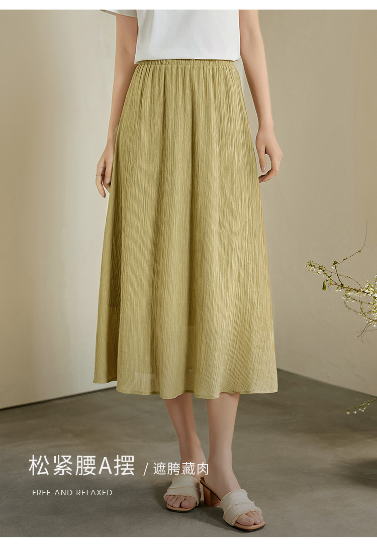 【专属特价】熙世界肌理感褶皱半身裙女夏季2025新款高腰垂感显瘦长款过膝裙子