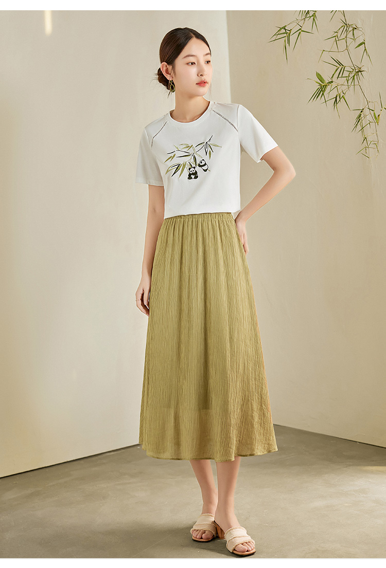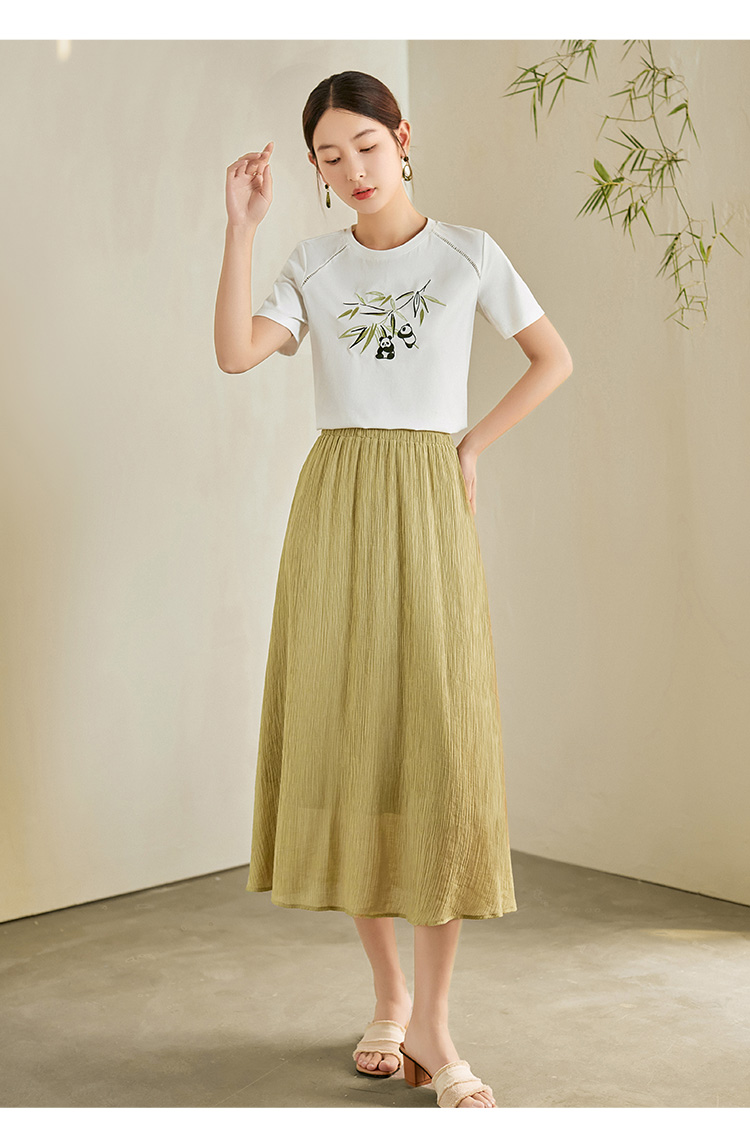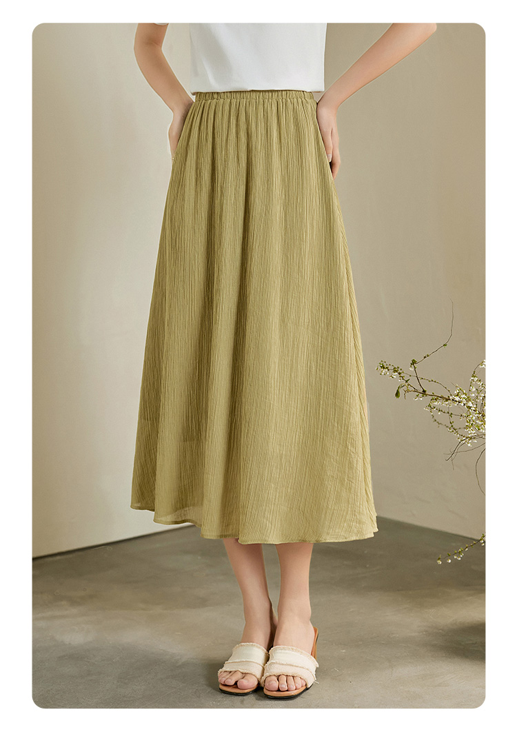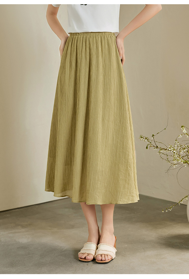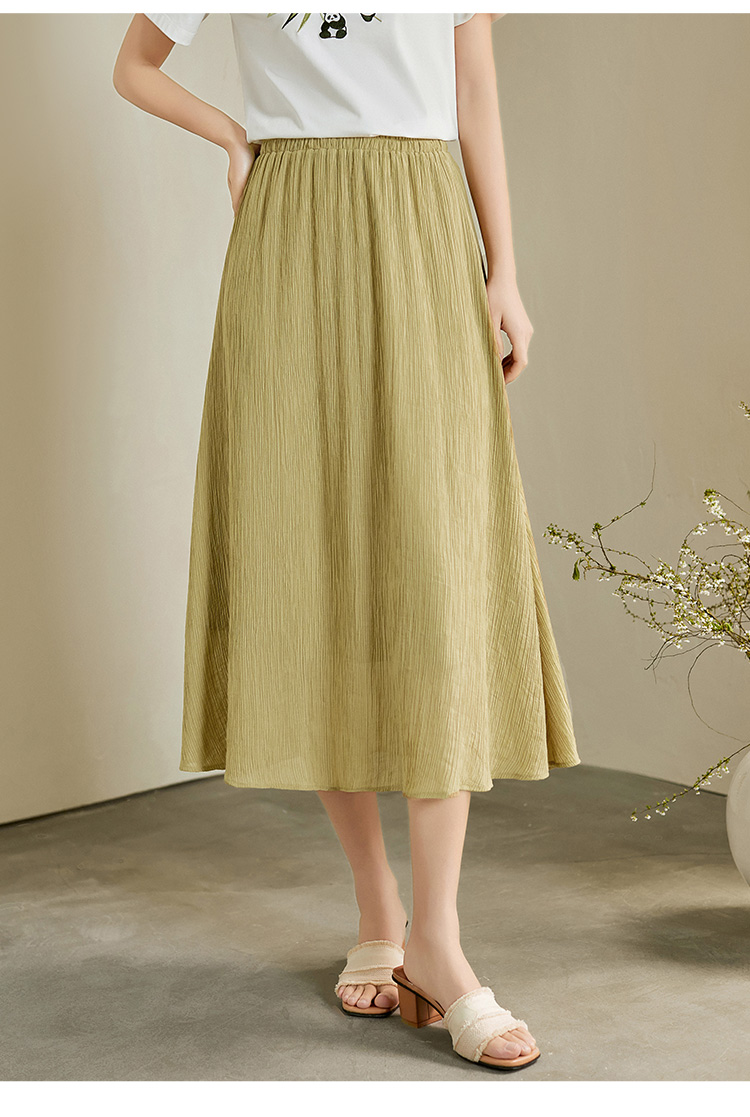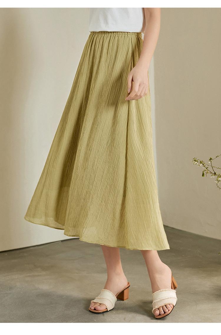 【专属特价】熙世界肌理感褶皱半身裙女夏季2025新款高腰垂感显瘦长款过膝裙子
