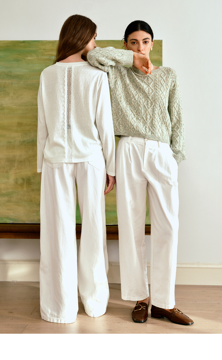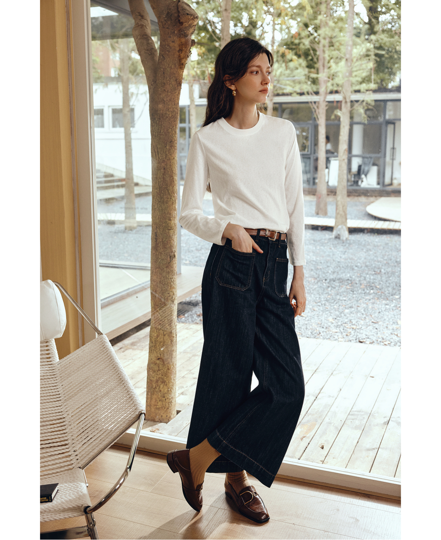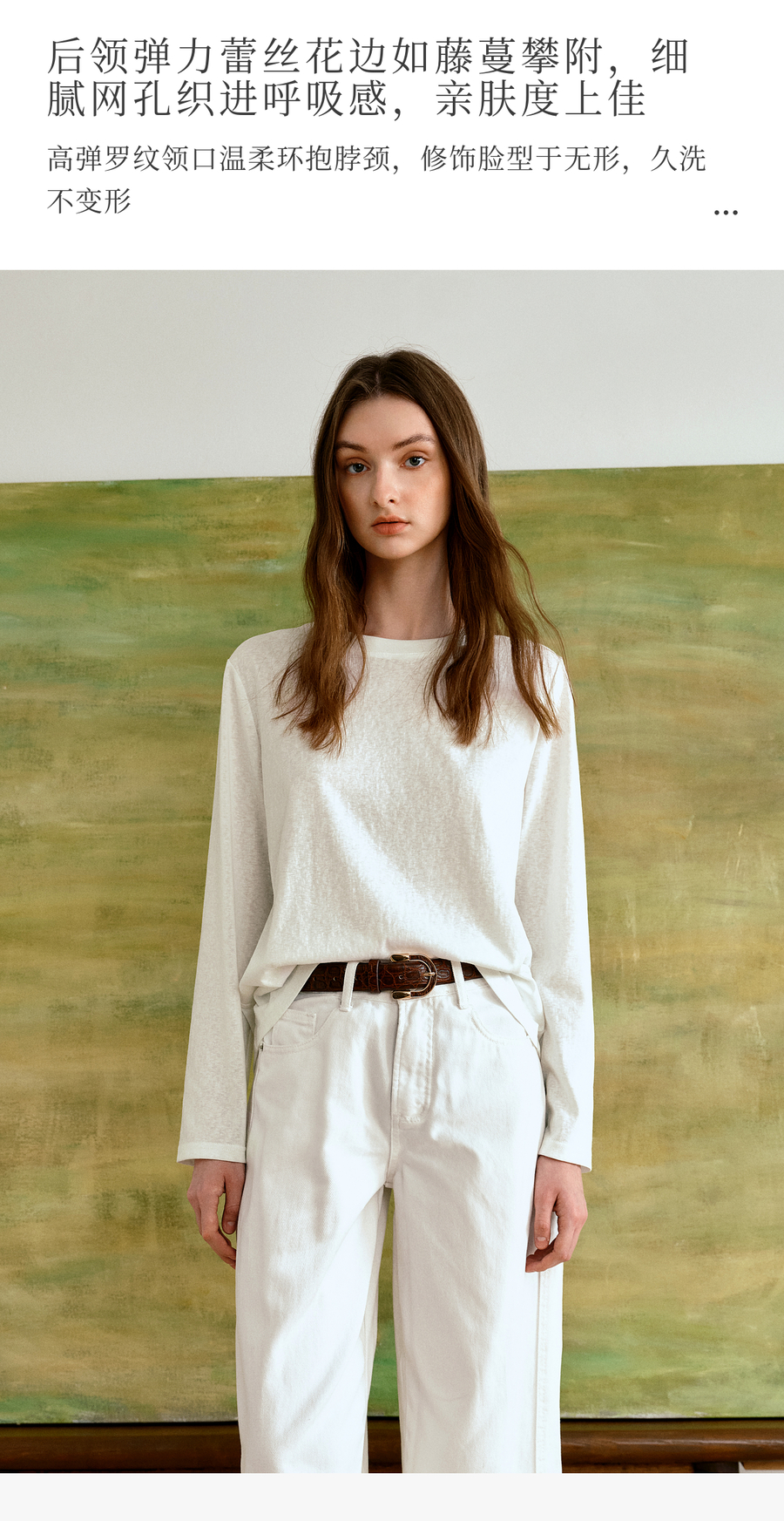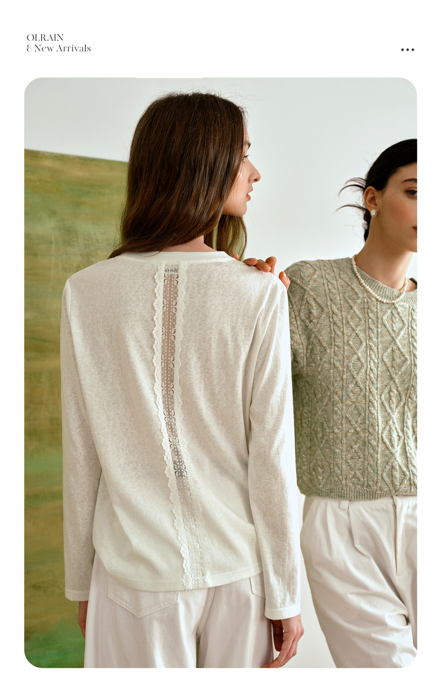 OLrain欧芮儿通勤拼接花边圆领长袖百搭T恤2025秋季新款法式上衣