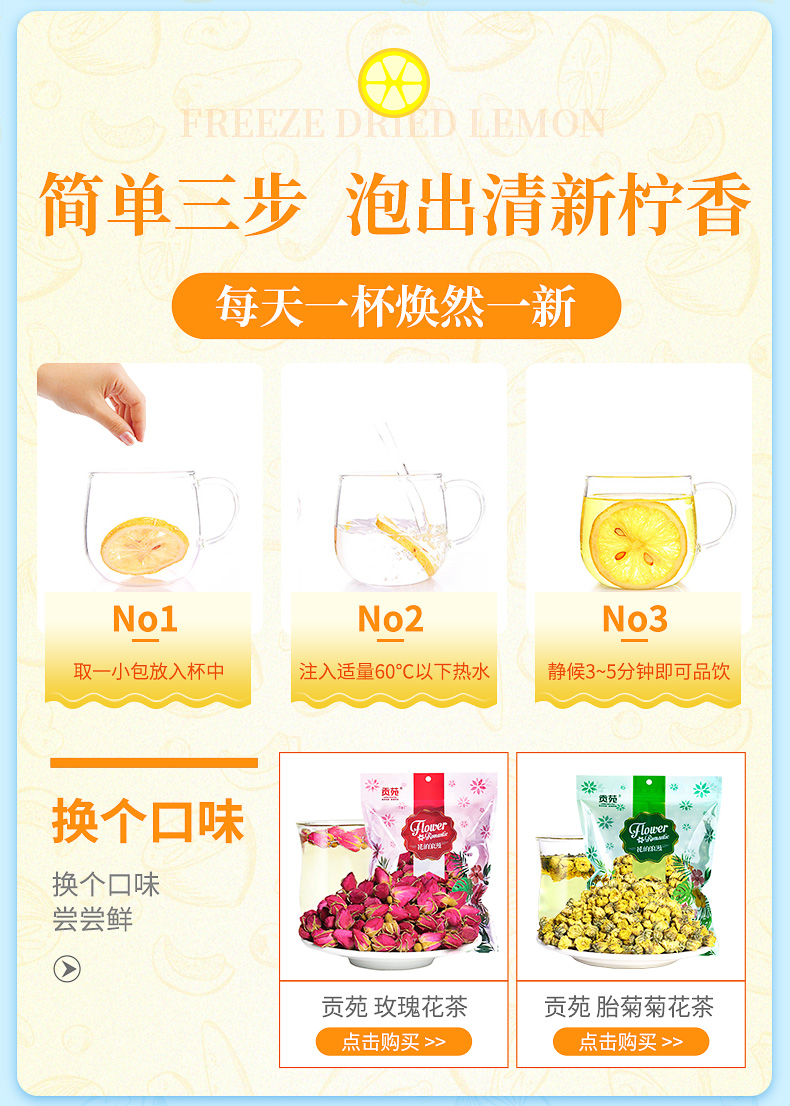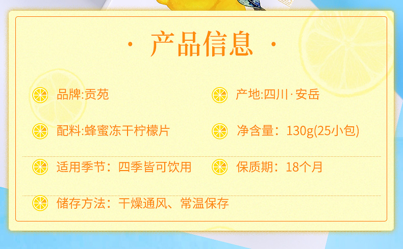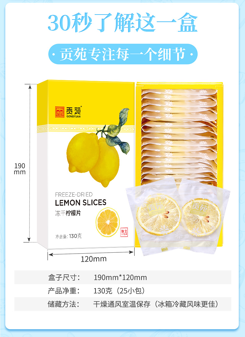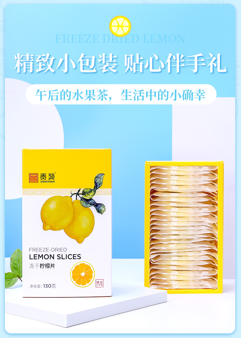 贡苑 茶叶花草茶 冻干柠檬片130g(25包)大片独立小包装 VC蜂蜜柠檬干片花茶 泡水泡茶喝的水果茶包