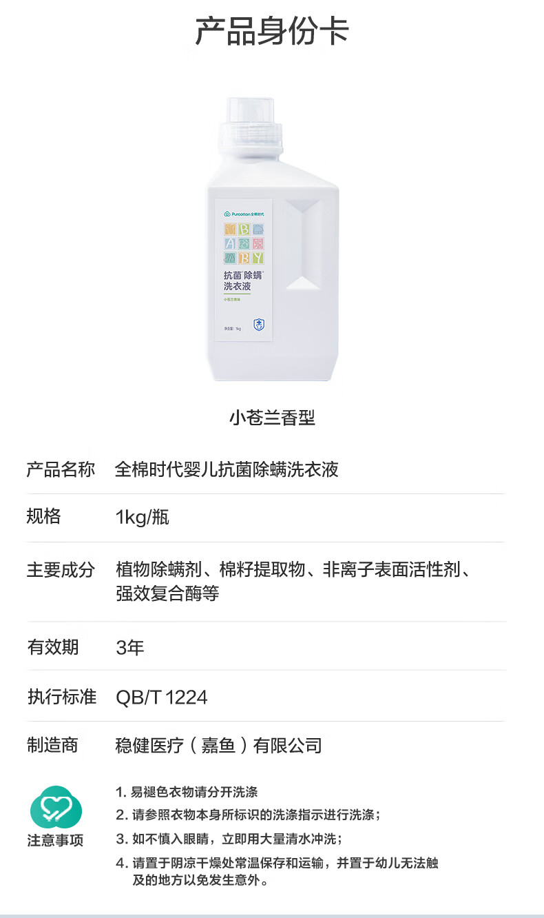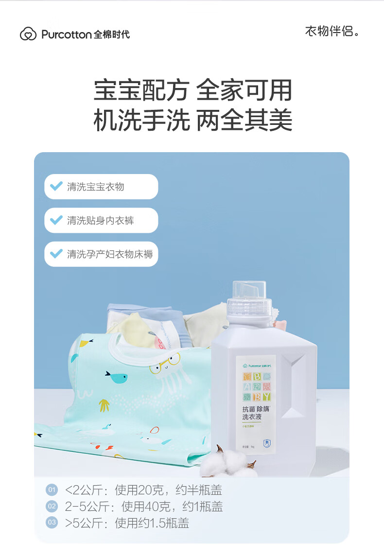 【ZY25】全棉时代洗衣液抗菌除螨(小苍兰)1kg