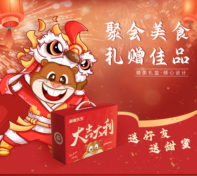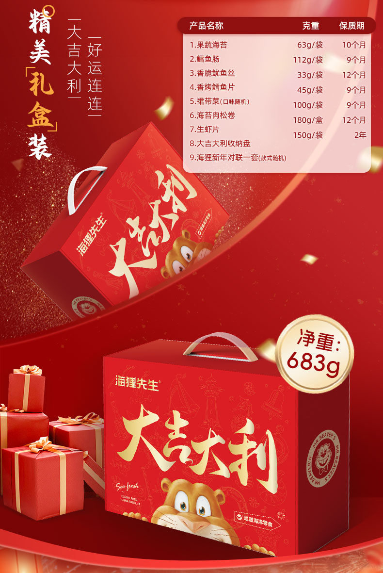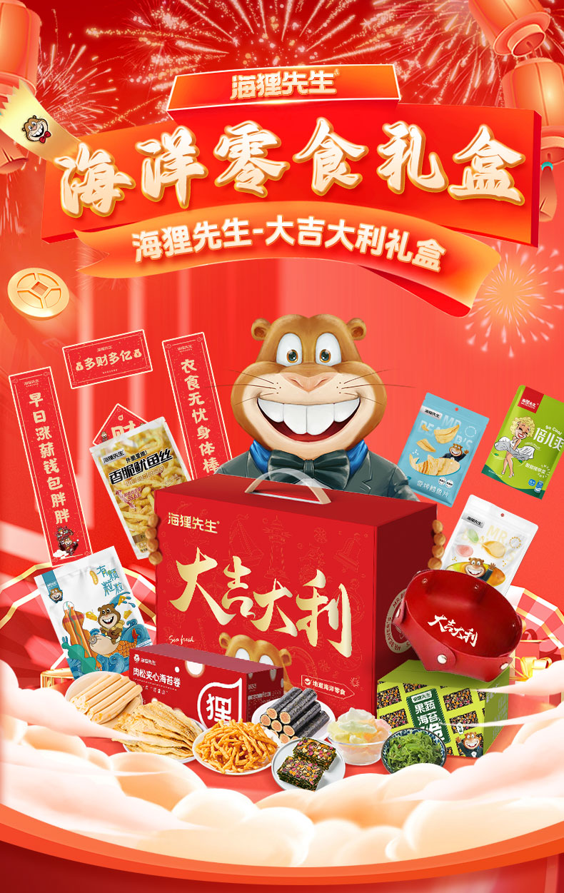 海狸先生新春年货海味休闲零食礼盒(送大吉大利收纳盘,海狸对联)JL-Q10