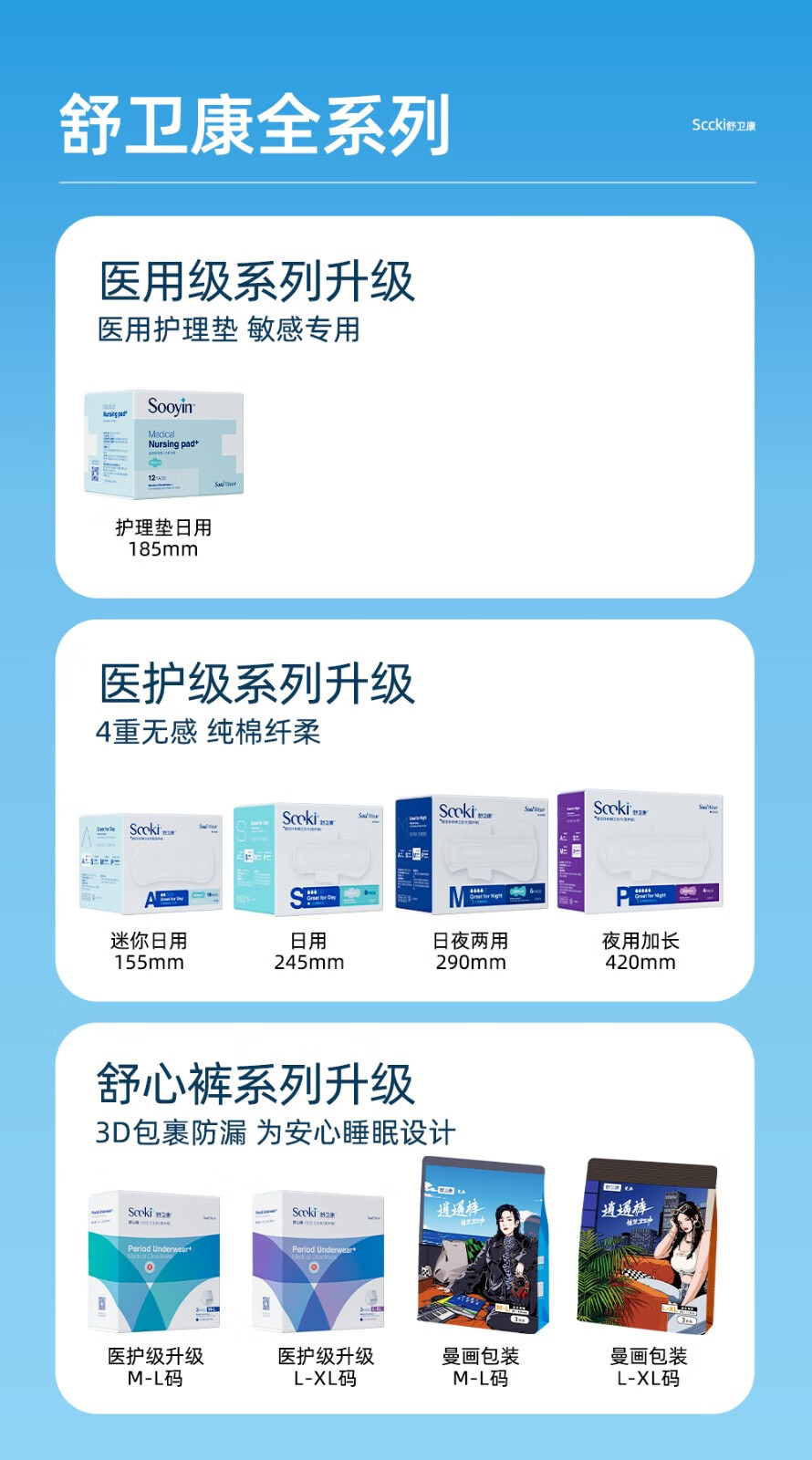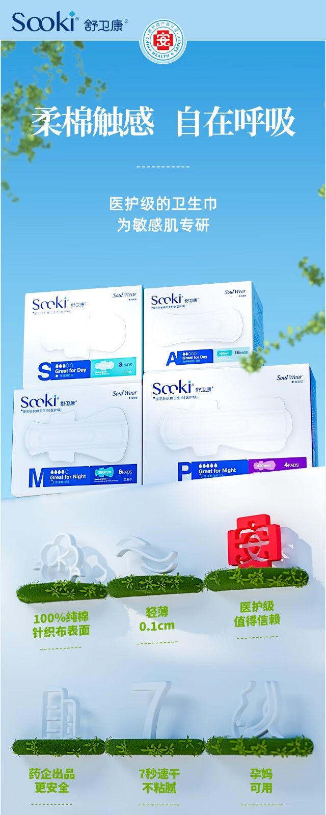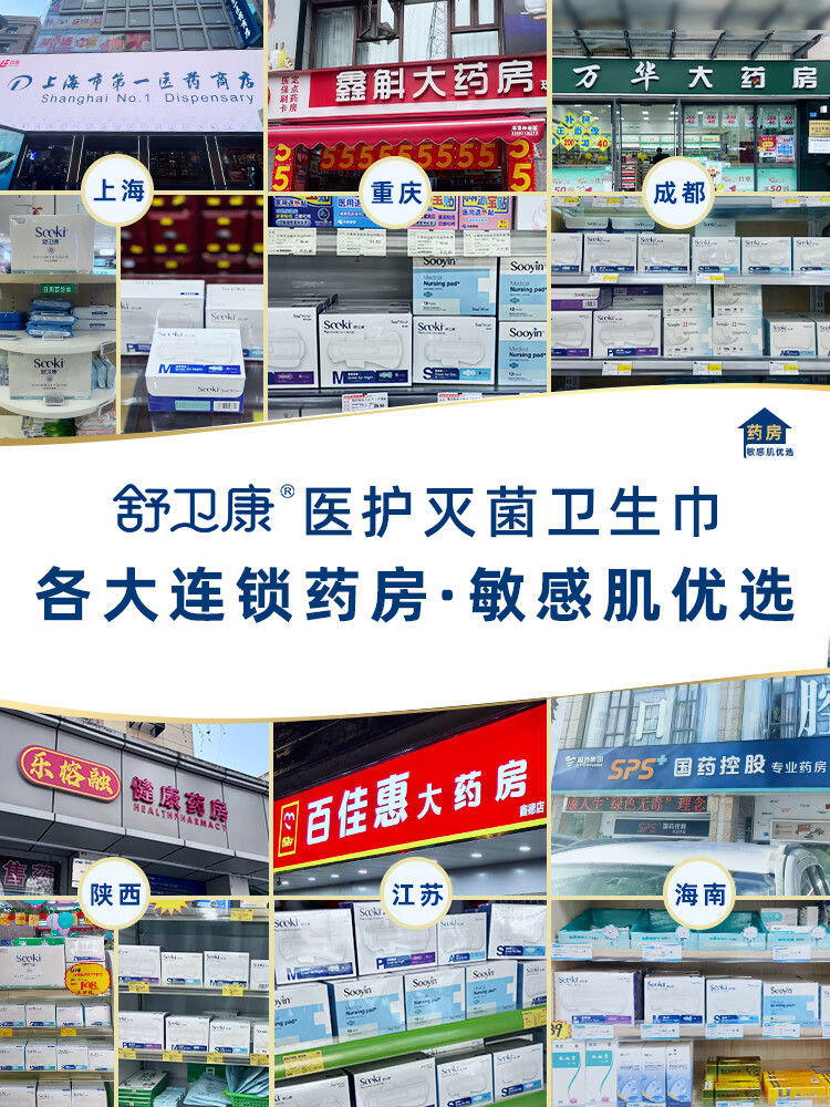 舒卫康卫生巾日用夜用组合医护级灭菌卫生巾整箱超薄透气纯棉敏感肌用女 日用五盒夜用三盒(可换组合)