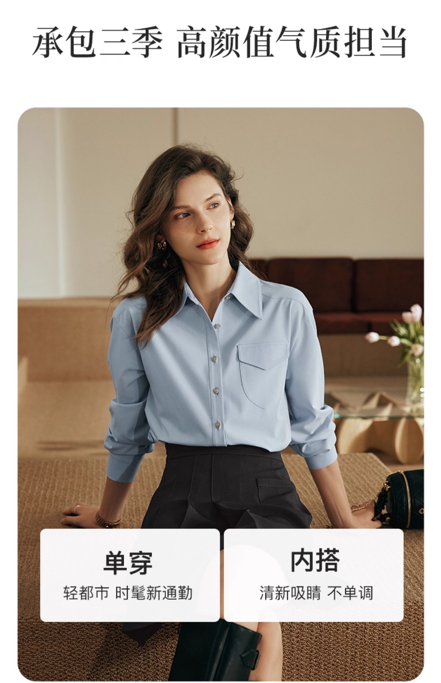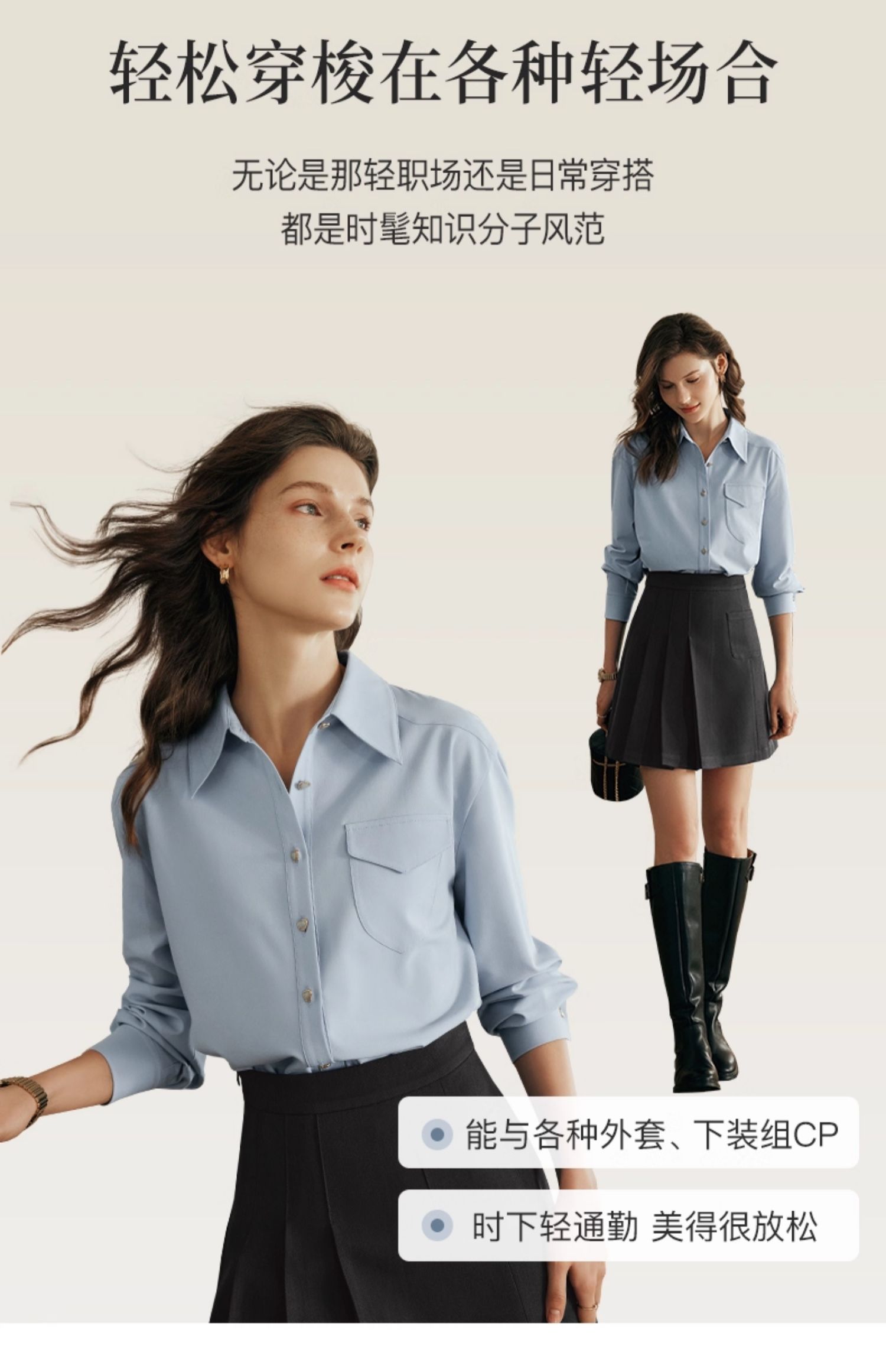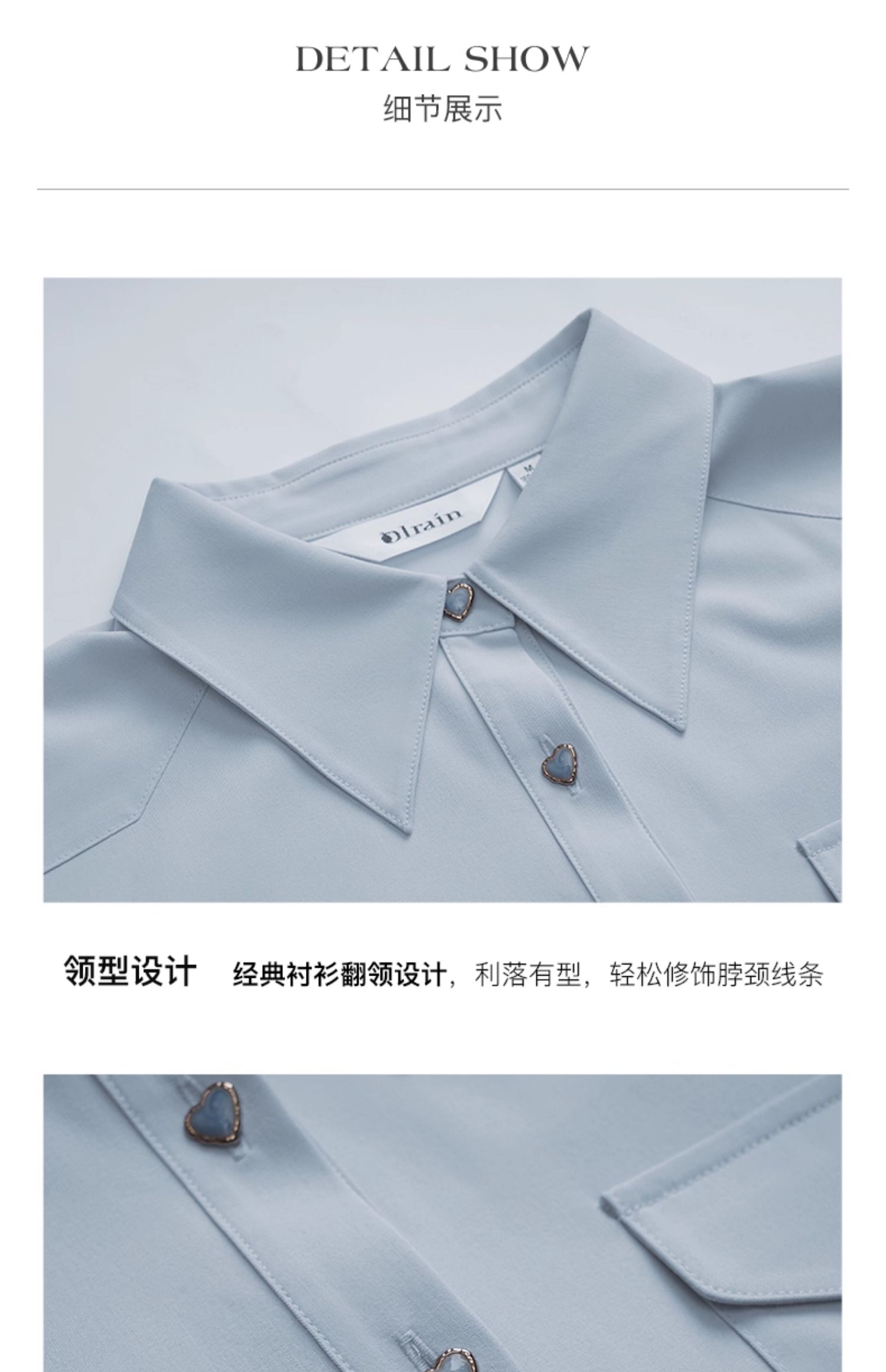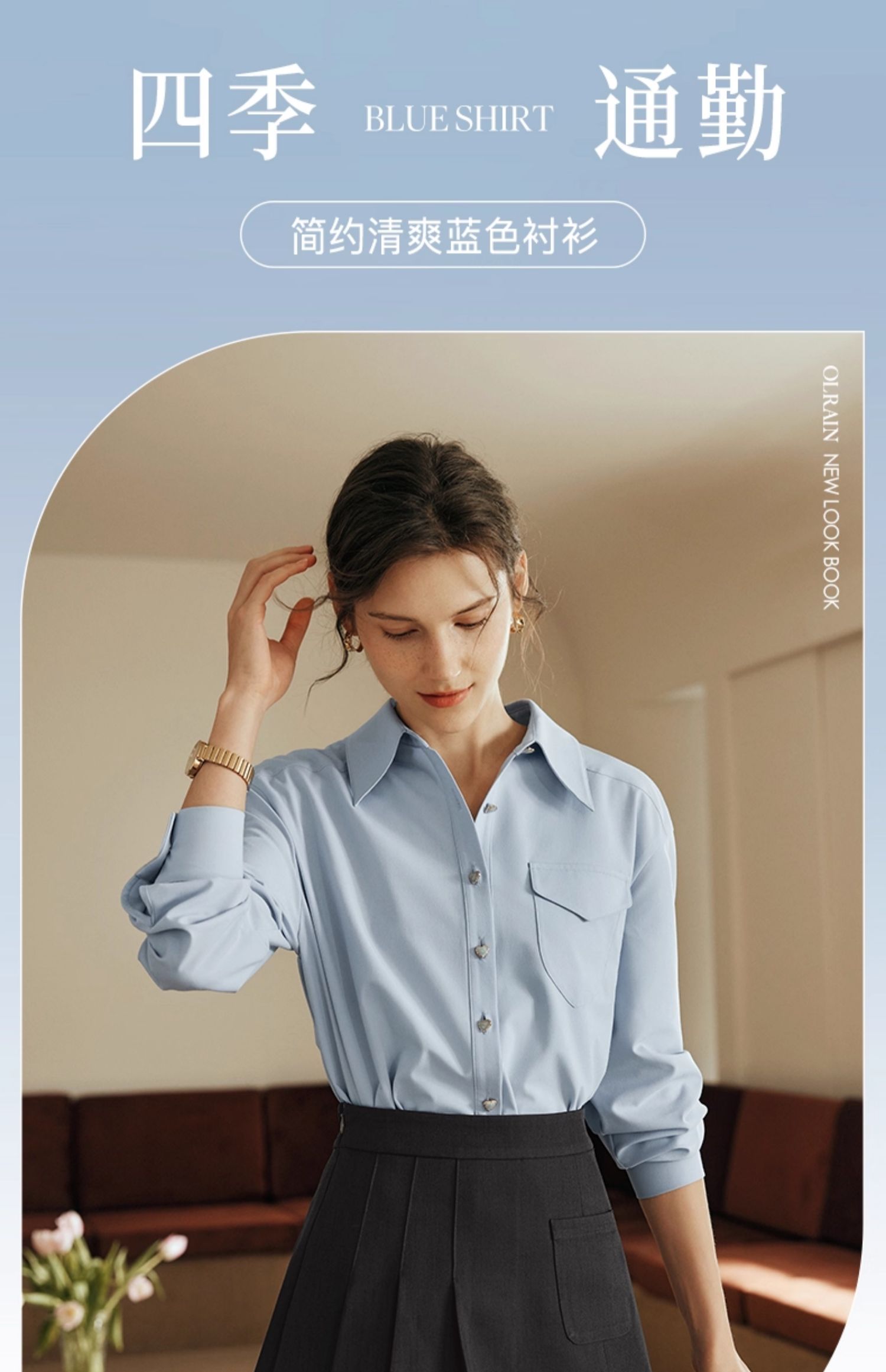 OLrain欧芮儿法式蓝色衬衫女秋季2025年新款宽松减龄通勤长袖衬衣