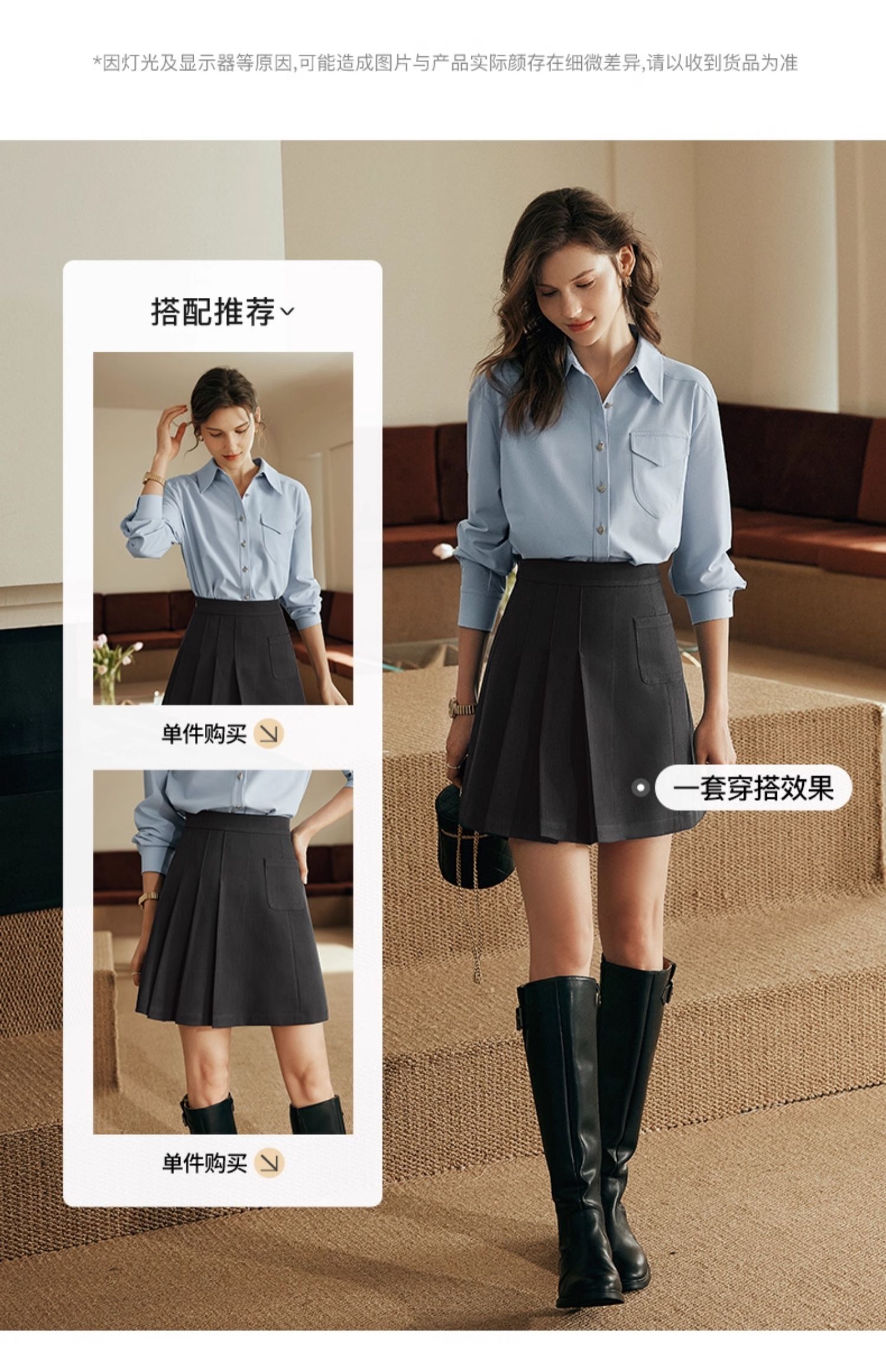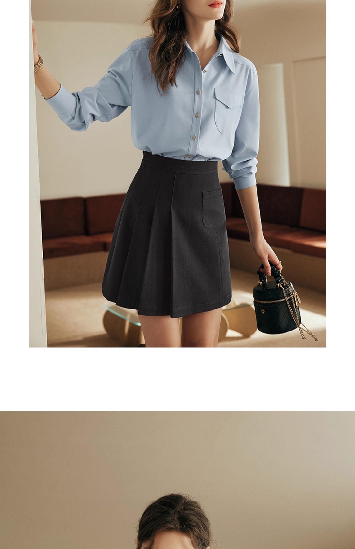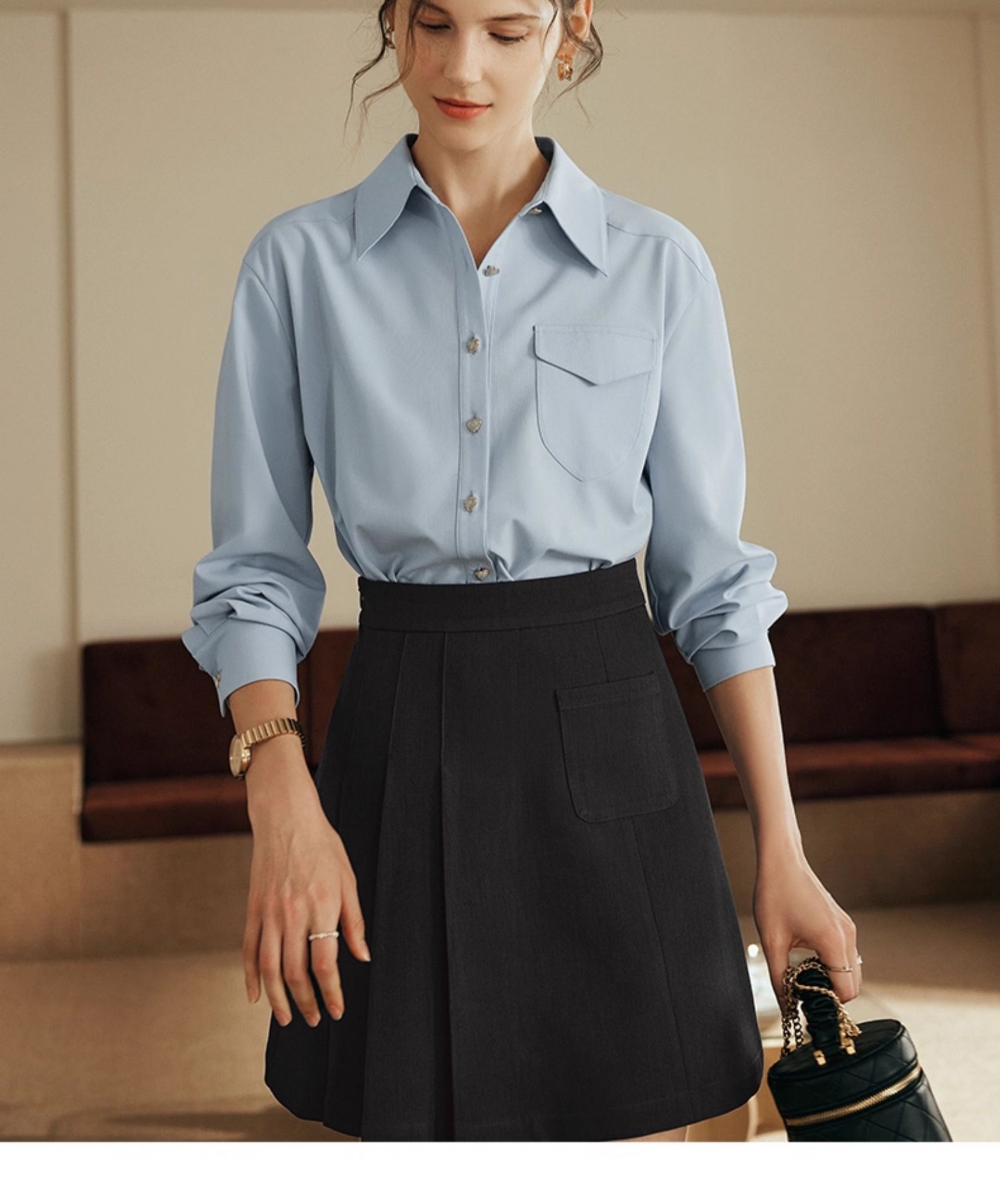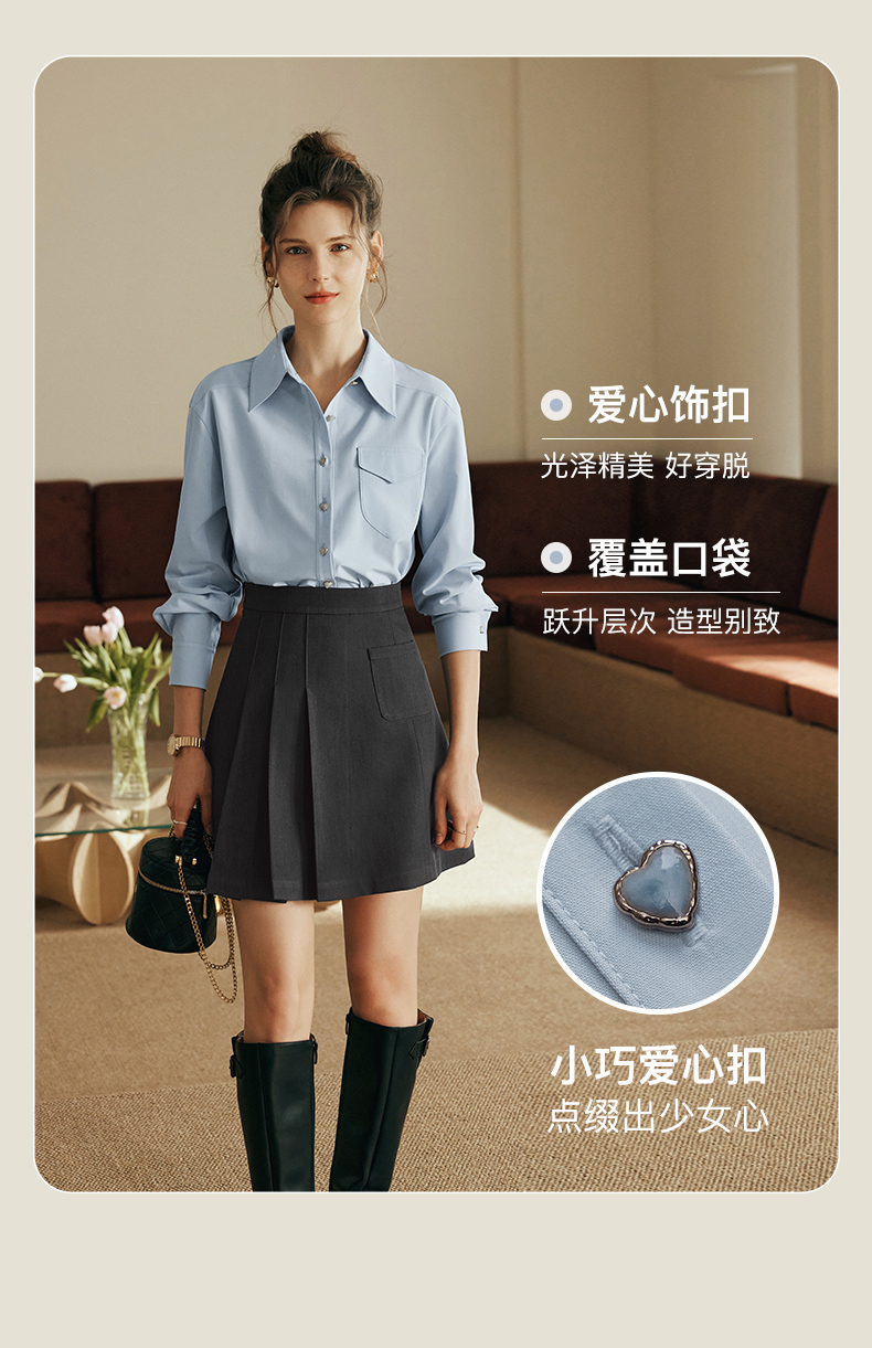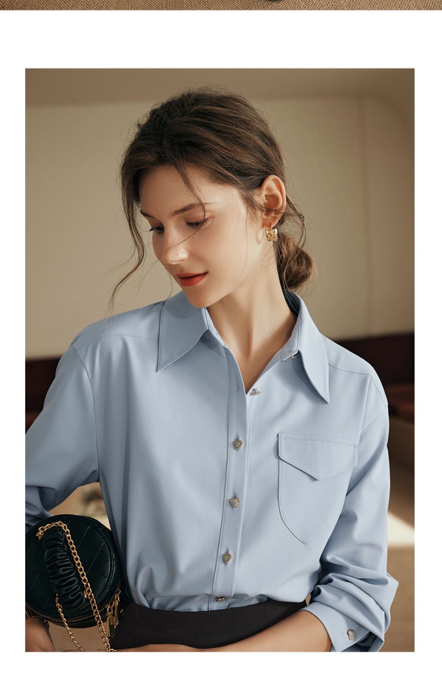 OLrain欧芮儿法式蓝色衬衫女秋季2025年新款宽松减龄通勤长袖衬衣