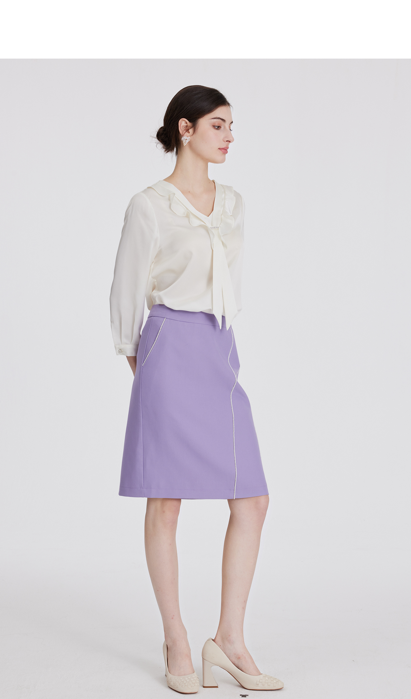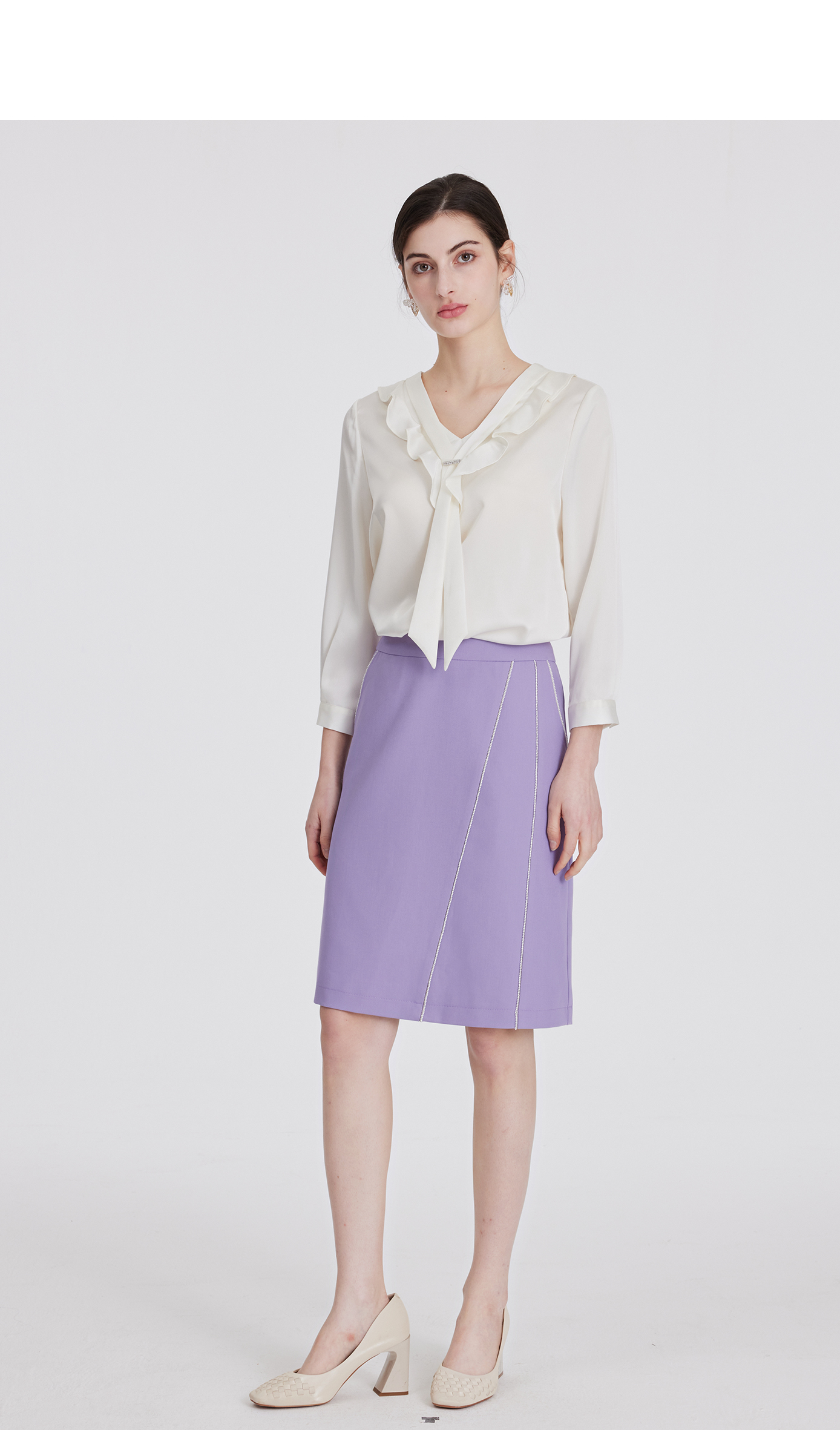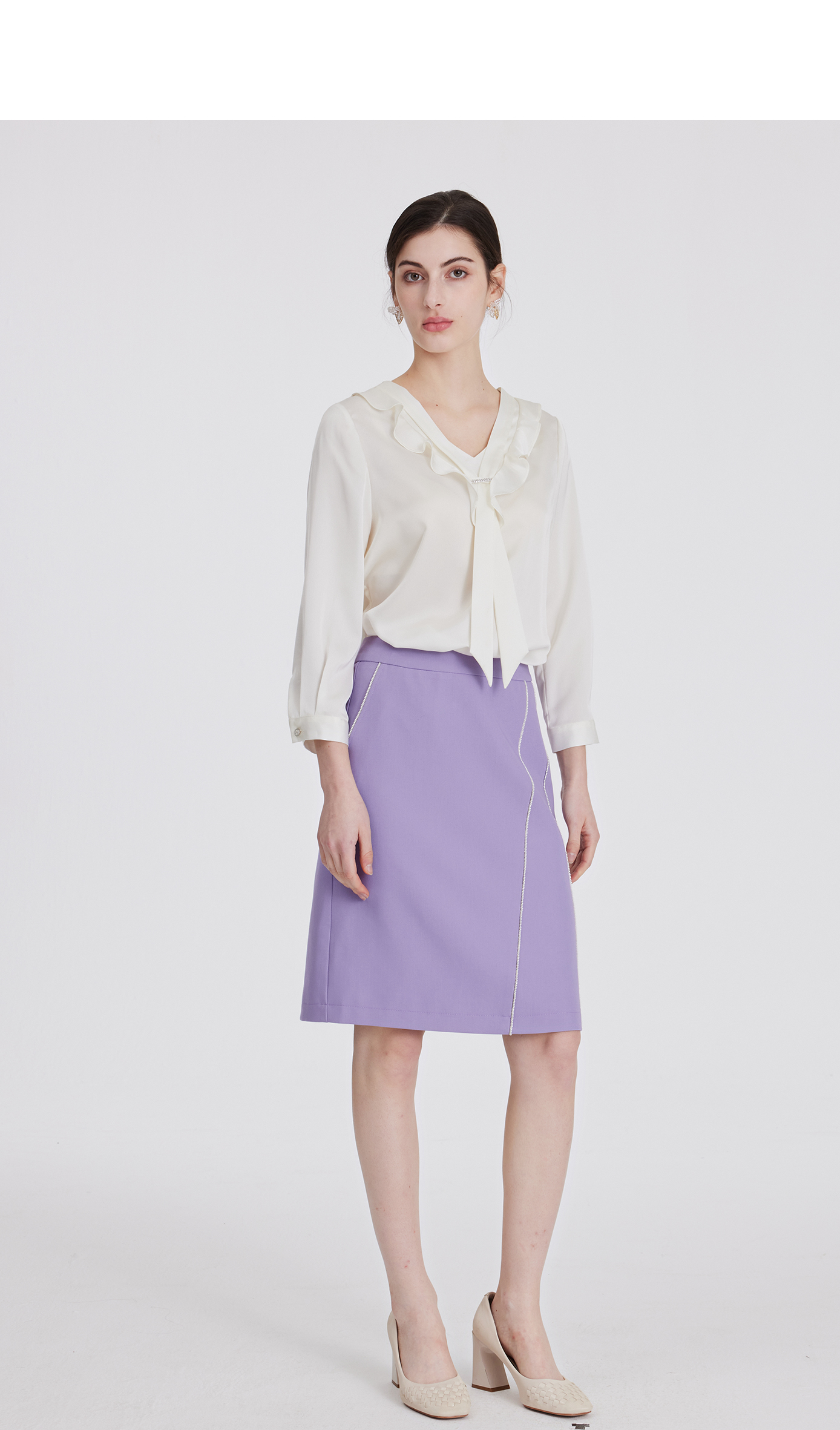 司歌v领衬衫雪纺七分袖上衣ET891251Y