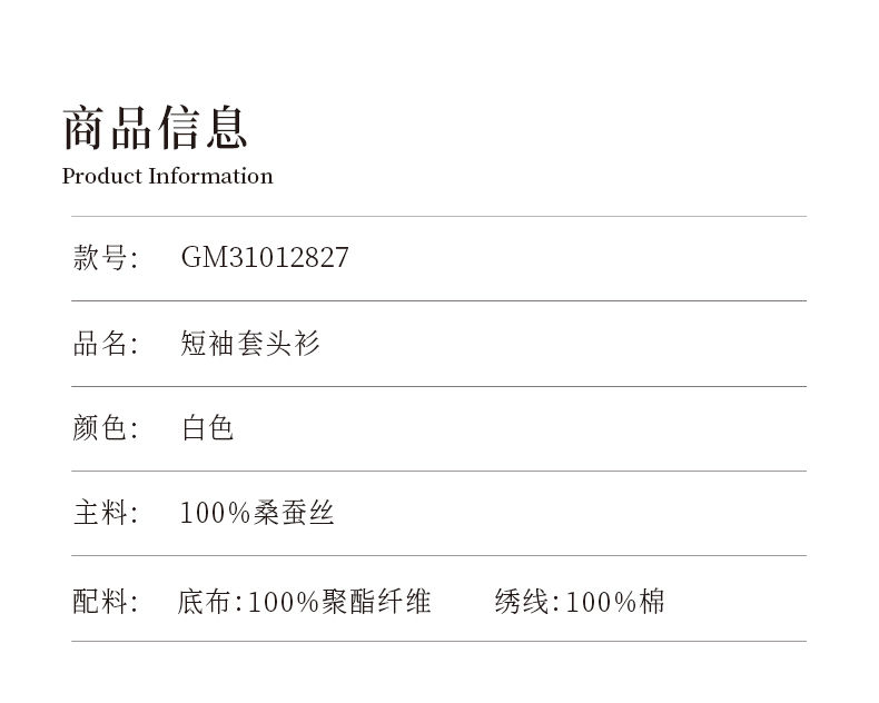 oldcolour欧珂夏季简约休闲宽松白色短袖套头衫女GM31012827