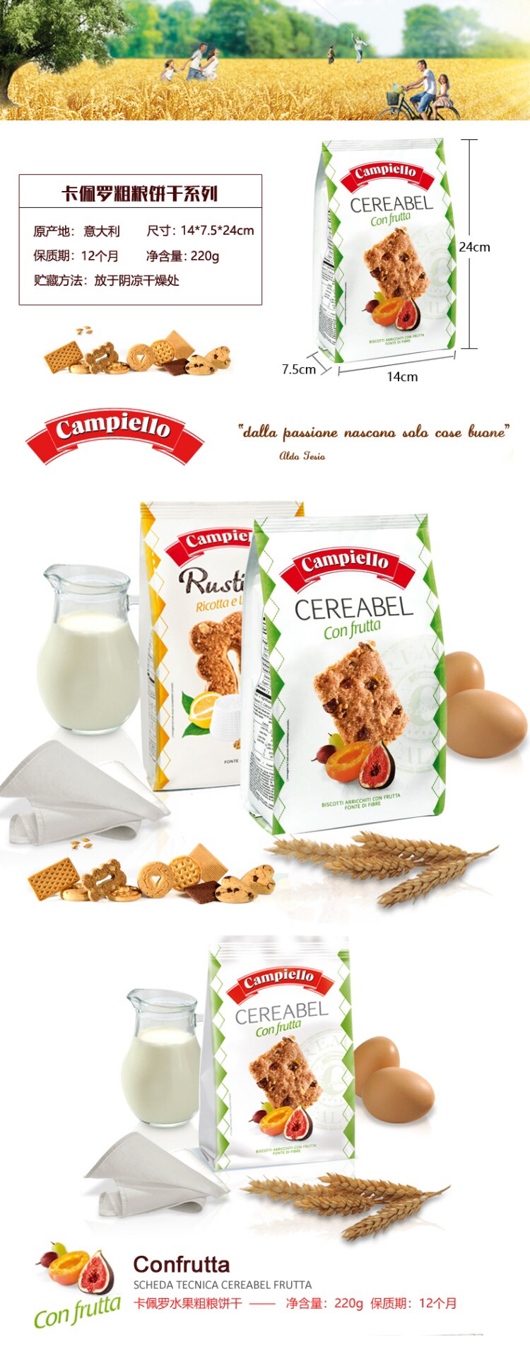 意大利进口-卡佩罗水果燕麦黄油柠檬味粗粮饼干零食-会员6折