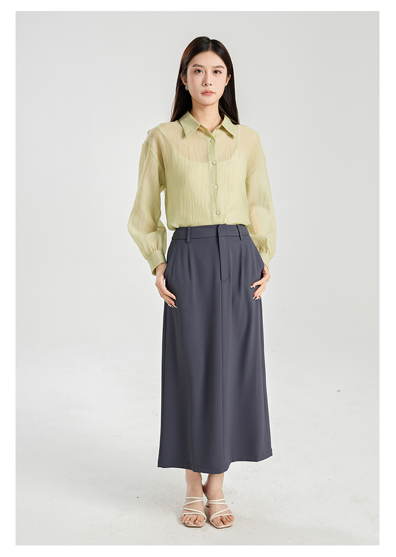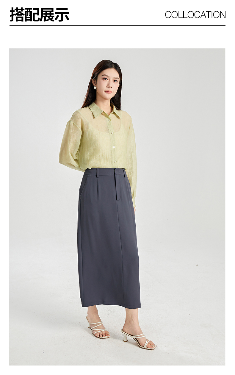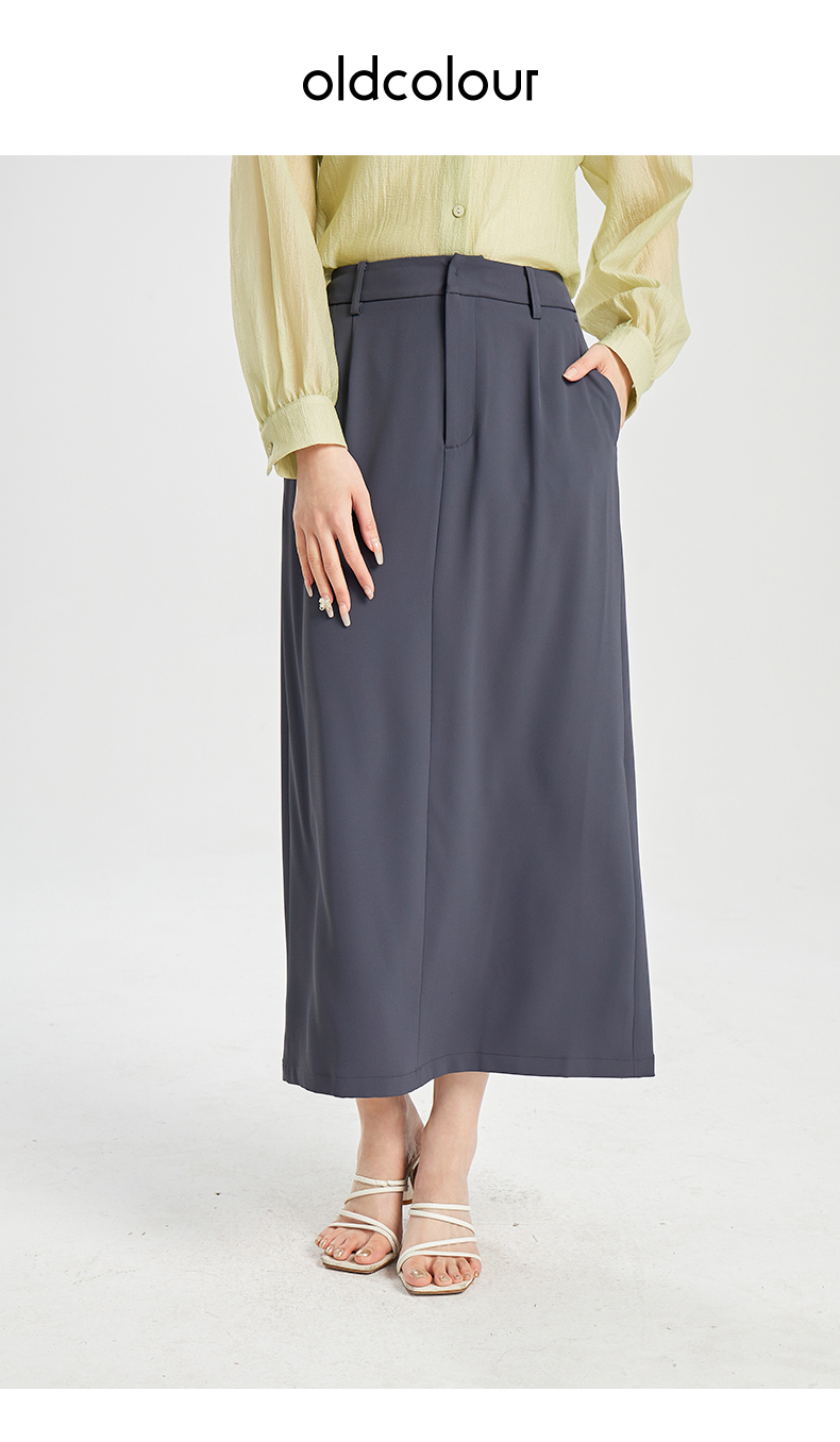oldcolour夏季新款气质通勤高腰显瘦垂感西装半身长裙女Q240608A1