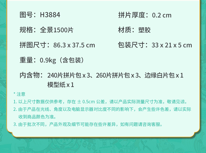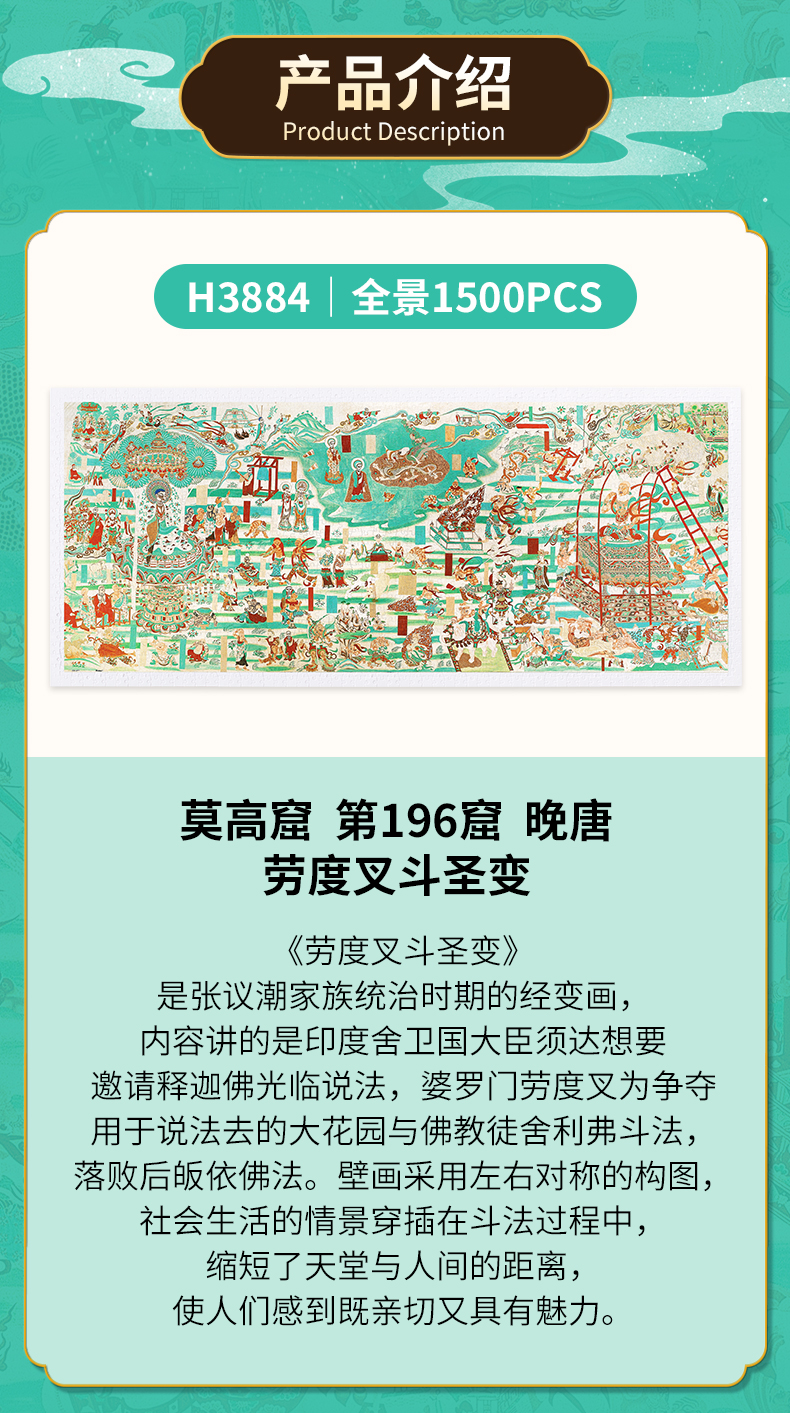 1500片 平面塑料拼图 H3884 全景长版拼图-敦煌益智拼图-劳度叉斗圣变