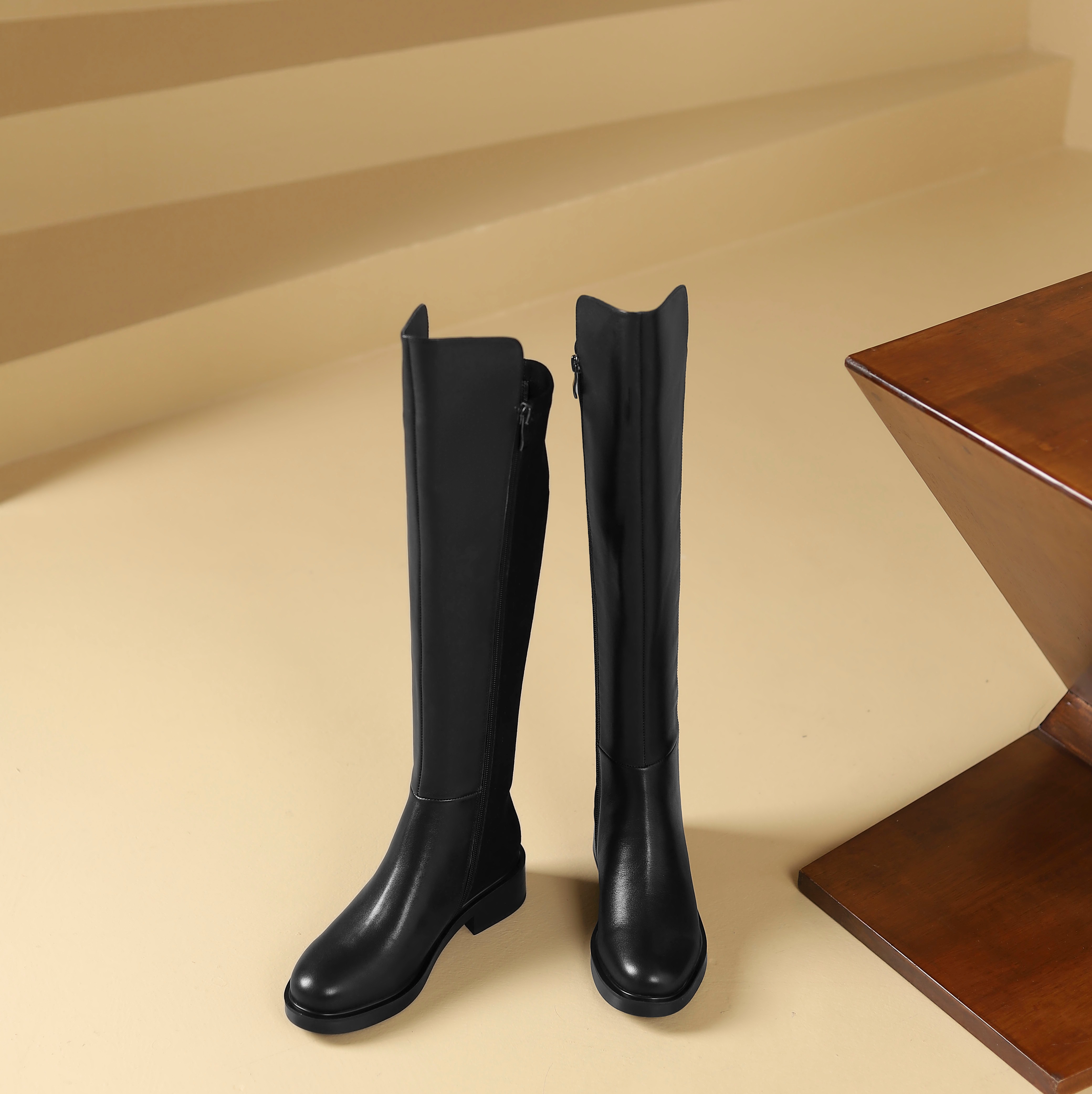 westory2024年秋冬新款优雅风粗平跟百搭骑士高靴S24DQ84851