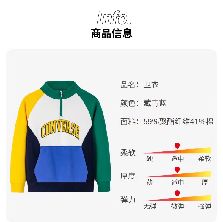 Converse童装秋冬新款男女童休闲半拉链套头加绒卫衣CV2242172