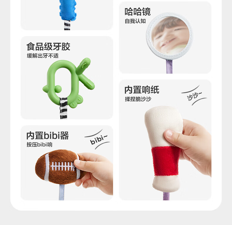 babycare手摇铃可咬牙胶新生婴幼儿宝宝玩具0-3-6个月1岁抓握训练