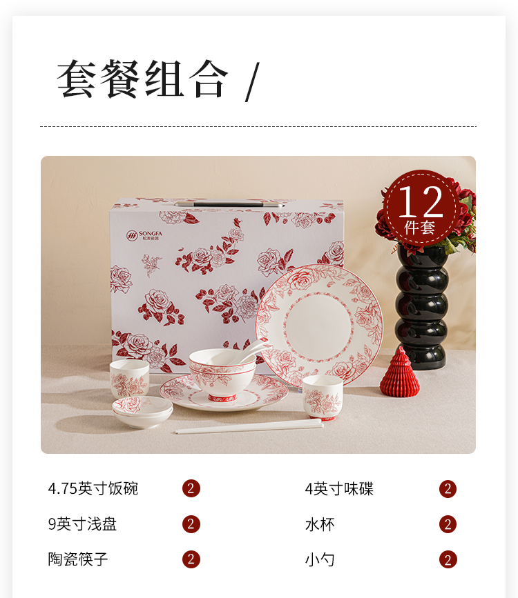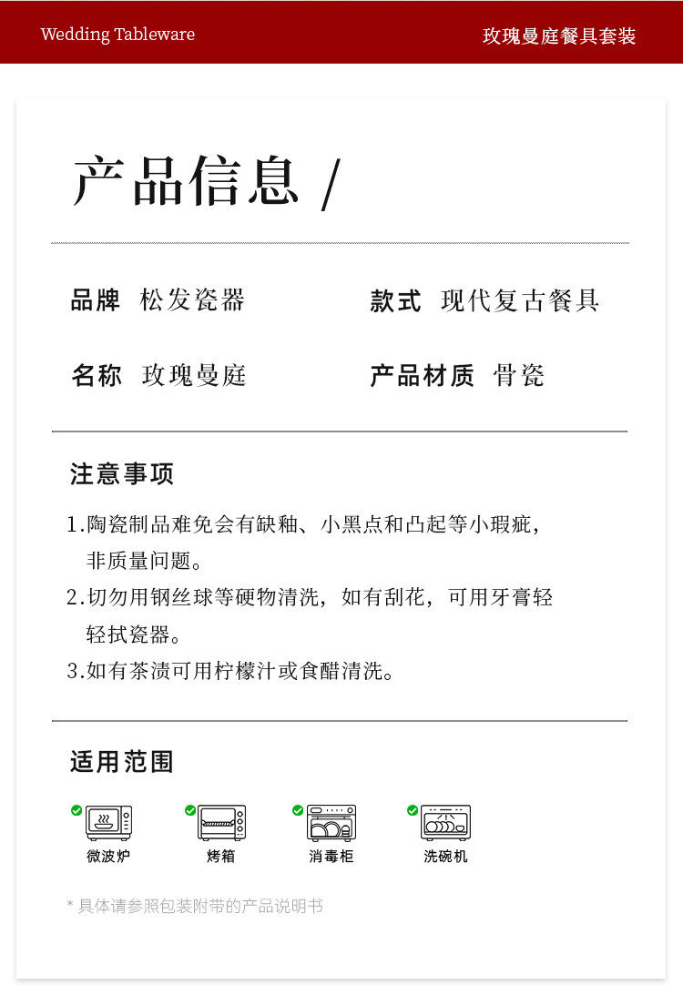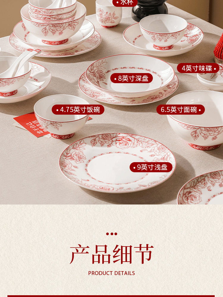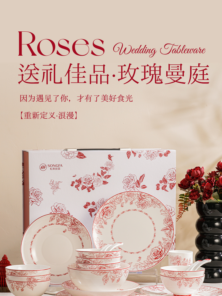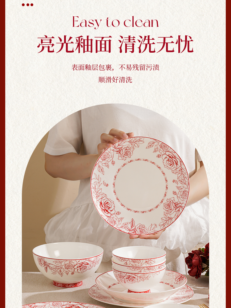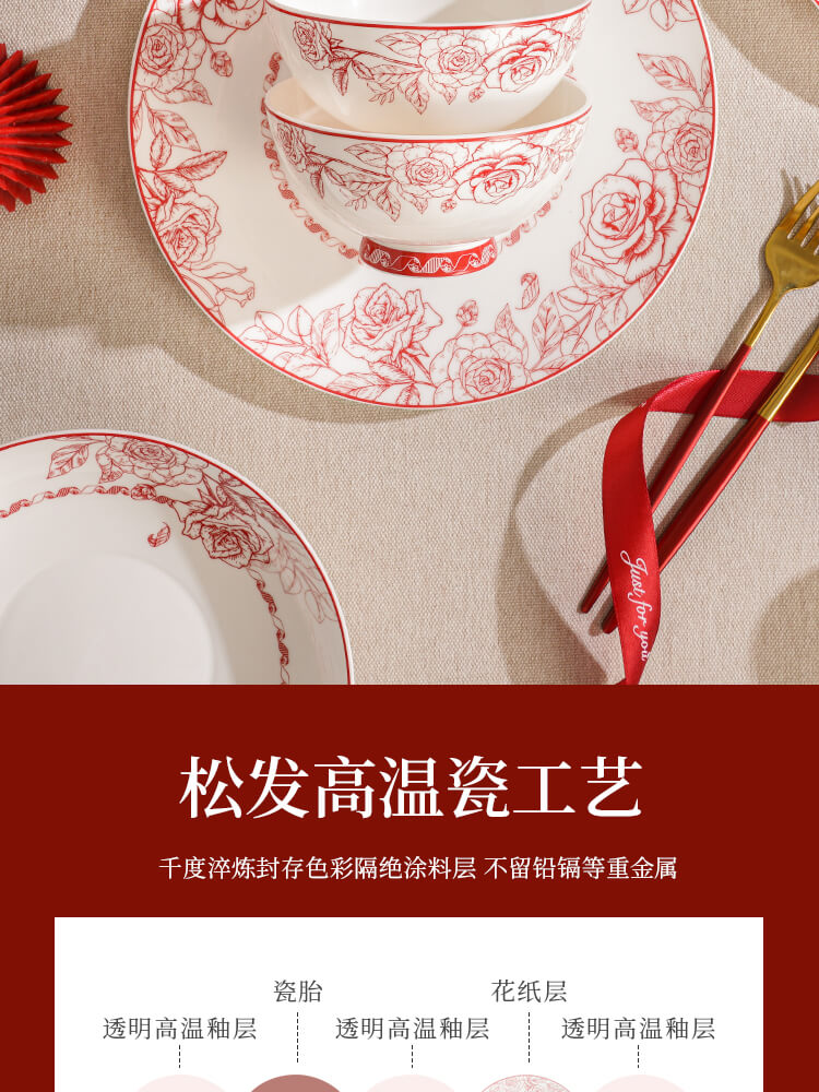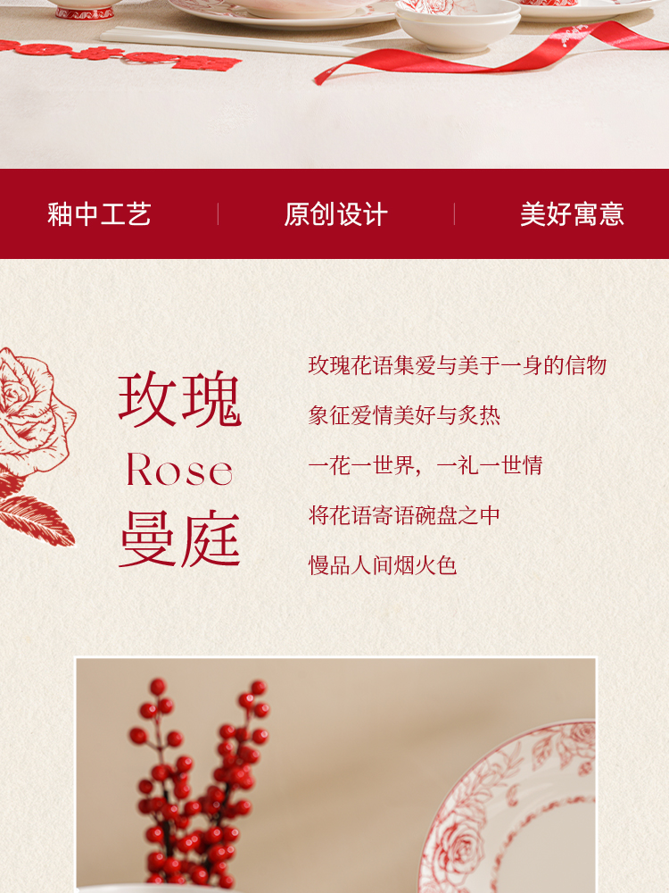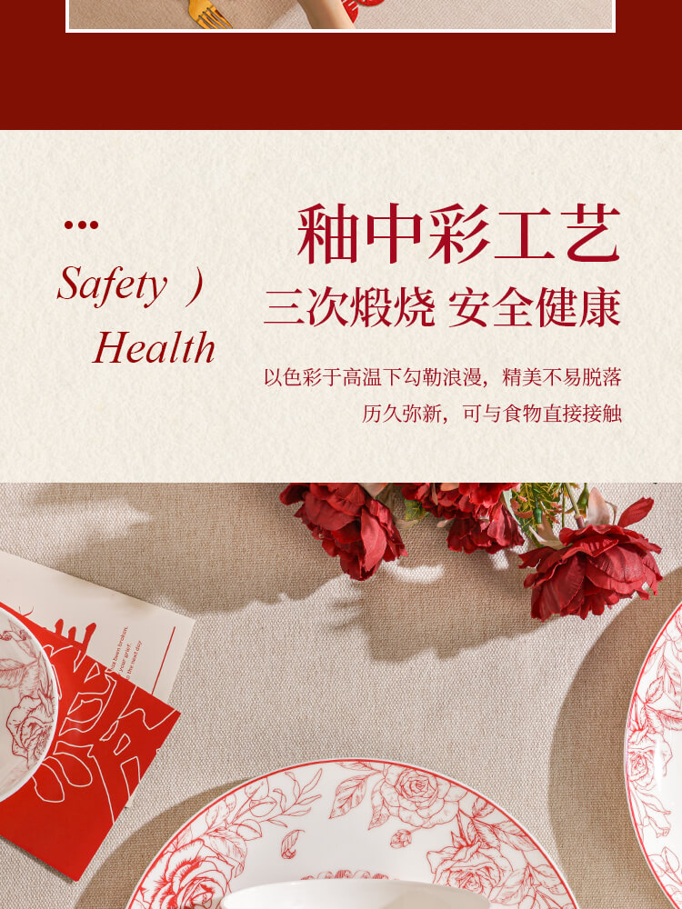 玫瑰曼庭骨瓷釉中餐具