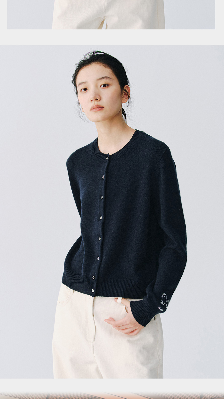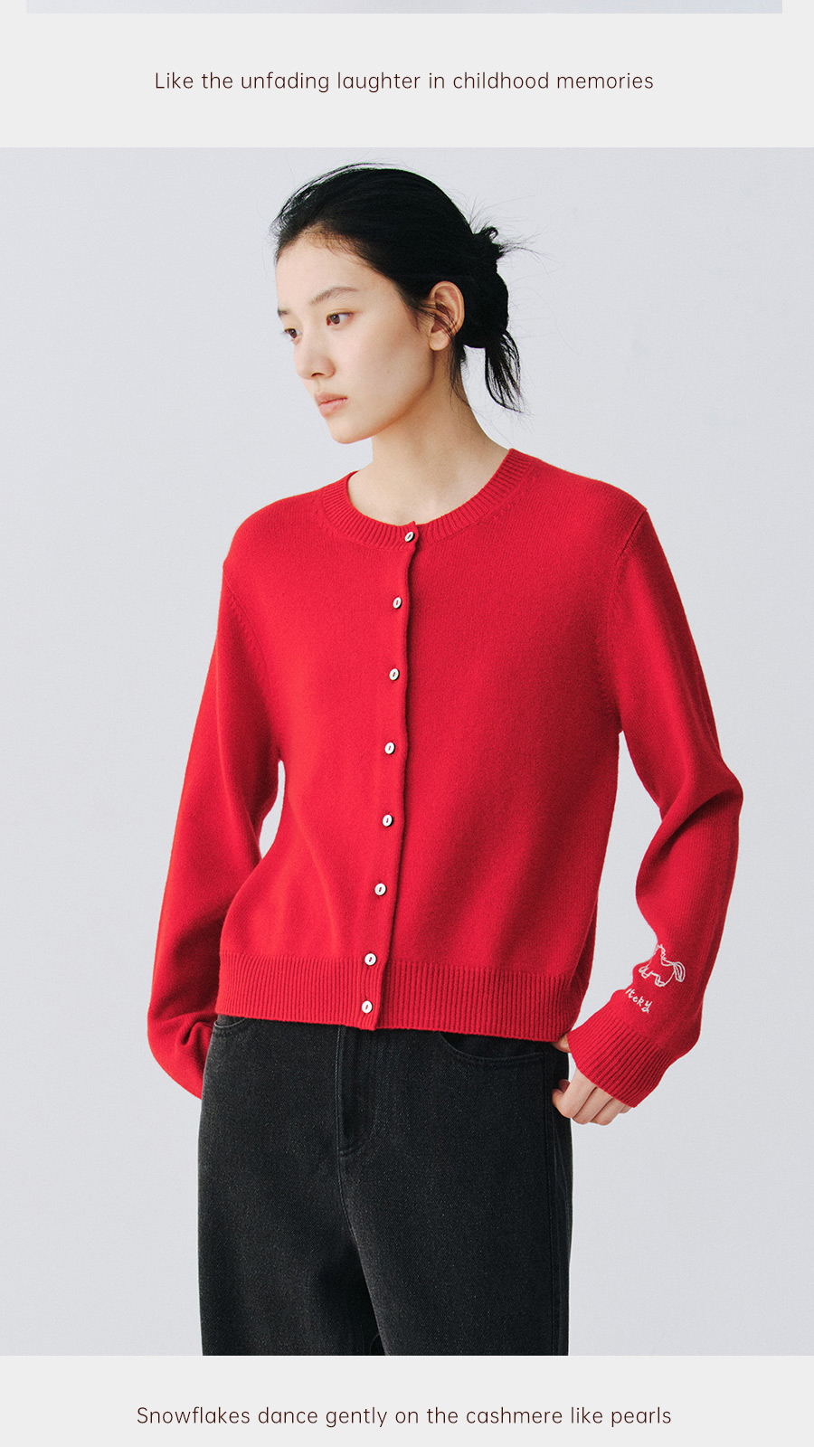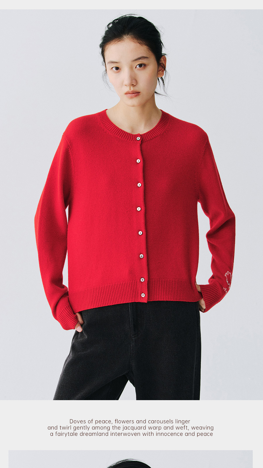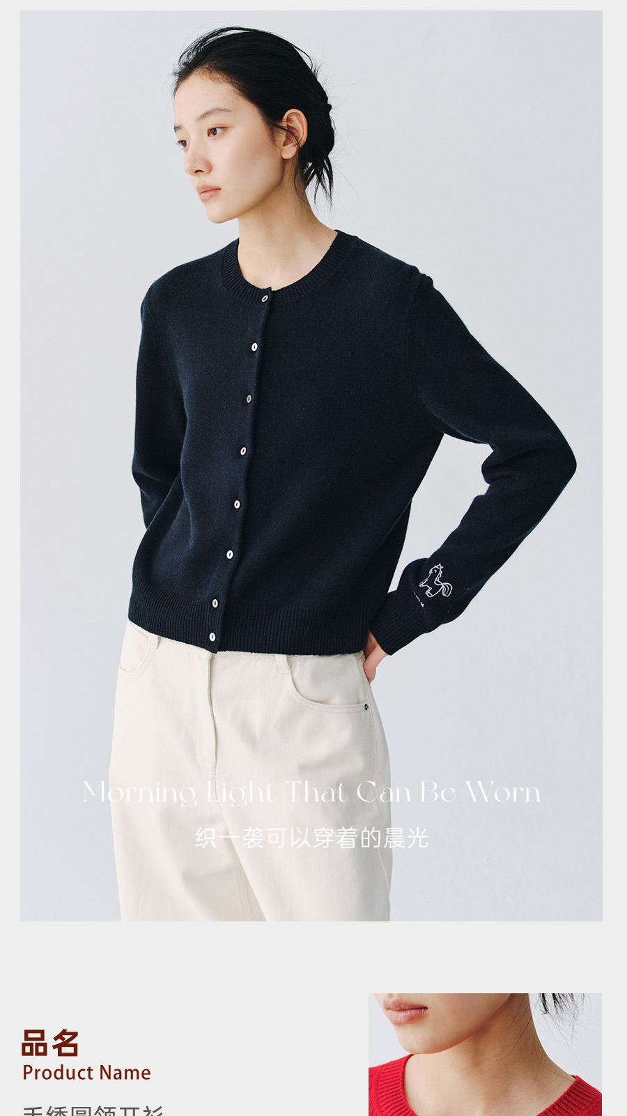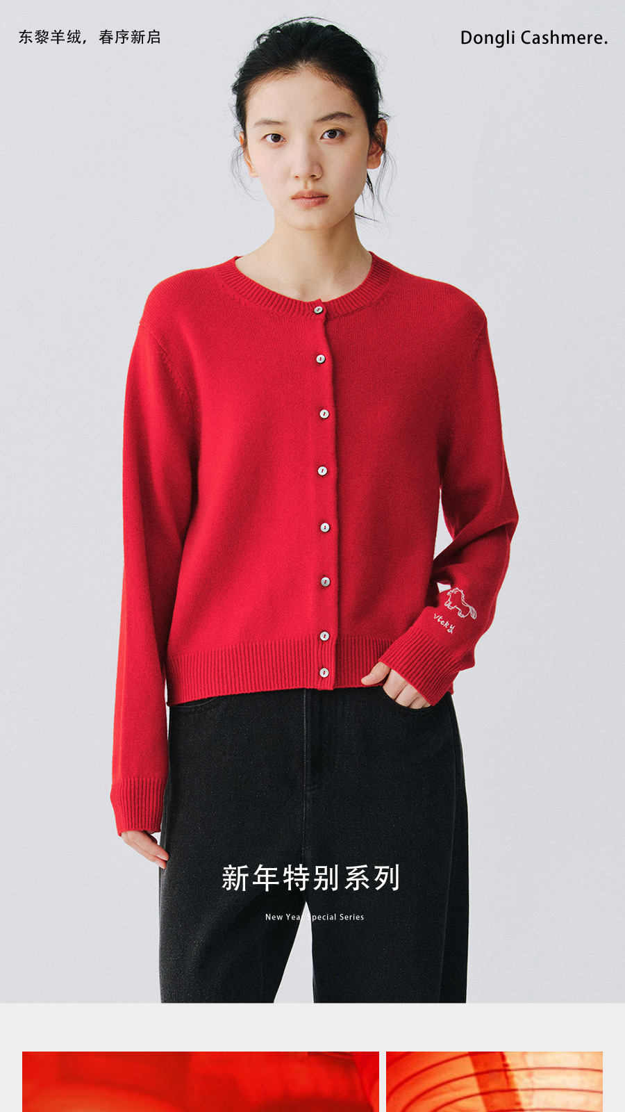 东黎 • 新年款 山羊绒刺绣圆领开衫 5687