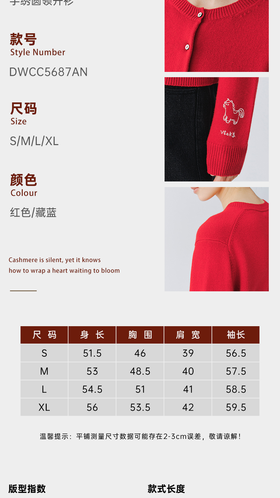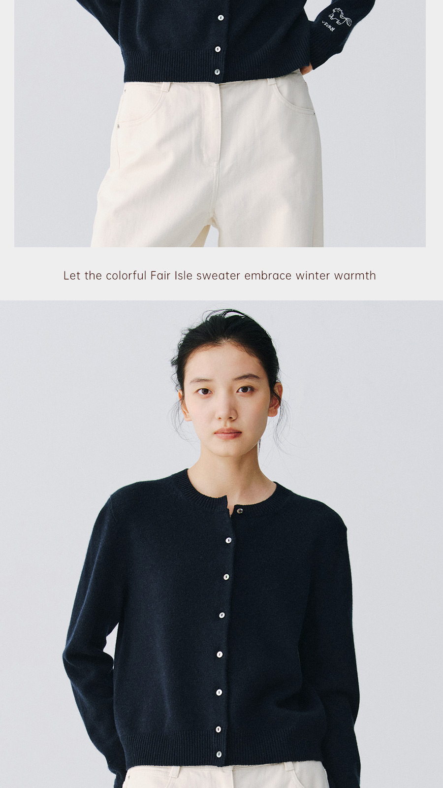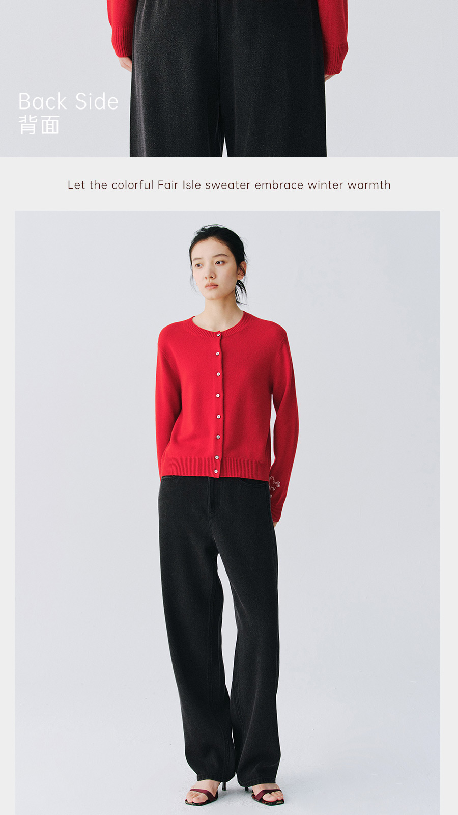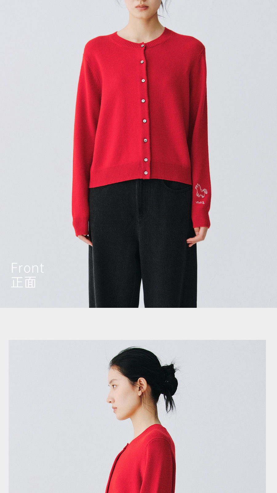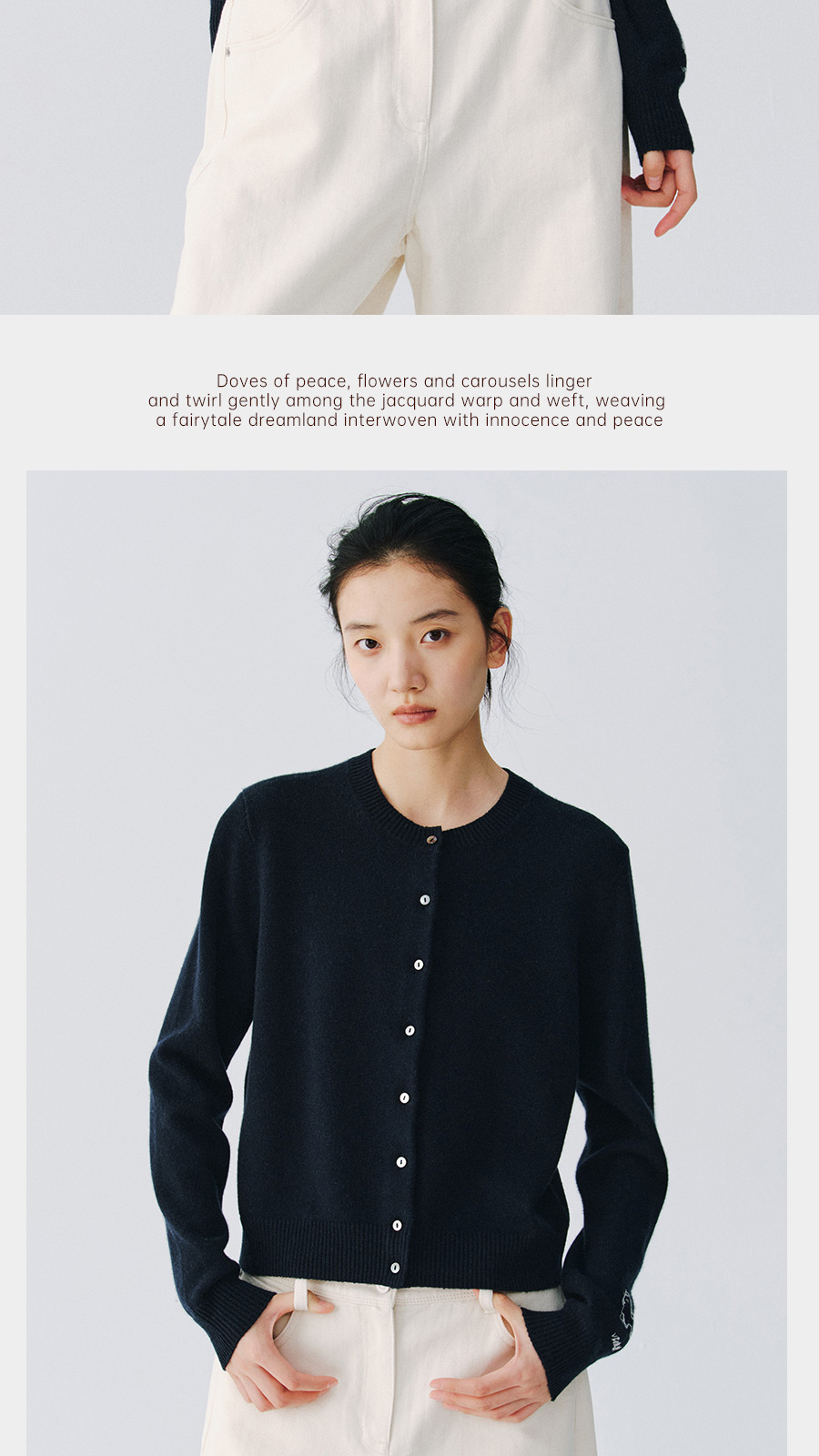 东黎 • 新年款 山羊绒刺绣圆领开衫 5687