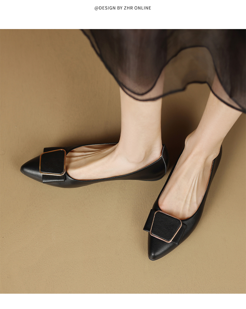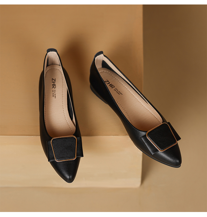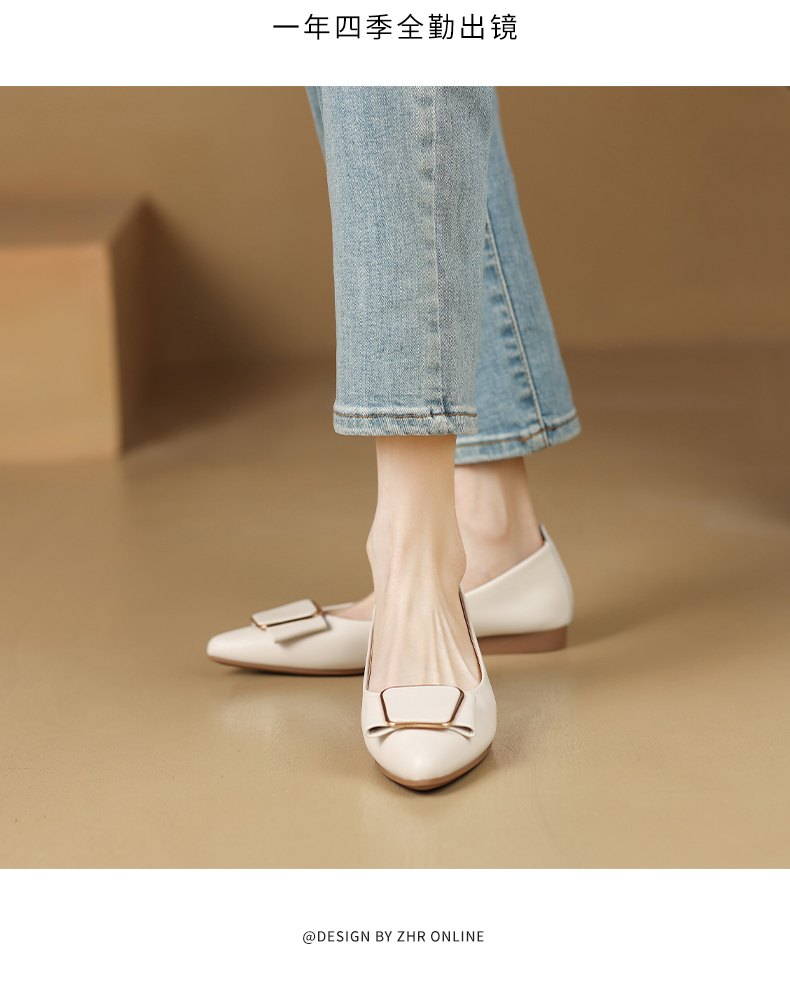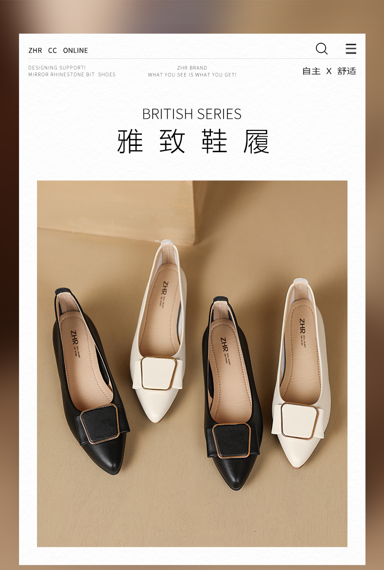 ZHR优雅浅口单鞋2023新款洋气平底单鞋一脚蹬懒人鞋上班族通勤