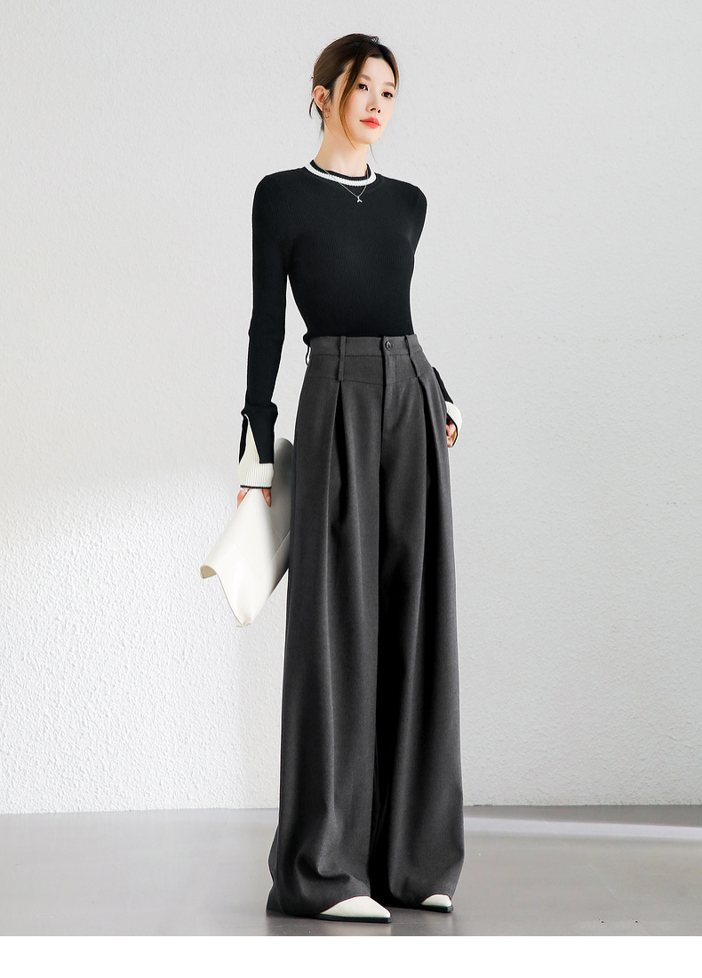 【内购】气质通勤拼接腰头高腰裙裤显瘦内工字活褶橡筋后腰A字休闲裤-144K56925