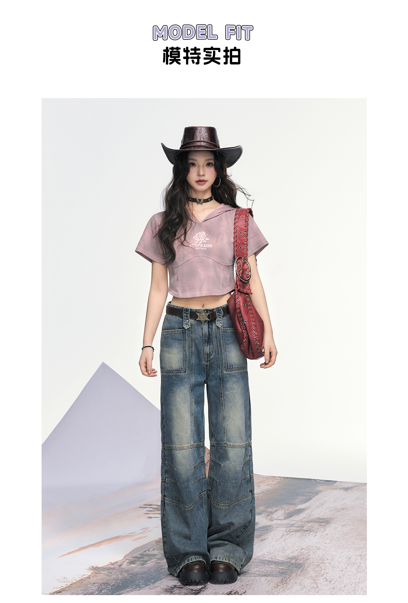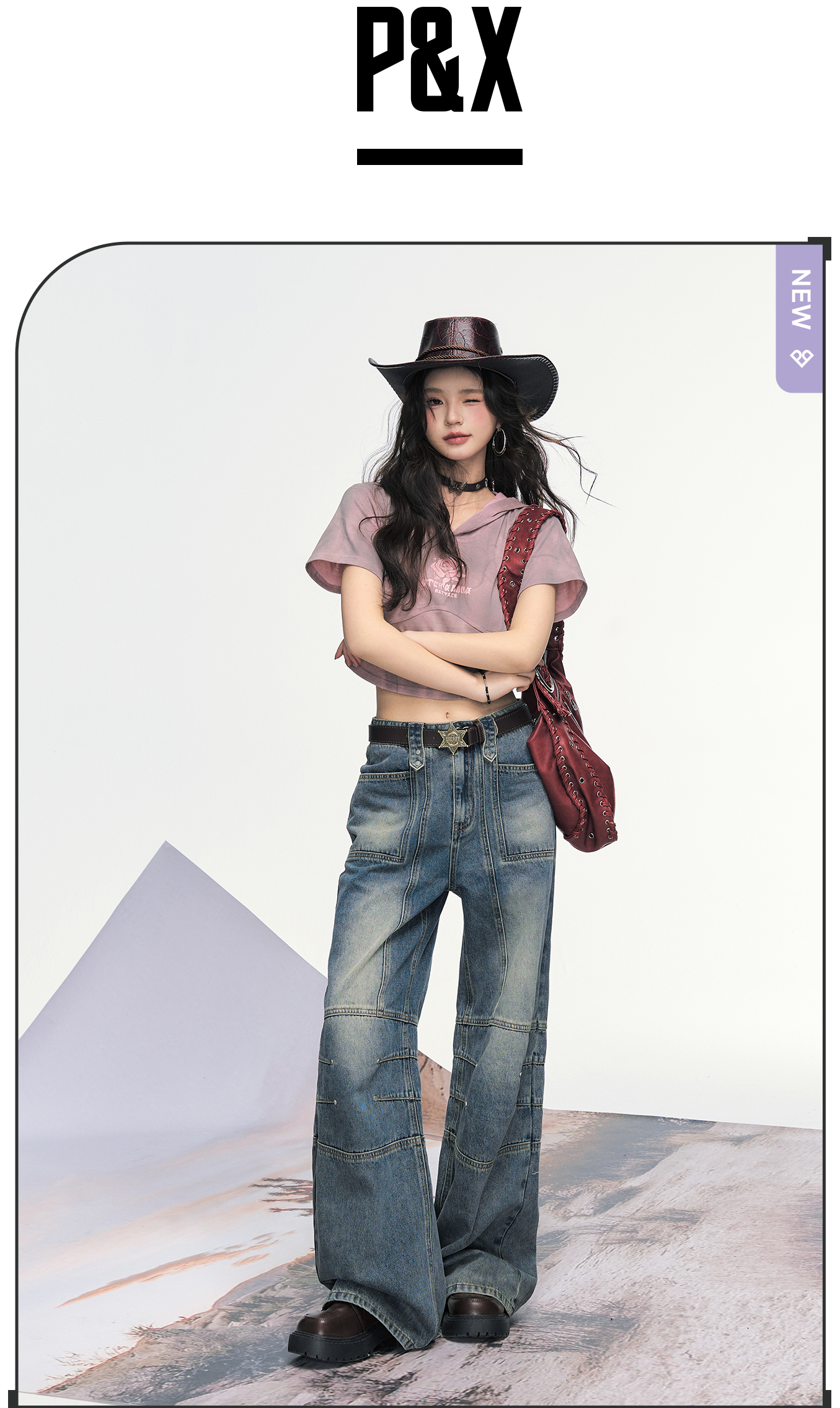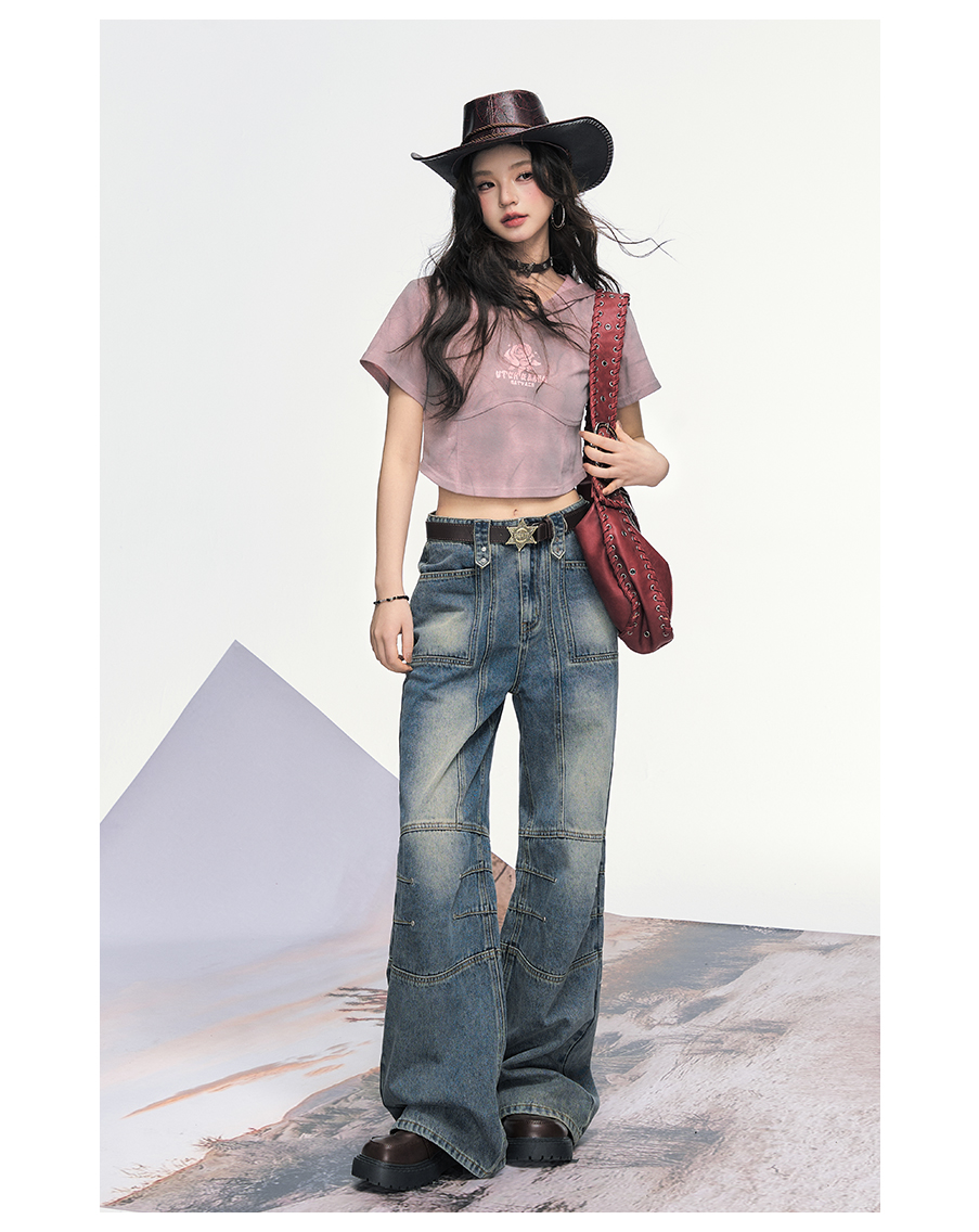P&X设计师女装 美式高街复古阔腿宽松牛仔长裤女 825210193 蓝色