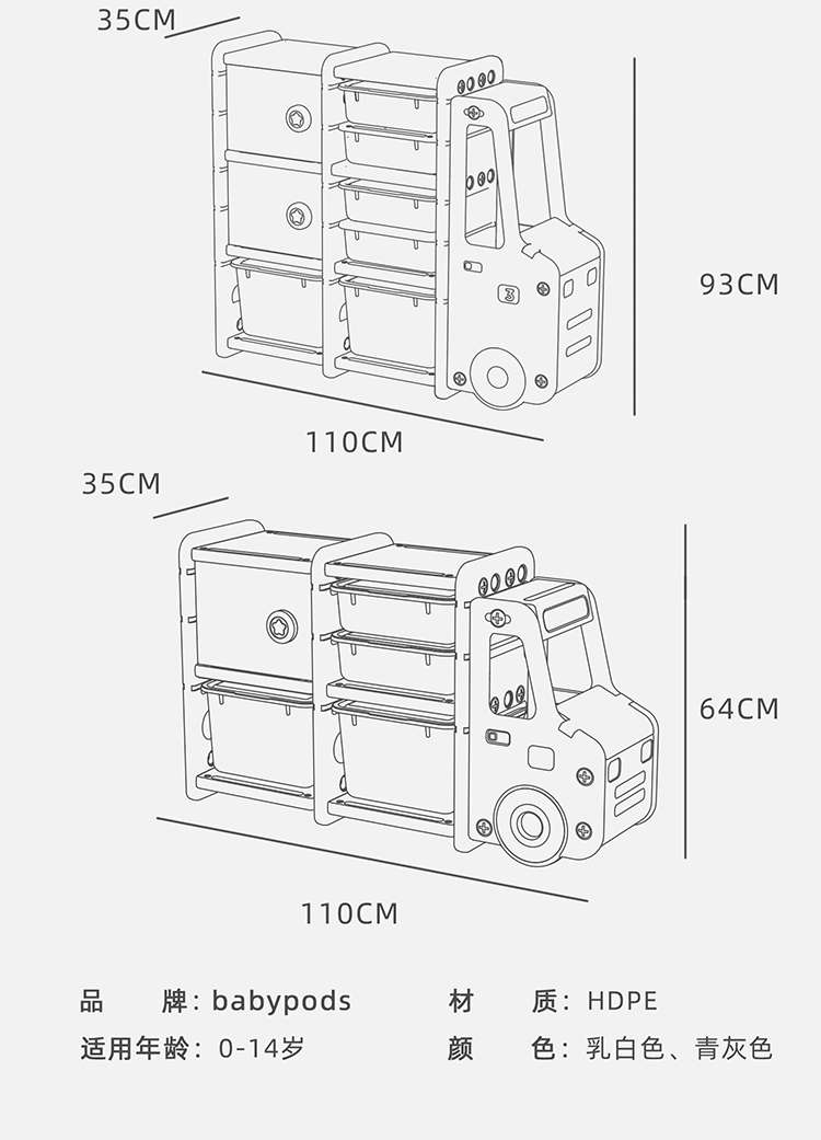 babypods儿童玩具收纳架家用玩具架 收纳柜整理架 置物架 宝宝储物架