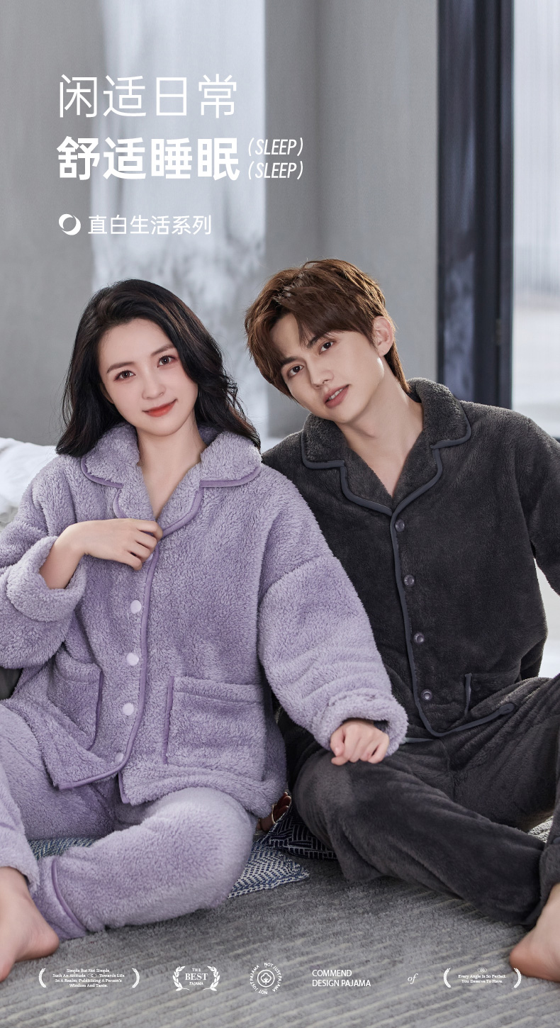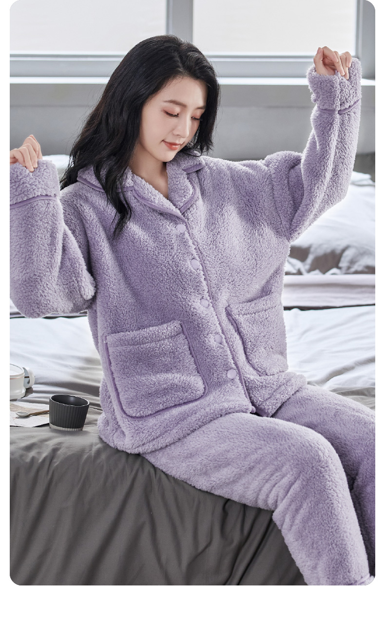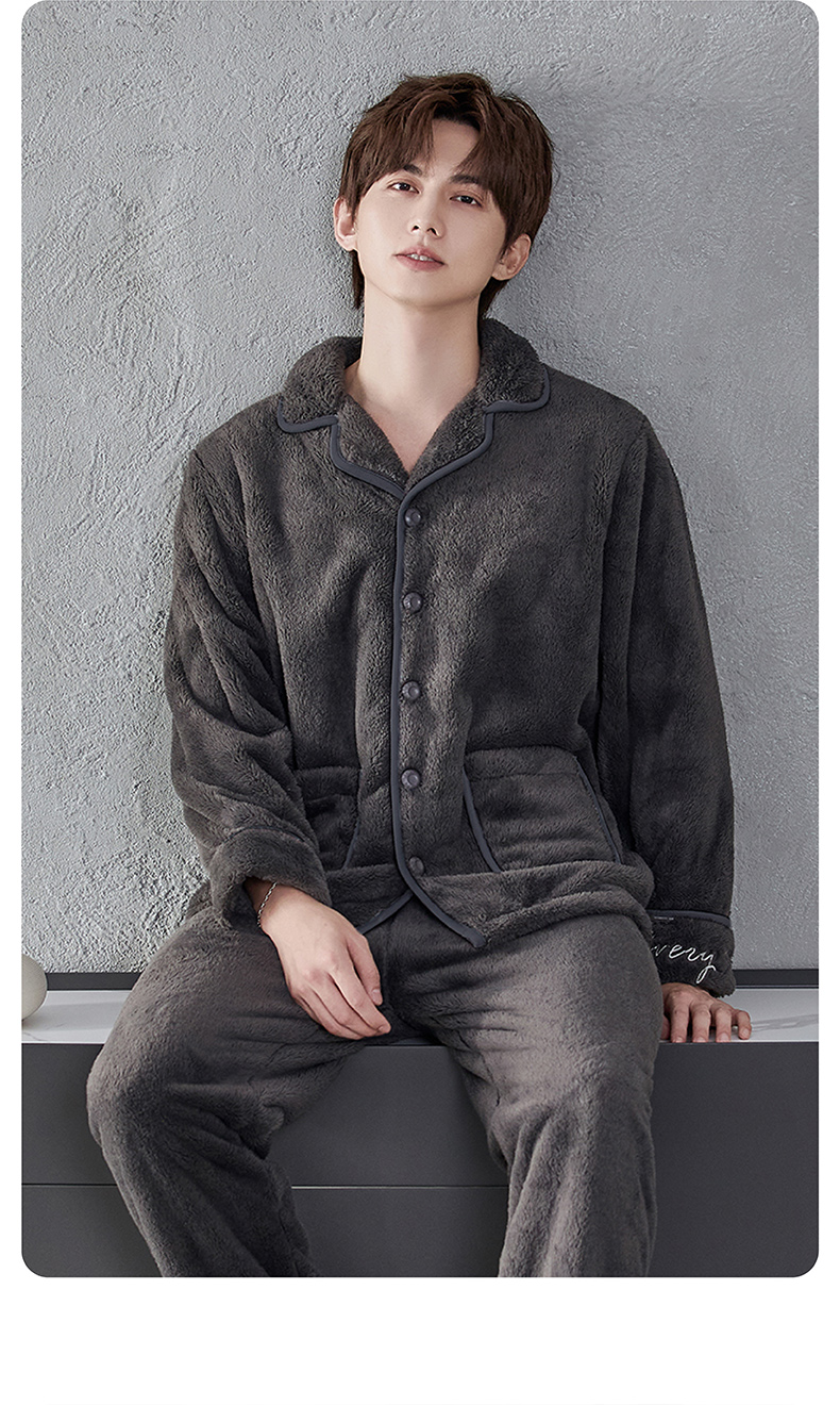 芬腾睡衣秋冬情侣男女士珊瑚绒纯色加绒加厚法兰绒保暖家居服套装