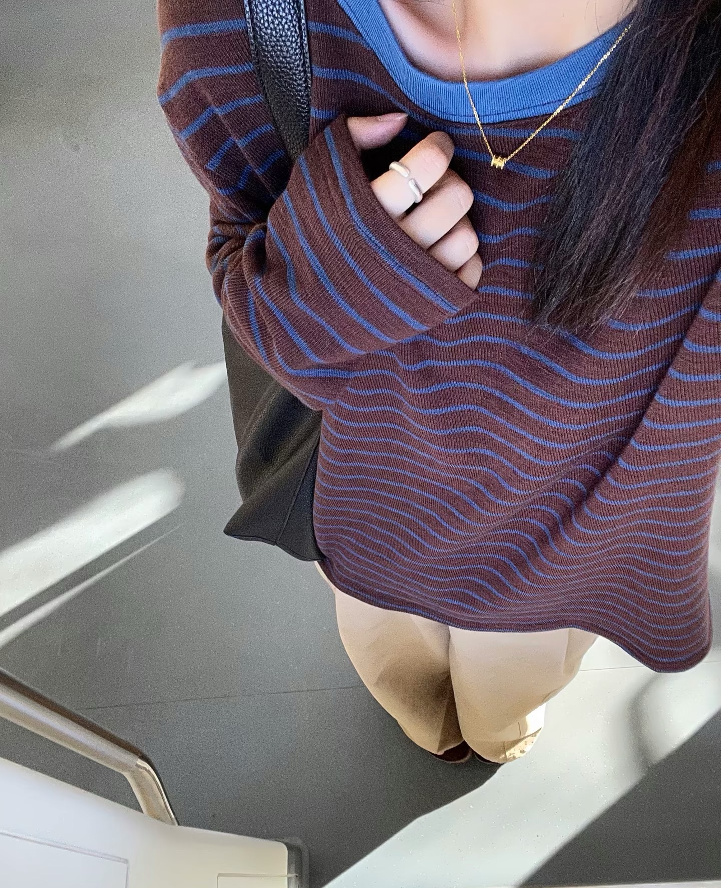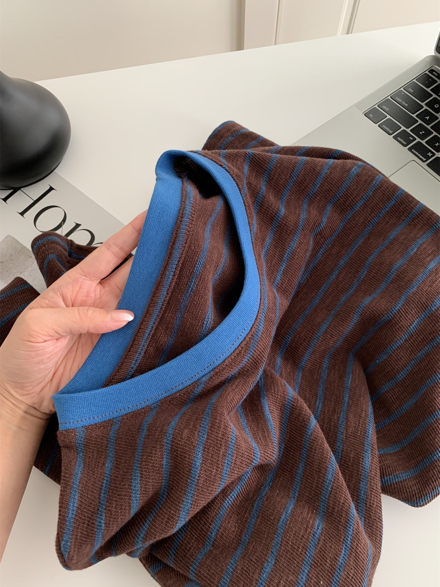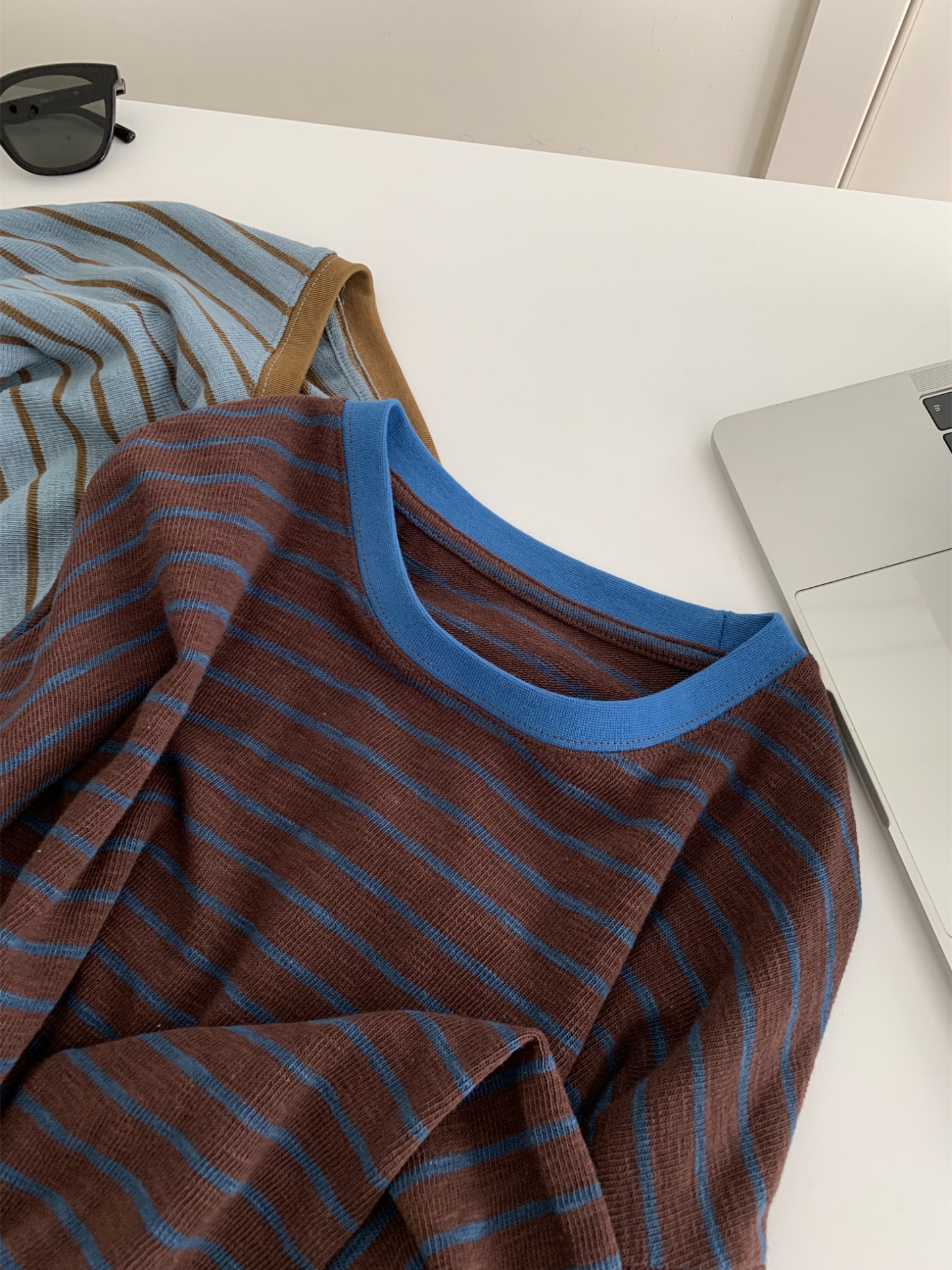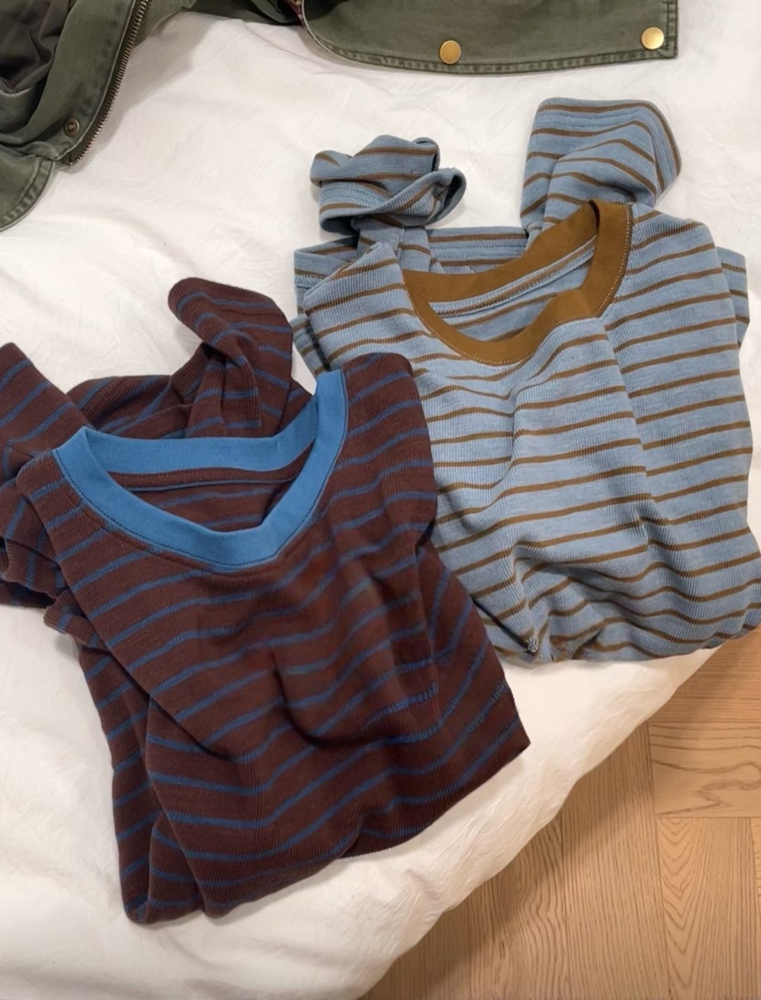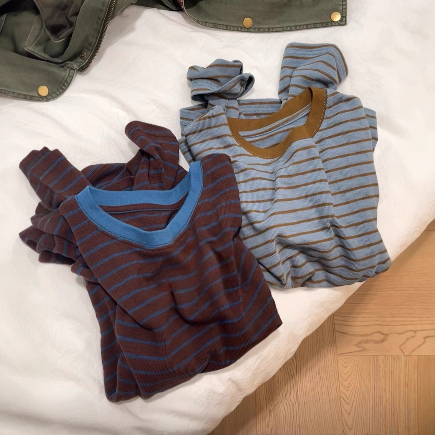 【条纹撞色慵懒风】条纹打底春季 宽松百搭设计感显瘦韩系上衣
