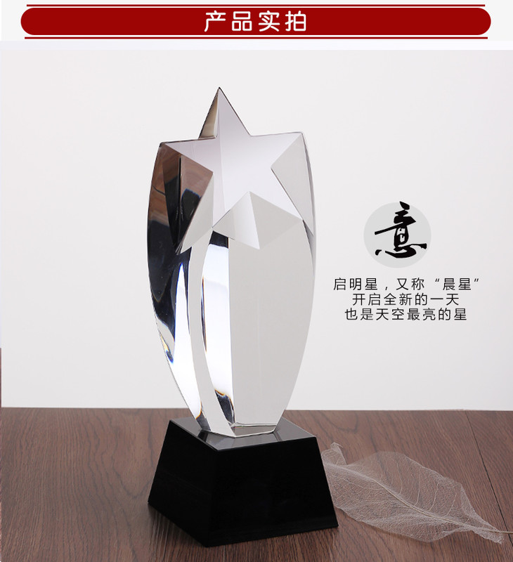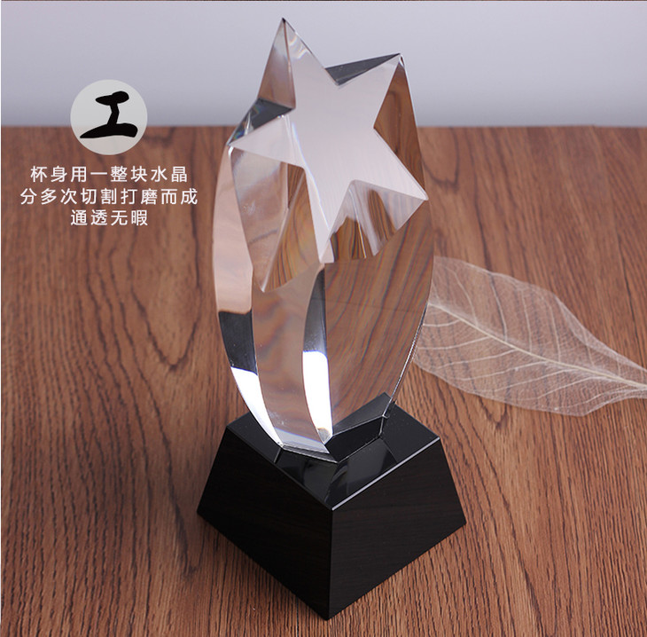 水晶五角星刻字奖杯公司纪念品企业比赛奖杯定做高档创意刻字奖杯