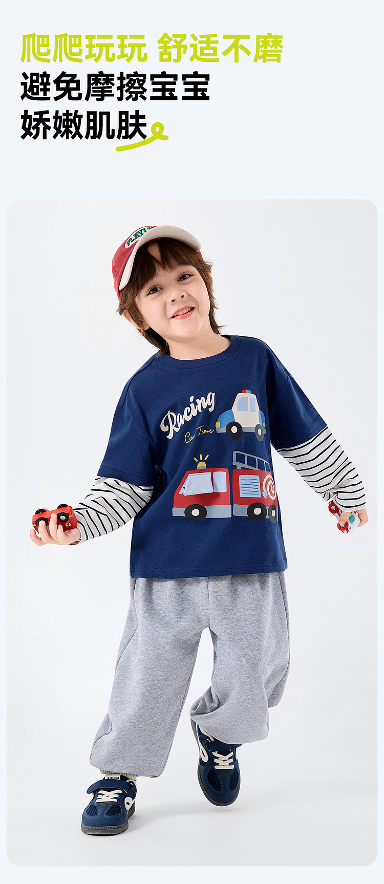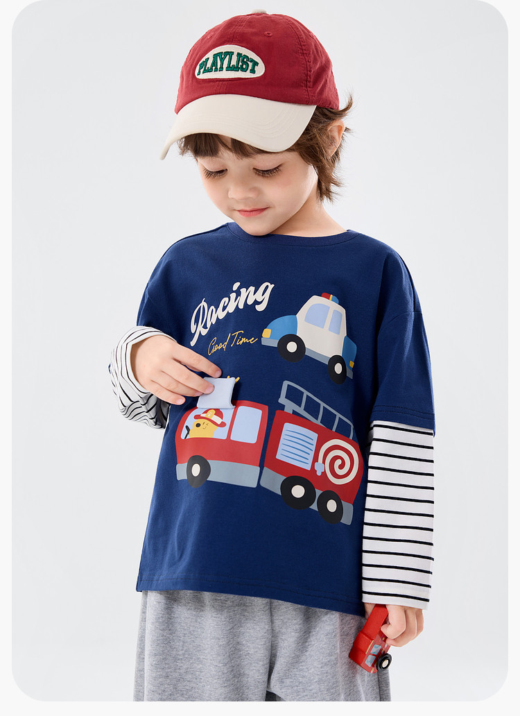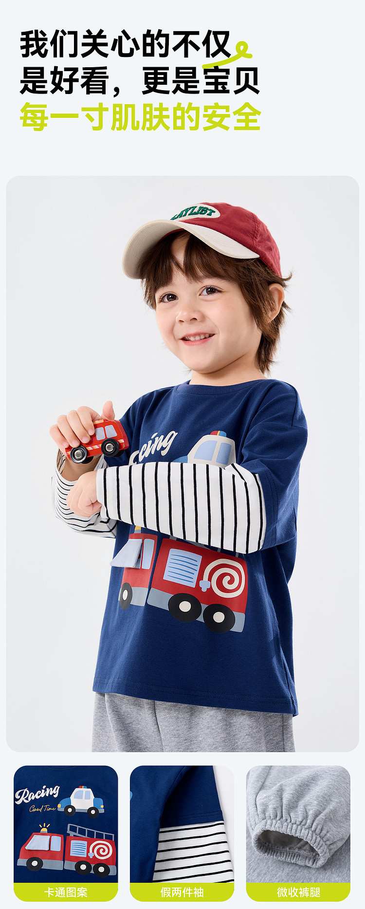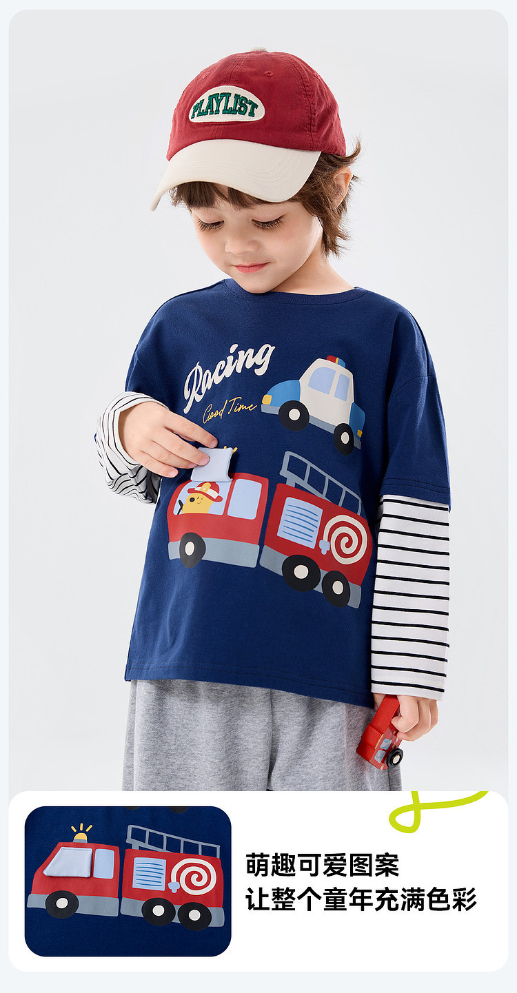 【挖掘机系列】嘟嘟家男童假两件套装儿童春季童装女童宝宝春装潮T6ATZ052