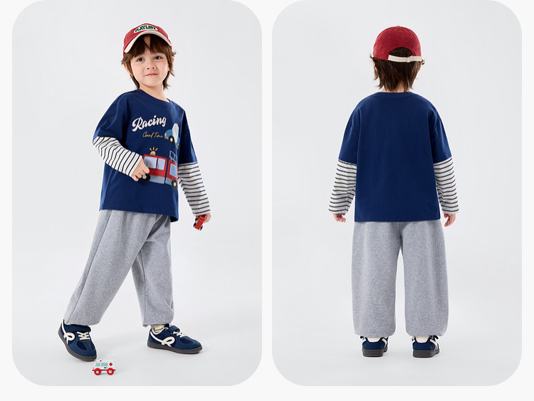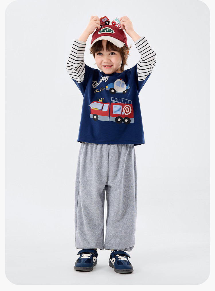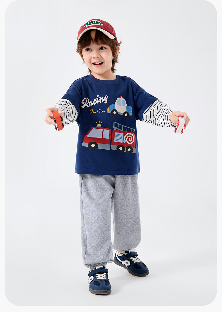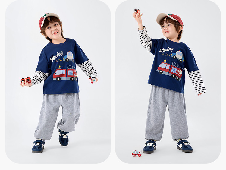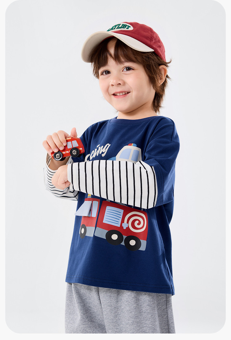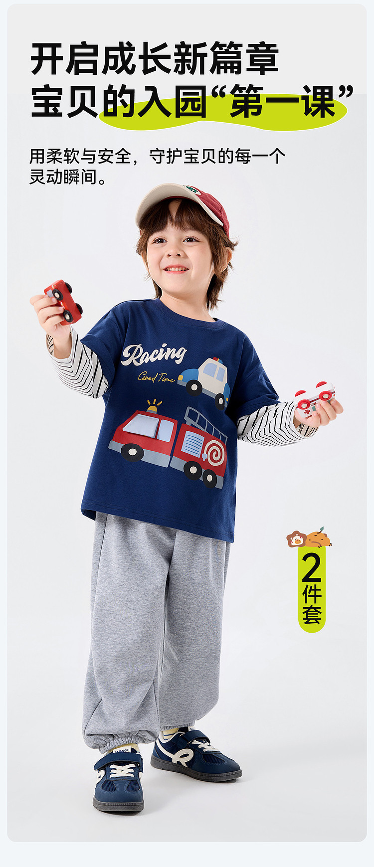 【挖掘机系列】嘟嘟家男童假两件套装儿童春季童装女童宝宝春装潮T6ATZ052