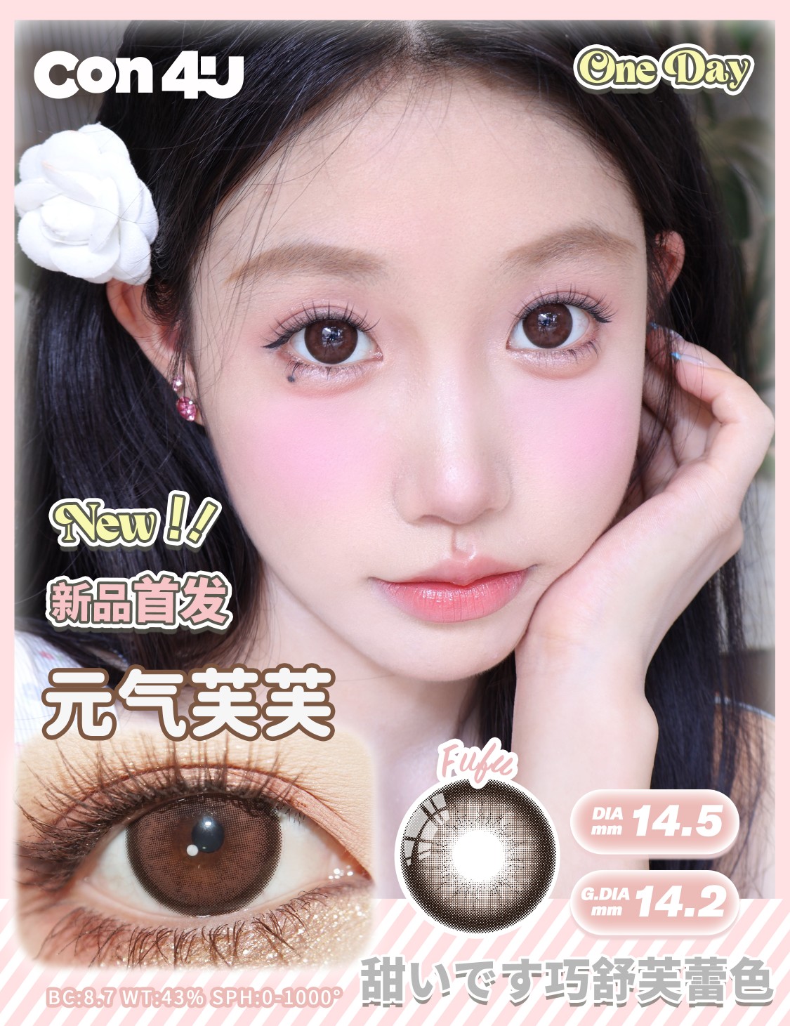 con4u日抛 元气芙芙 巧克力色 14.5mm 着色14.2 超大巧片!日抛无售后!