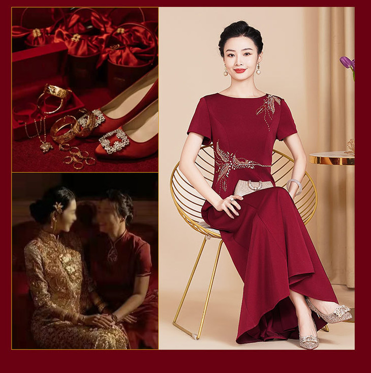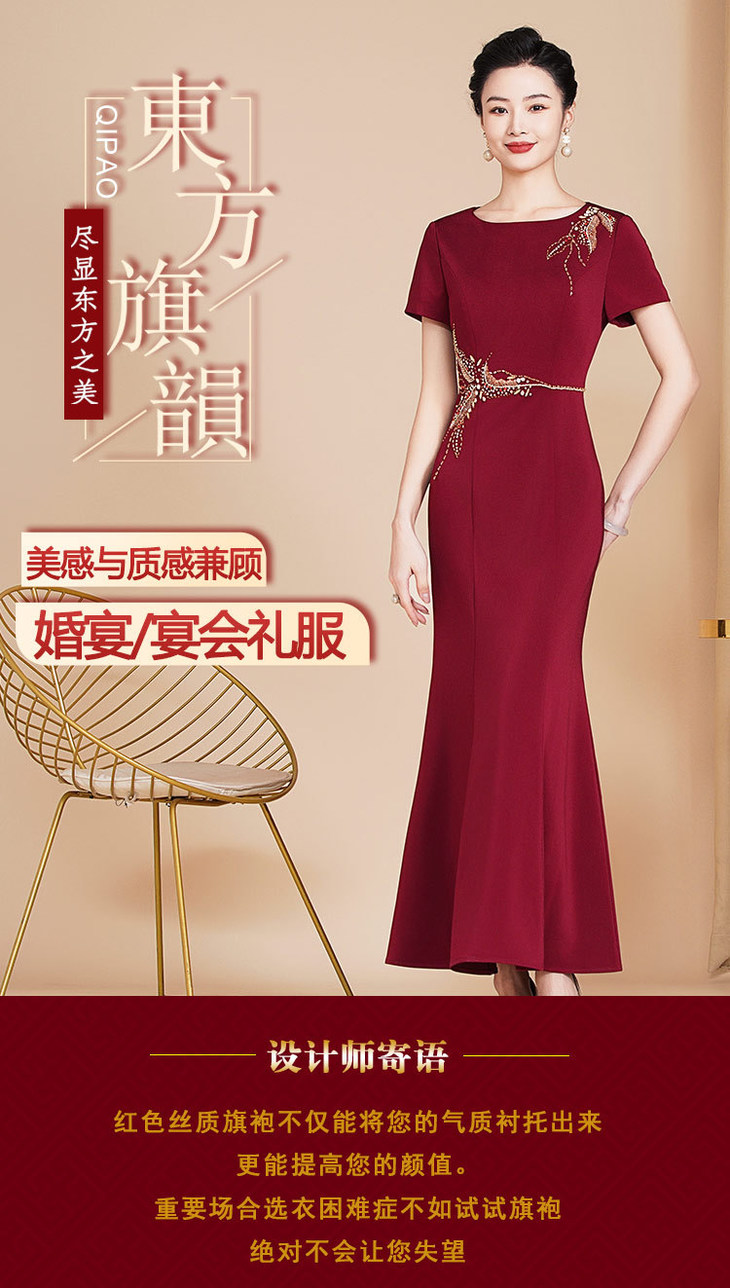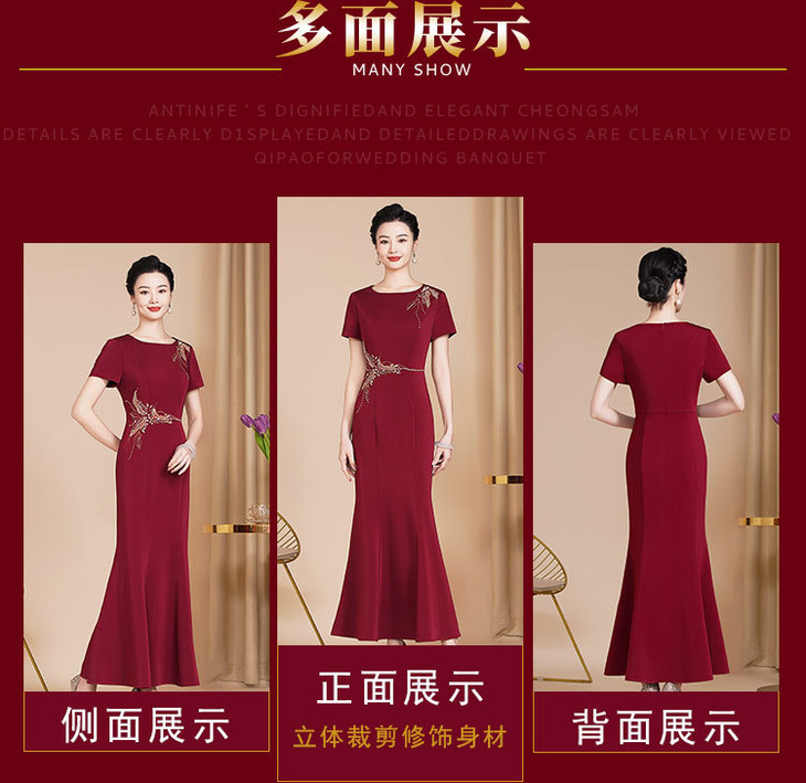 新款高档旗袍中式婚礼,修身长款妈妈装礼服旗袍敬酒服高端气WX88652