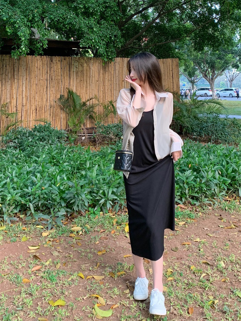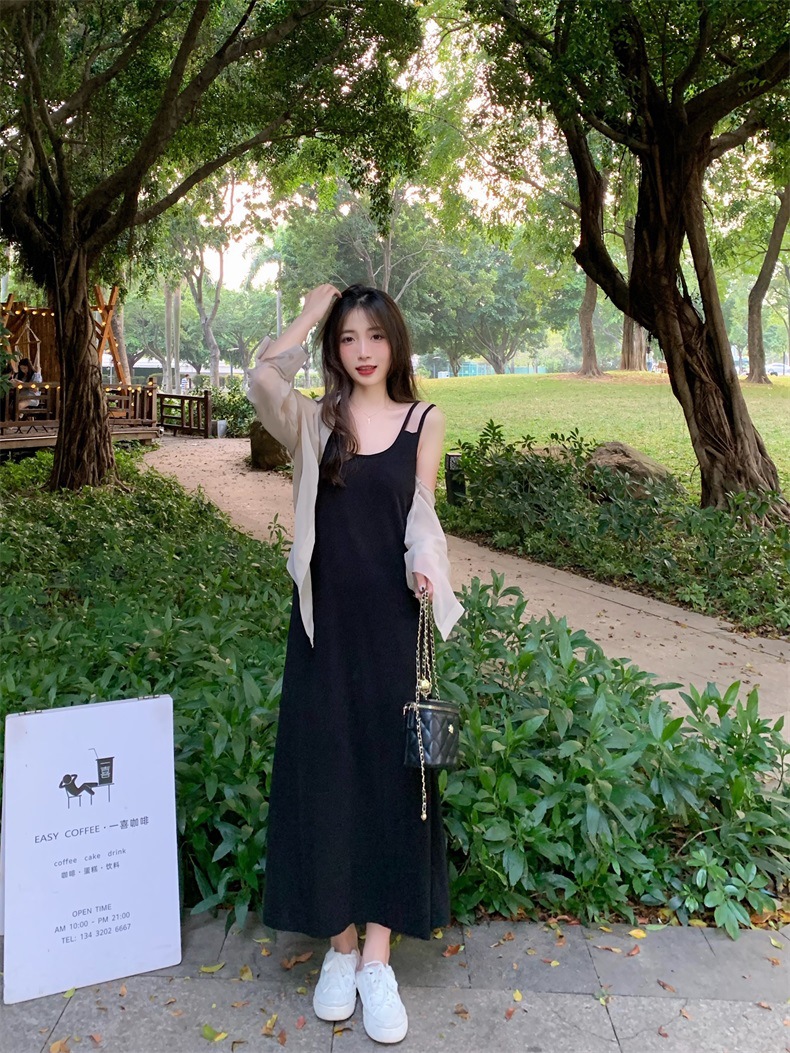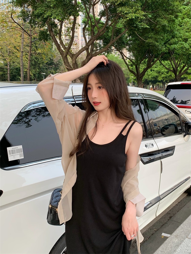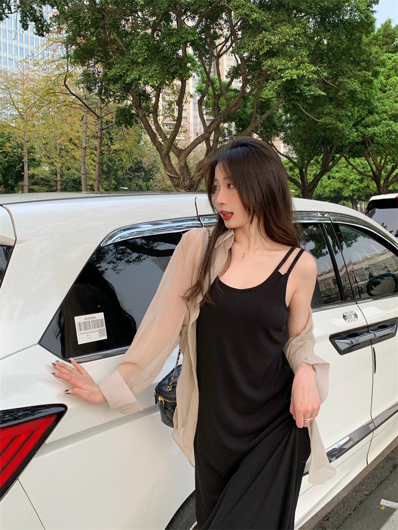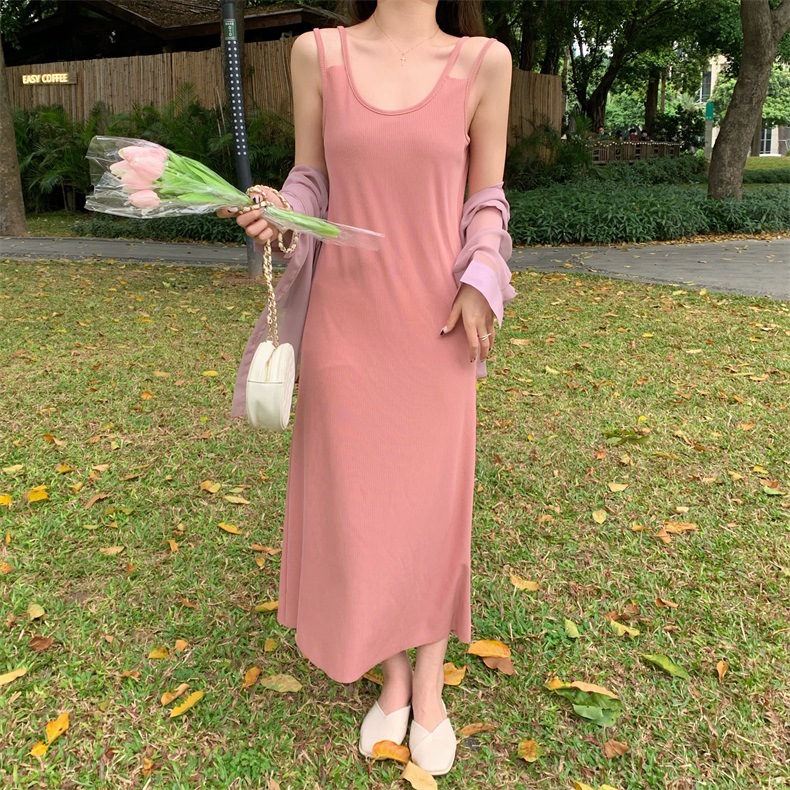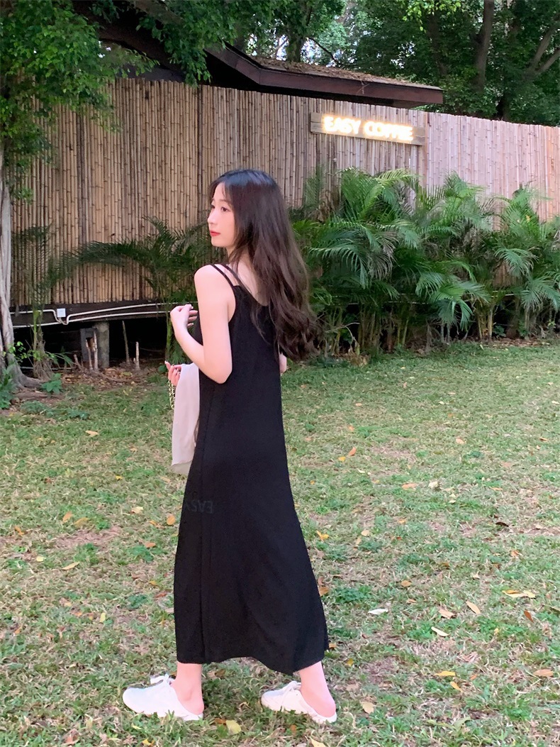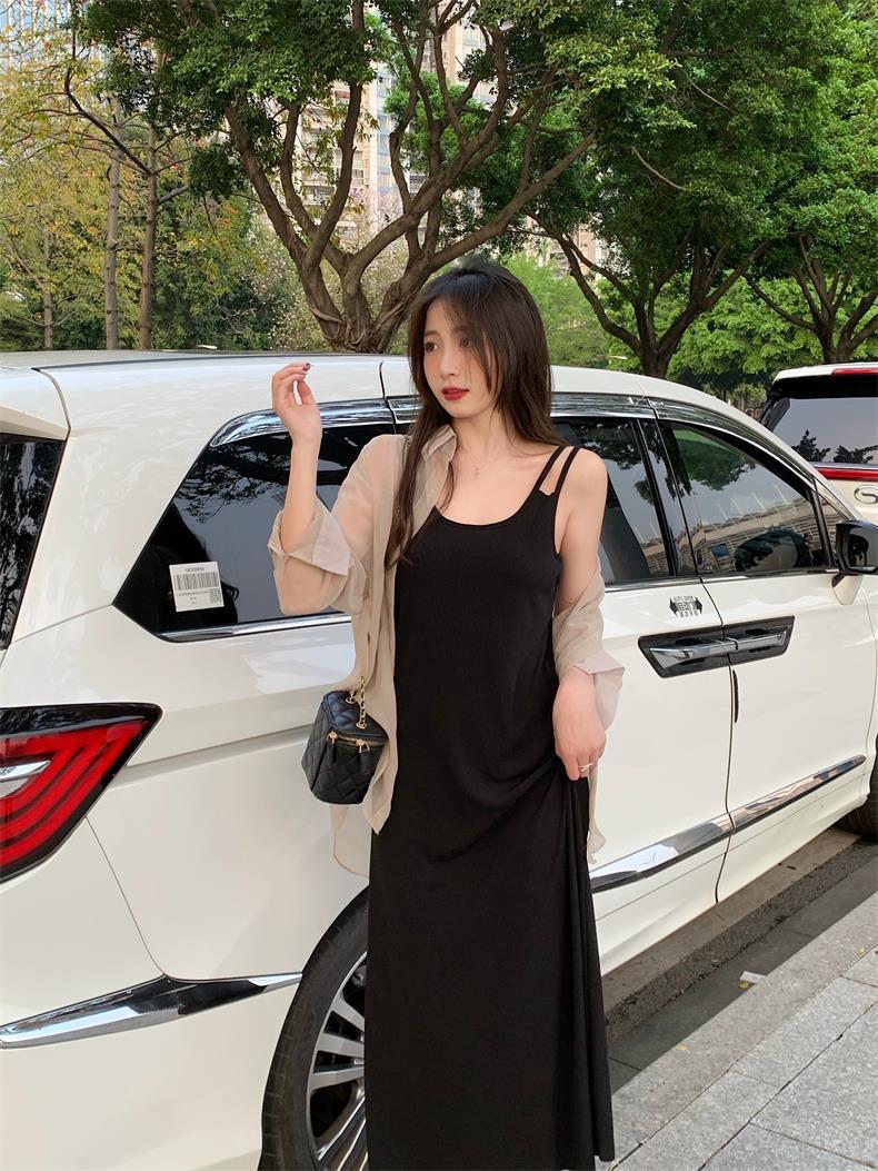夏2025新款【设计感双肩吊带连衣裙女 宽松显瘦】内搭过膝背心长裙