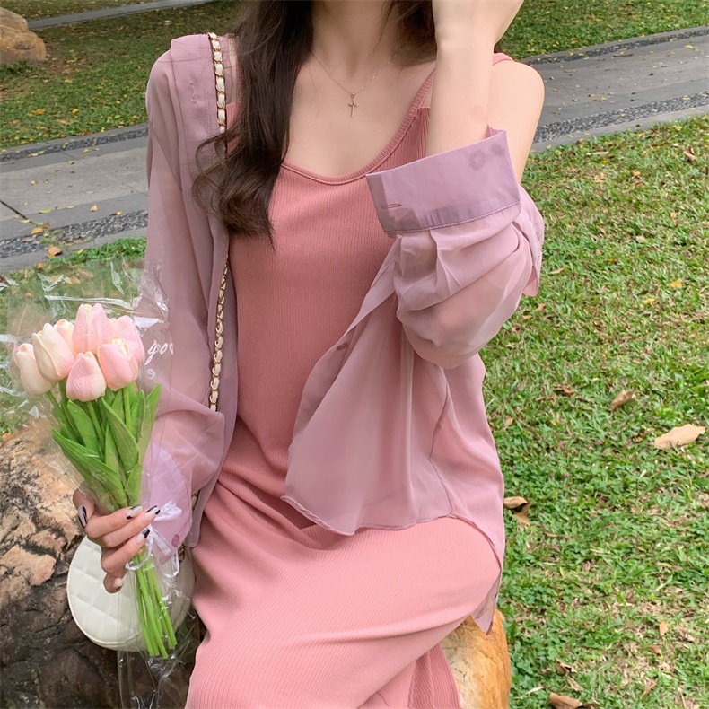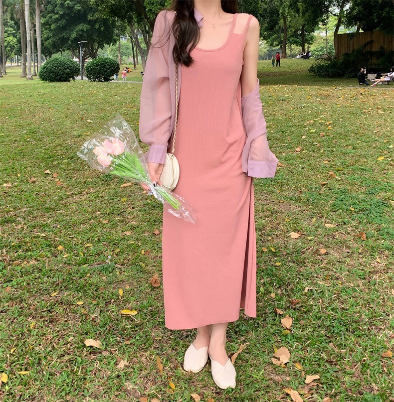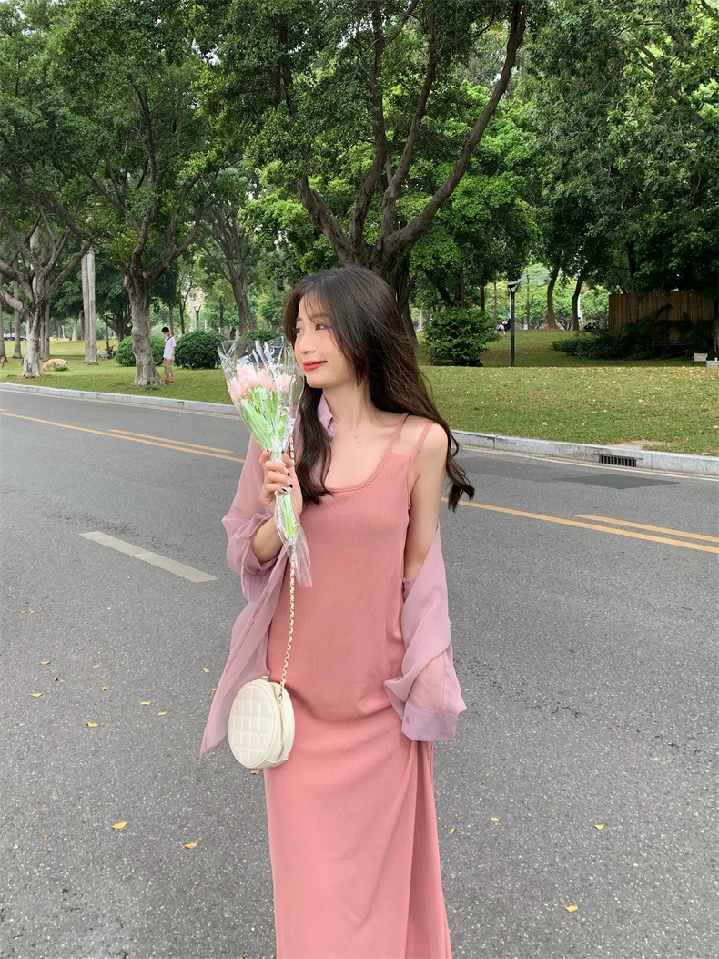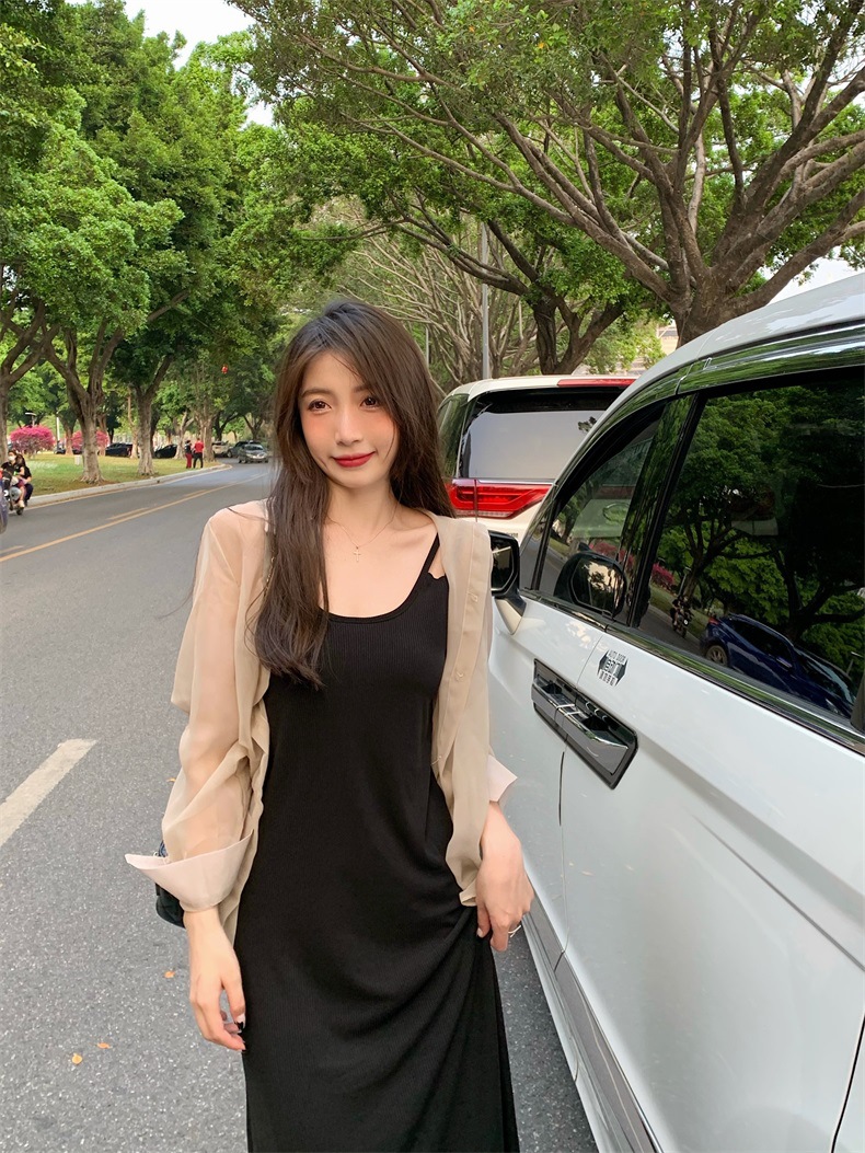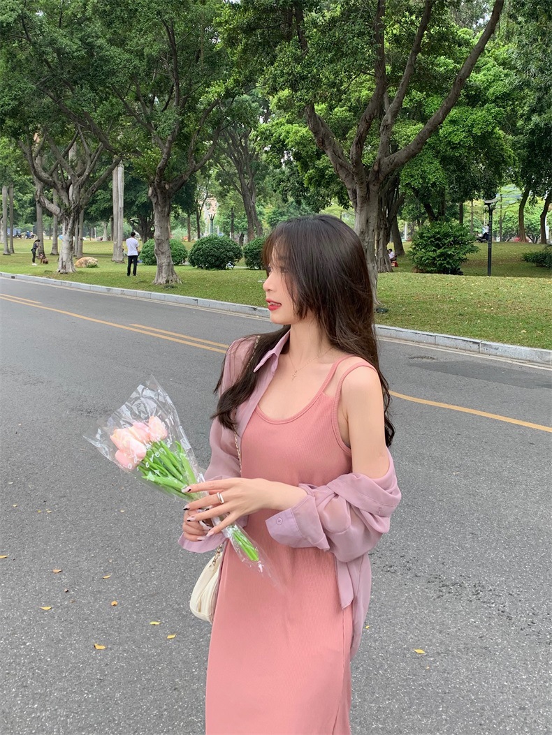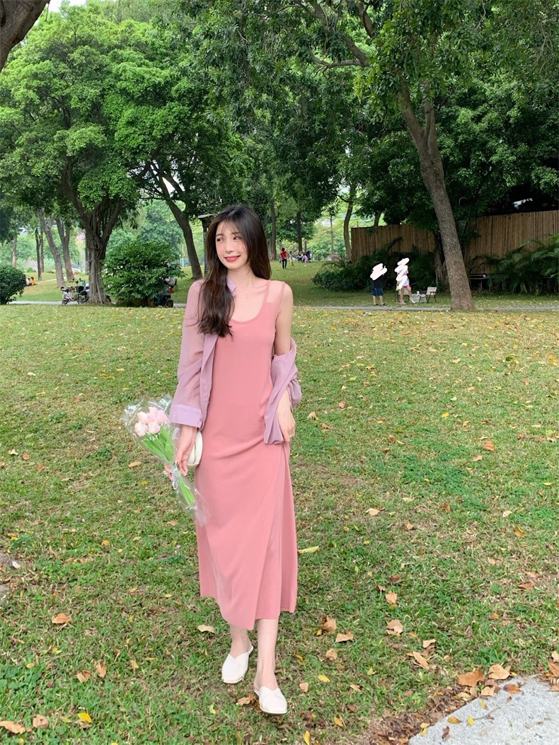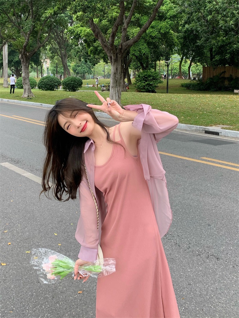 夏2025新款【设计感双肩吊带连衣裙女 宽松显瘦】内搭过膝背心长裙
