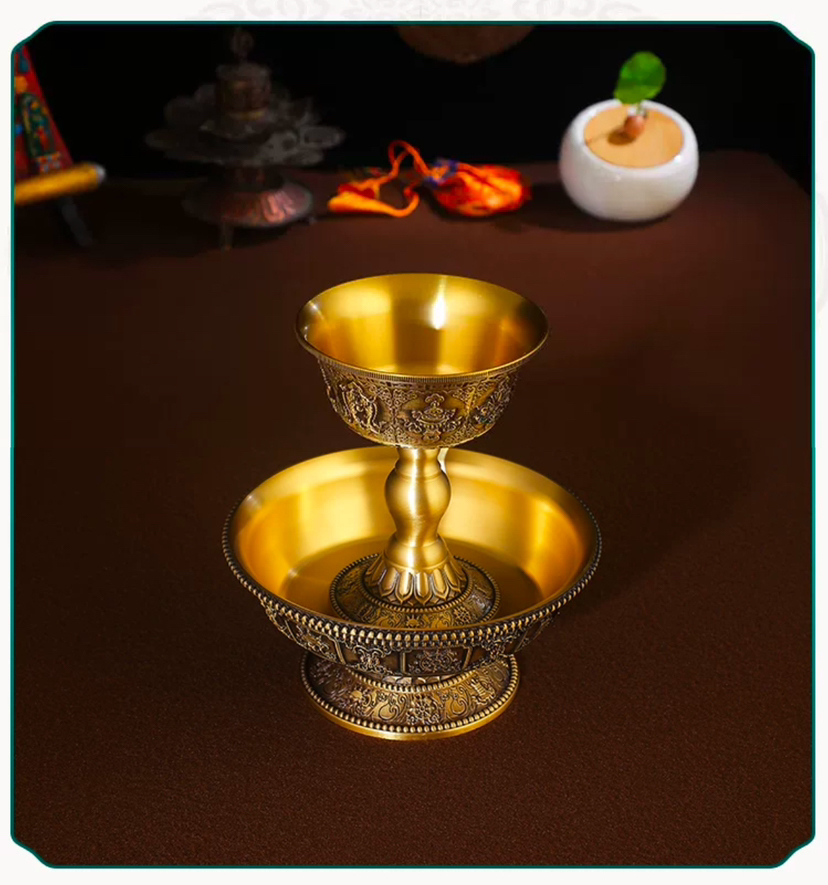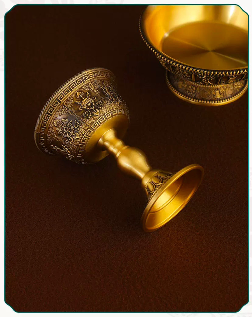 精品黄铜八吉祥护法杯供佛用品圣水供水杯佛前供杯大小号
