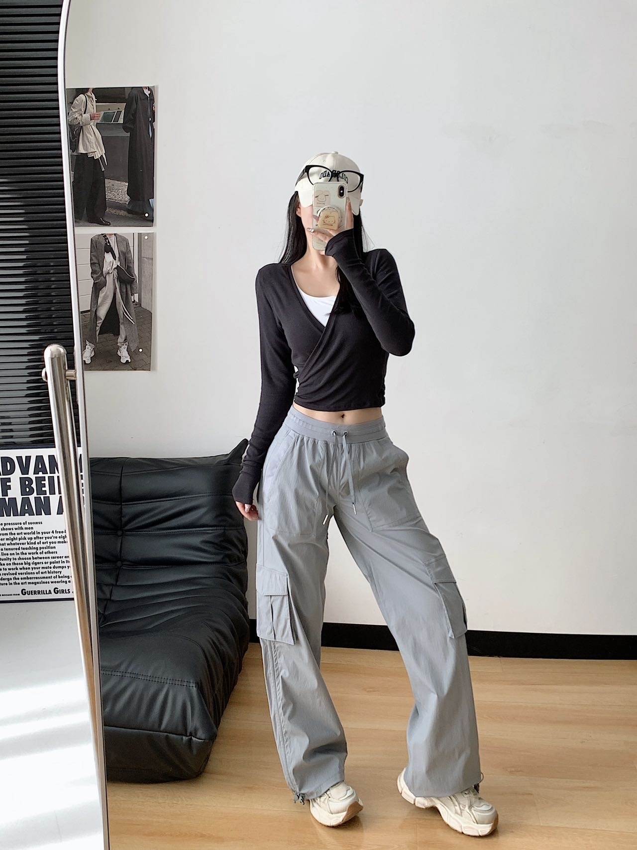 立体版型!显瘦显高!!!【lu家DanceStudio直筒休闲口袋工装神裤】万众瞩目的工装裤来啦~褶皱面料,轻薄透气,夏天穿也不闷,上身很轻!重点显腿长显瘦!!!
