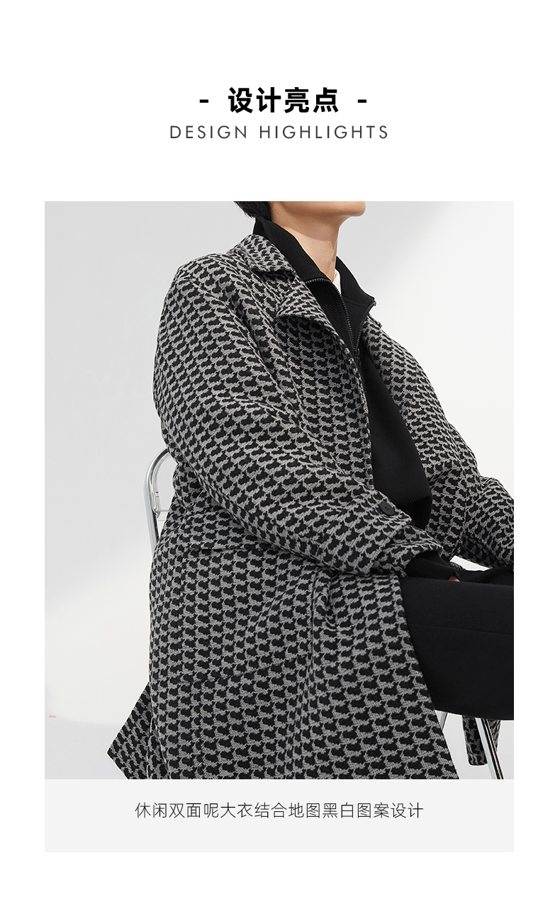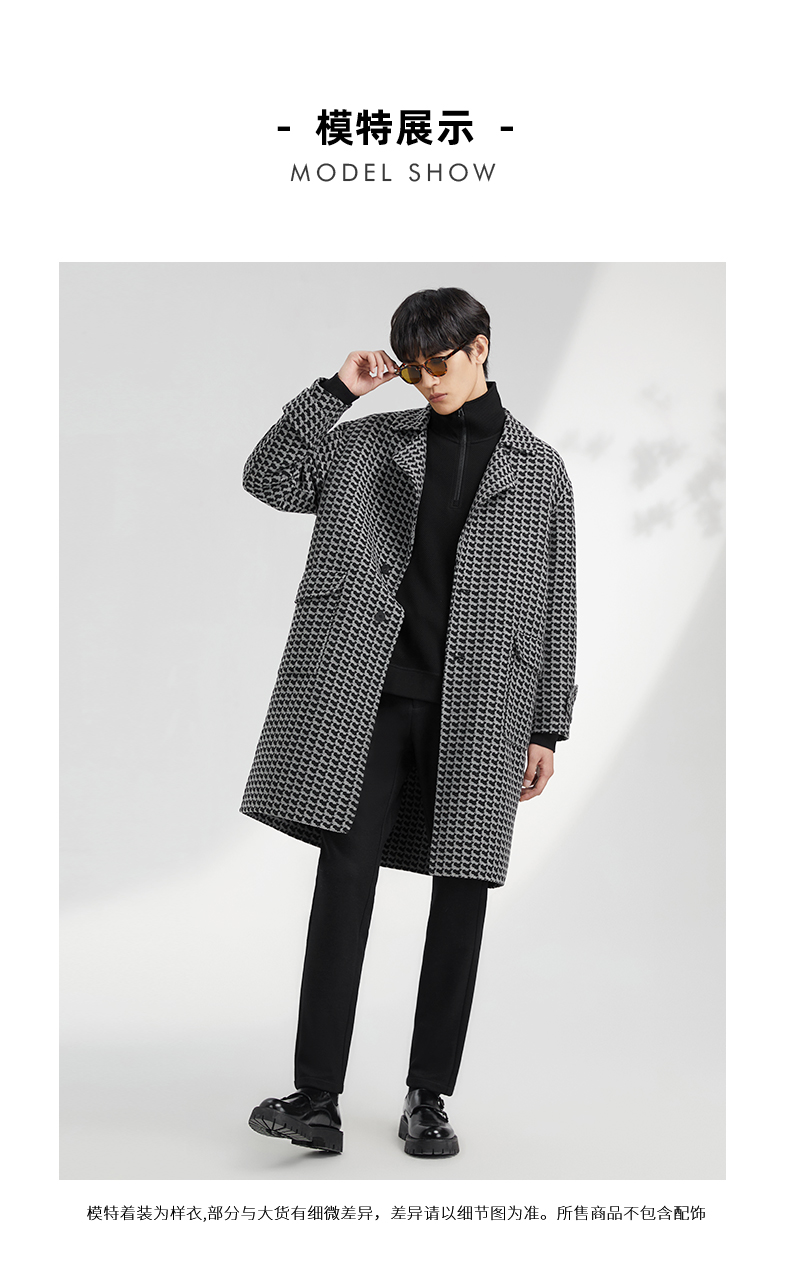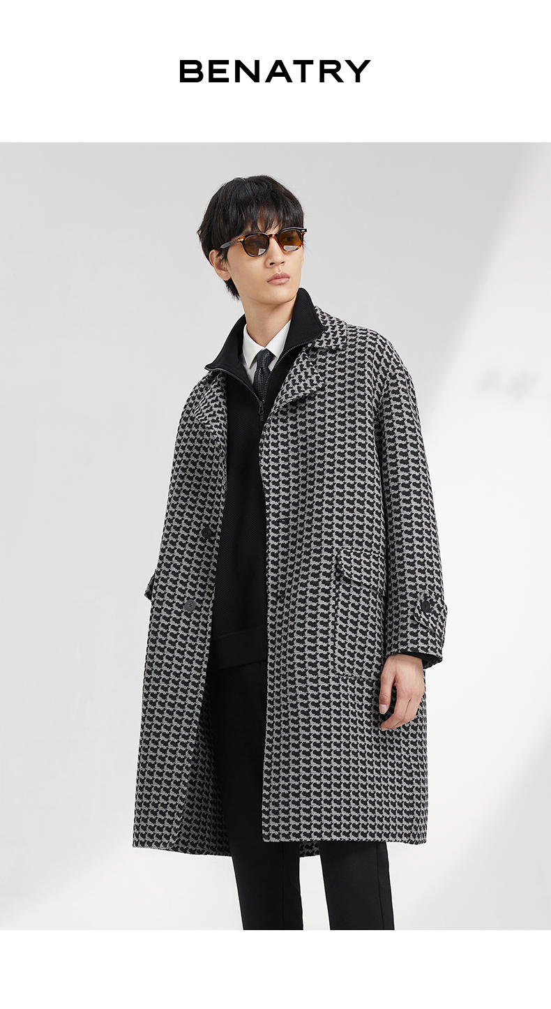 贝纳川地图图案设计经典大翻领中长款男士大衣ECK428001402