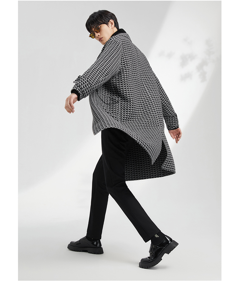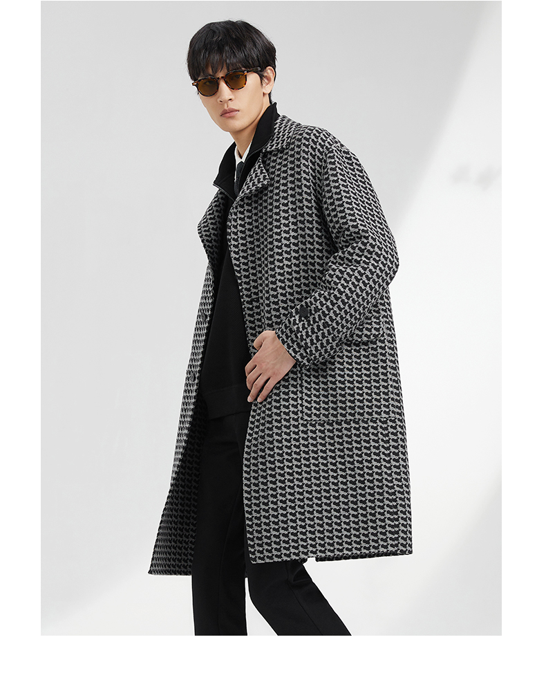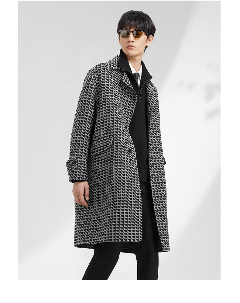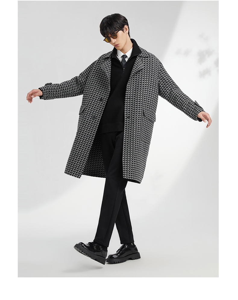 贝纳川地图图案设计经典大翻领中长款男士大衣ECK428001402