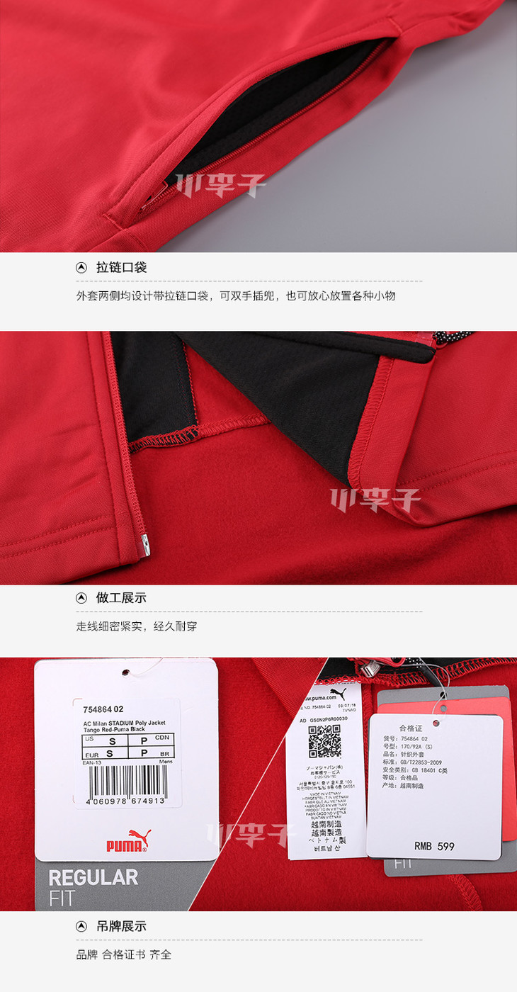小李子:专柜正品PUMA彪马AC米兰训练长袖夹克外套754864