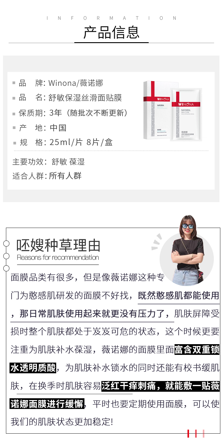 薇诺娜舒敏保湿丝滑面膜6片装(盒)