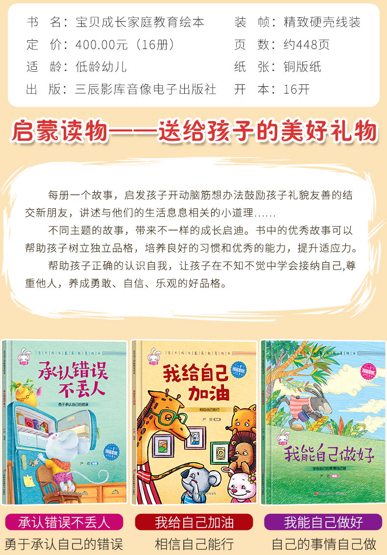 宝贝成长家庭教育绘本 3岁幼儿阅读精装硬壳书幼儿园小班4-5一6岁儿童读物硬皮硬面老师推荐中班大班三到四岁亲子共读宝宝故事书籍