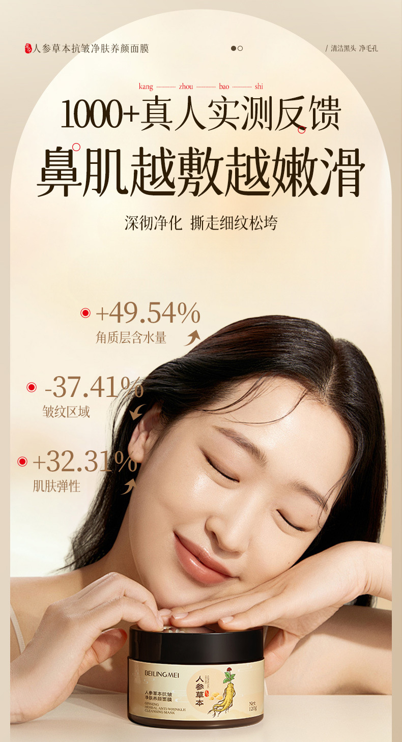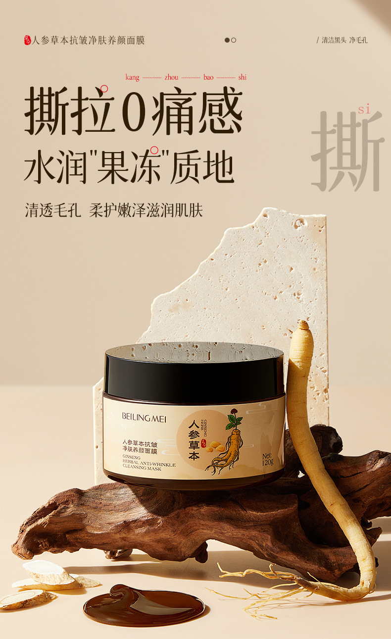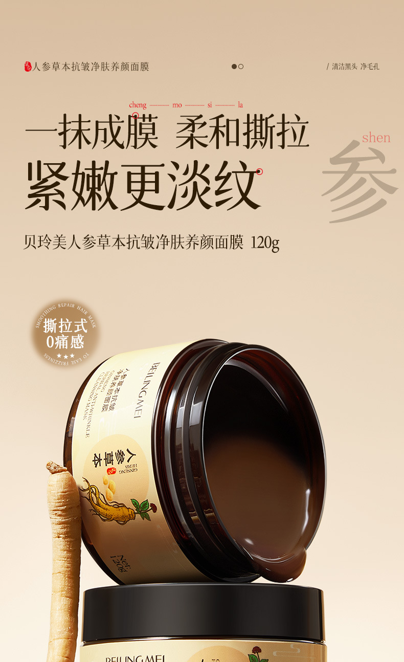 【一抹成膜!紧嫩淡纹】贝玲美人参草本抗皱净肤养颜保湿滋润抗皱淡化细纹养肤撕拉面膜.xa