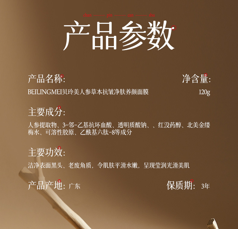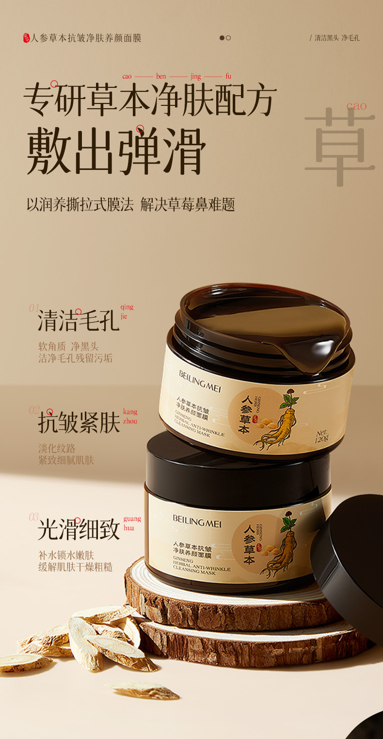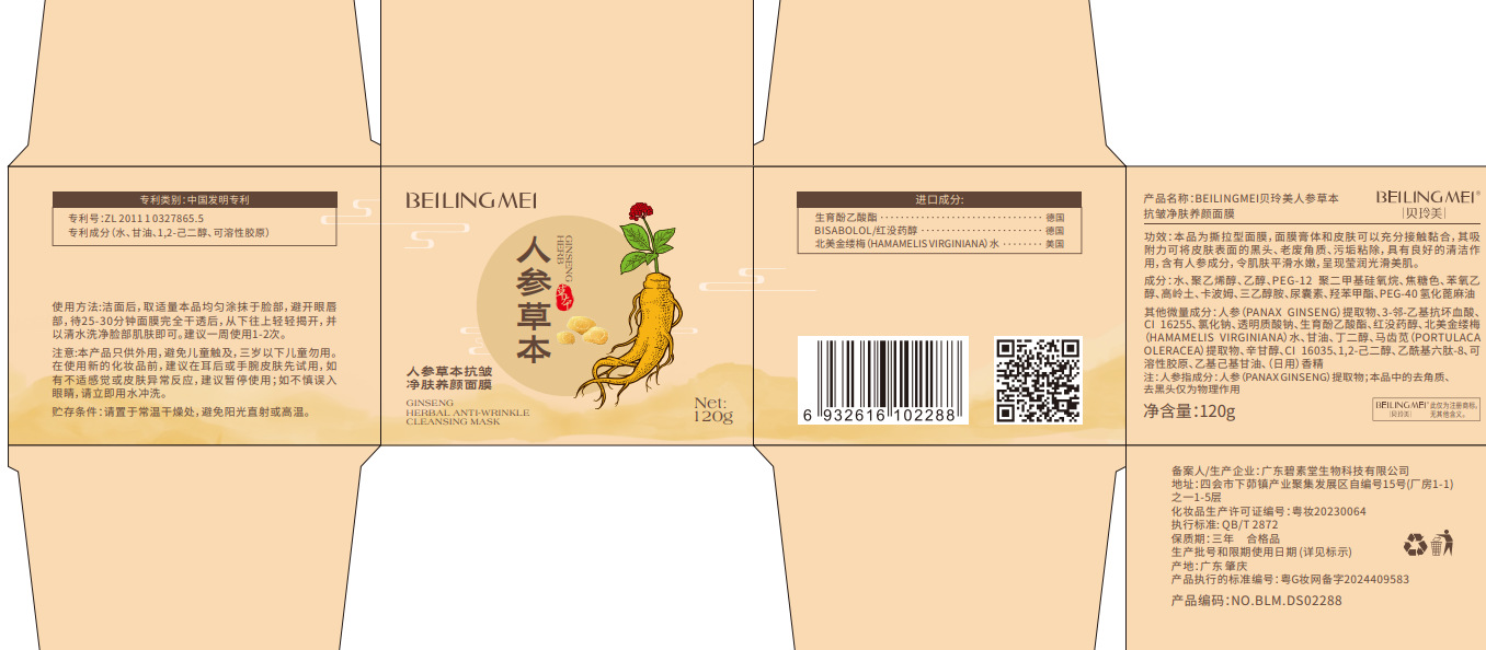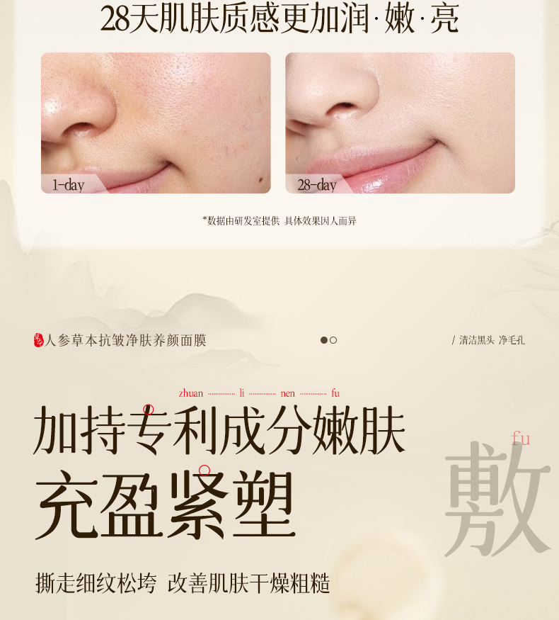【一抹成膜!紧嫩淡纹】贝玲美人参草本抗皱净肤养颜保湿滋润抗皱淡化细纹养肤撕拉面膜.xa