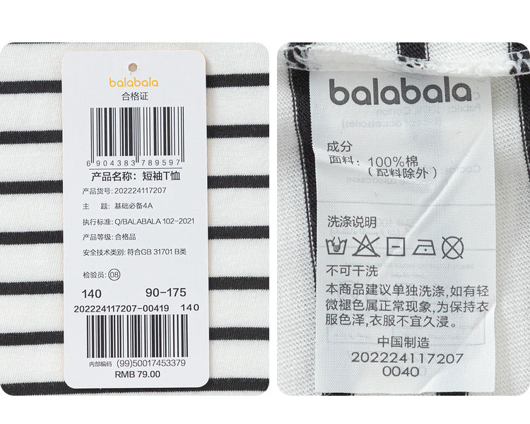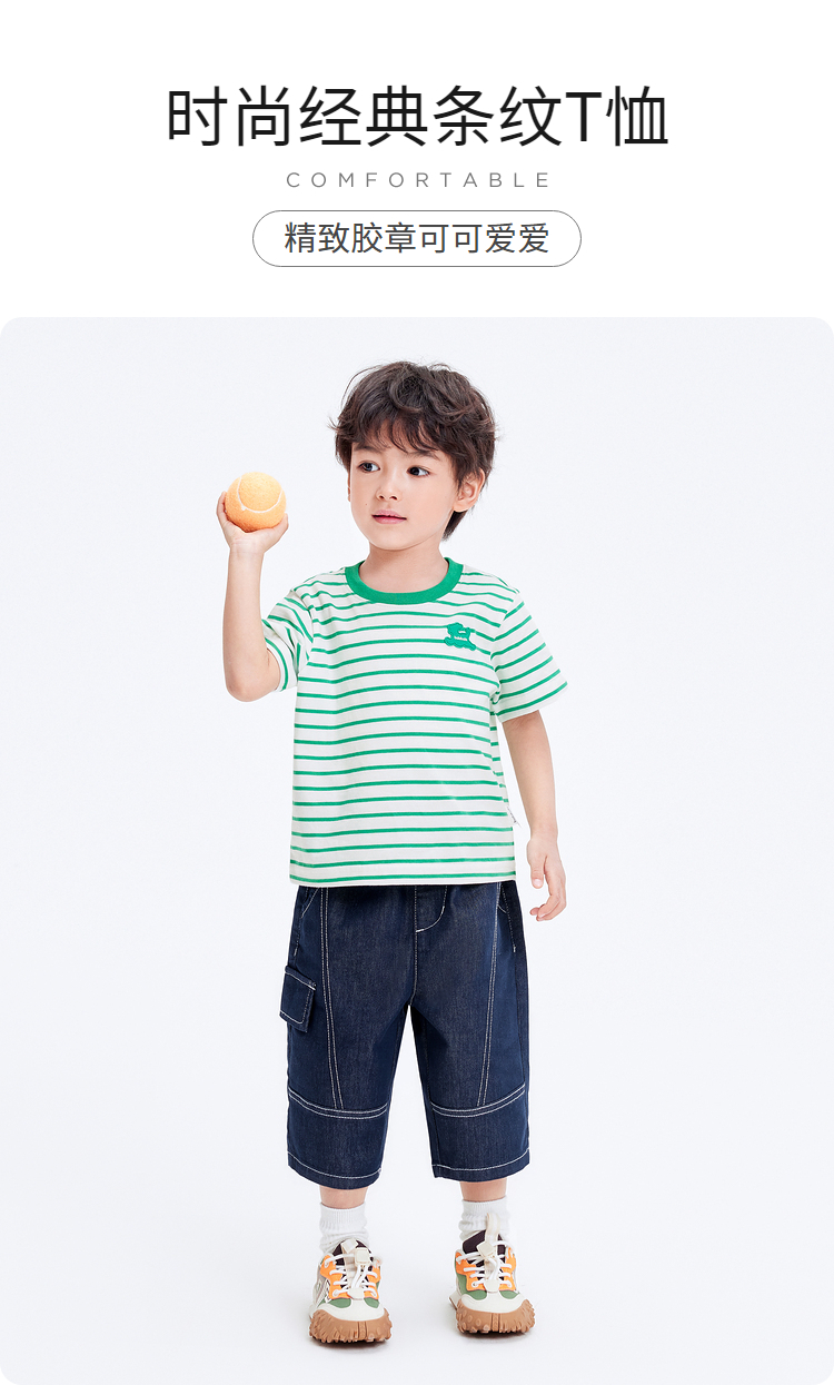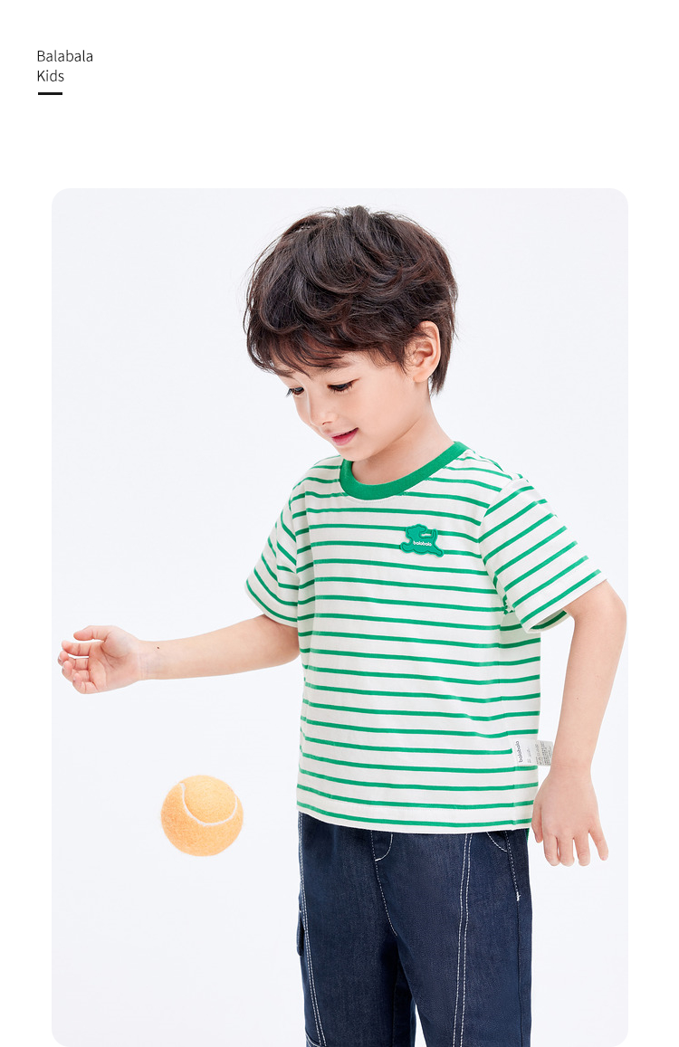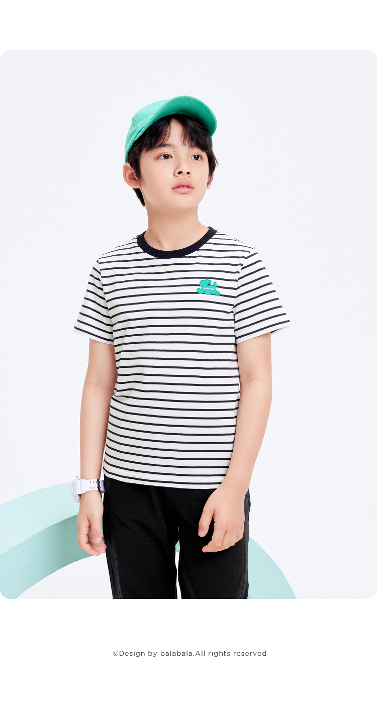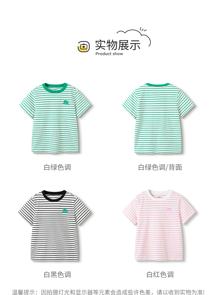 巴拉巴拉男童t恤女童短袖上衣夏装纯棉亲子装条纹时尚舒适百搭潮