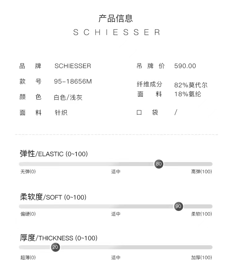 - 来自德国的SCHIESSER舒雅,专注做内衣一百四十余年,不遗余力的材料创新,因材而异的专业剪裁,健康环保的加工技术以及充满文化关注的时尚主题,做你认识之外的舒适内衣。