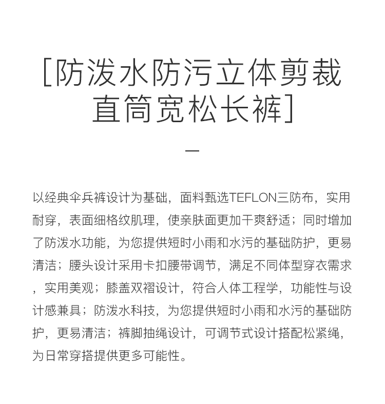 WHEELS and WIND 防泼水防污立体剪裁直筒宽松长裤
