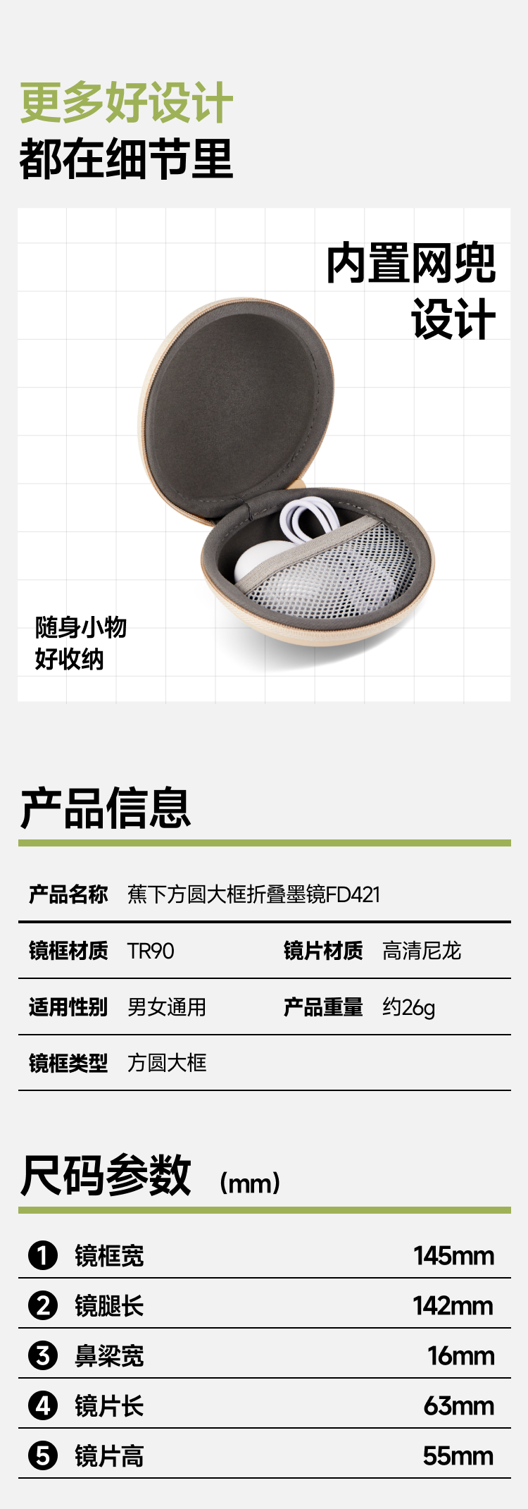 墨镜!【蕉下方圆大框折叠墨镜】25SS-蕉下方圆大框折叠墨镜FD421 0320