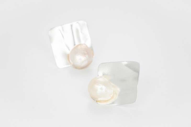 材质: 925 silver square earpieces with cultured baroque pearls.