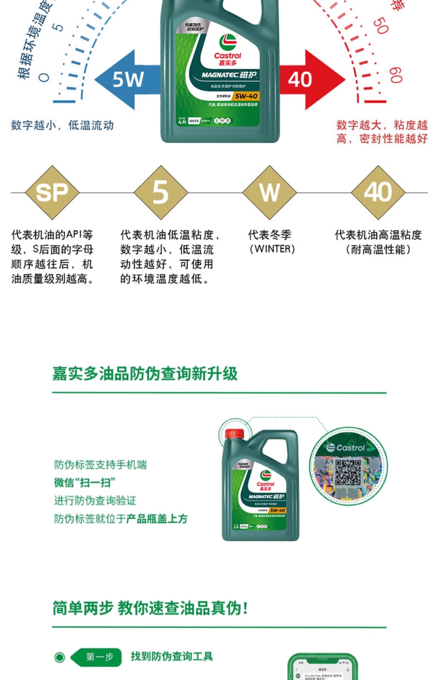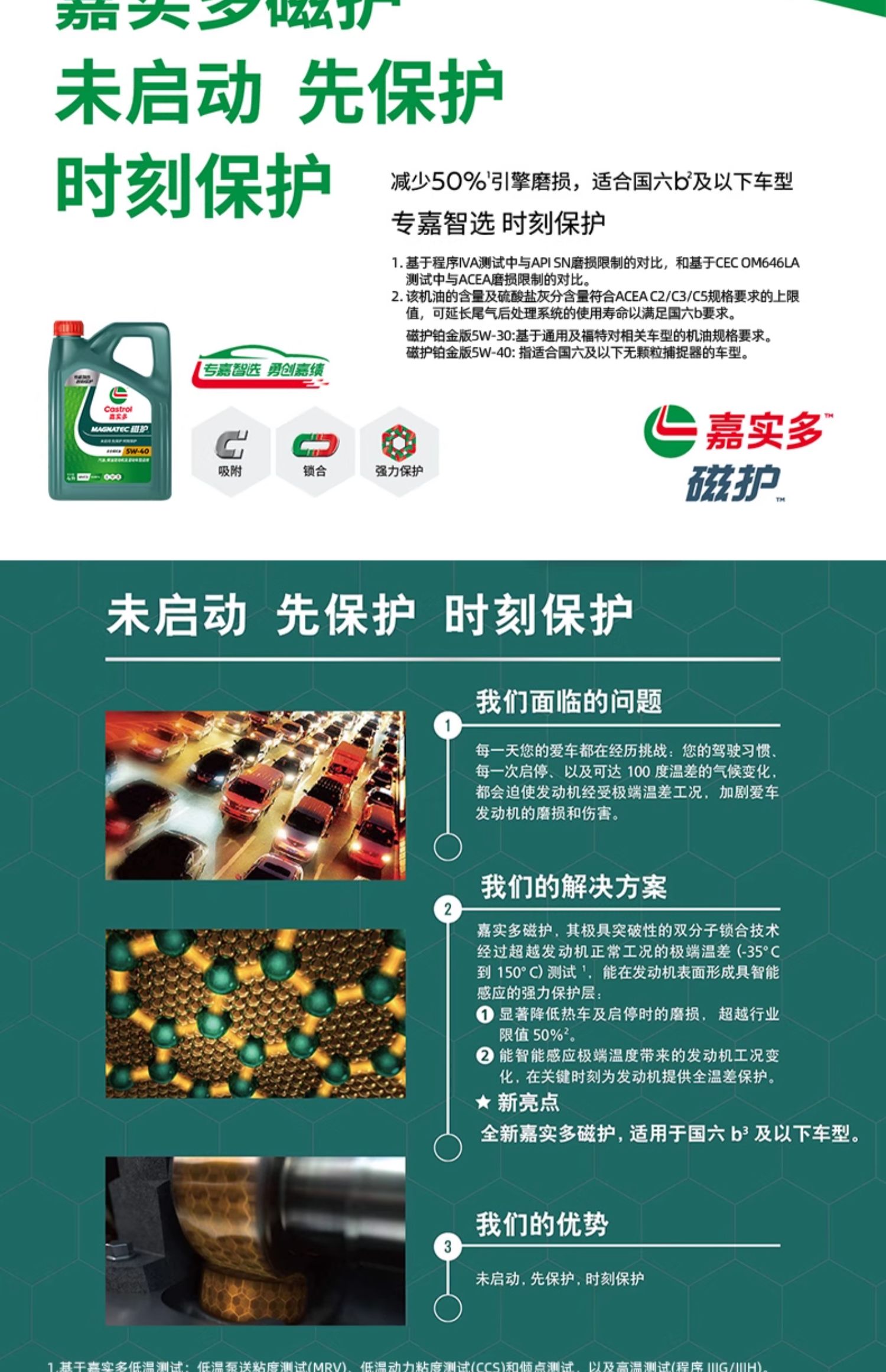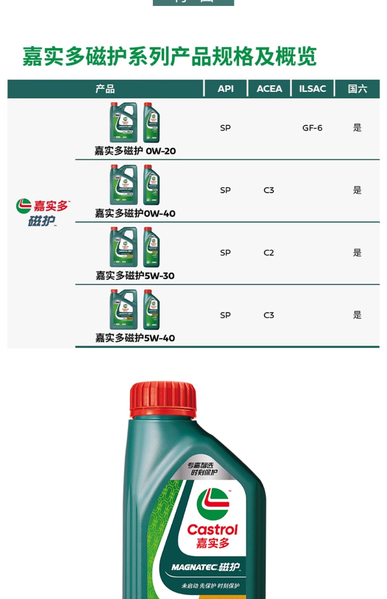 嘉实多磁护5W-40 API SQ;ACEA C3全合成润滑油,适合国六b及以下车型