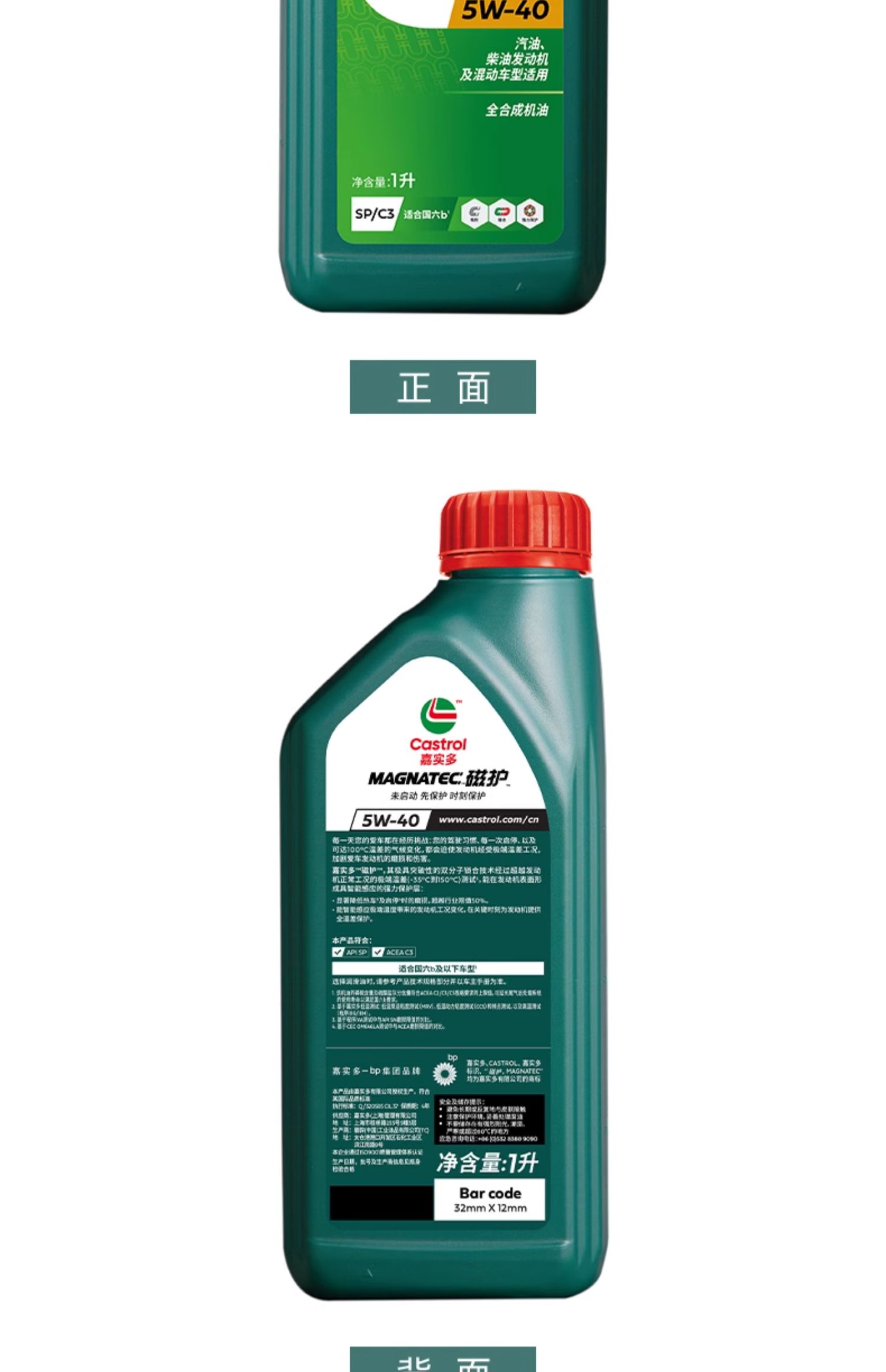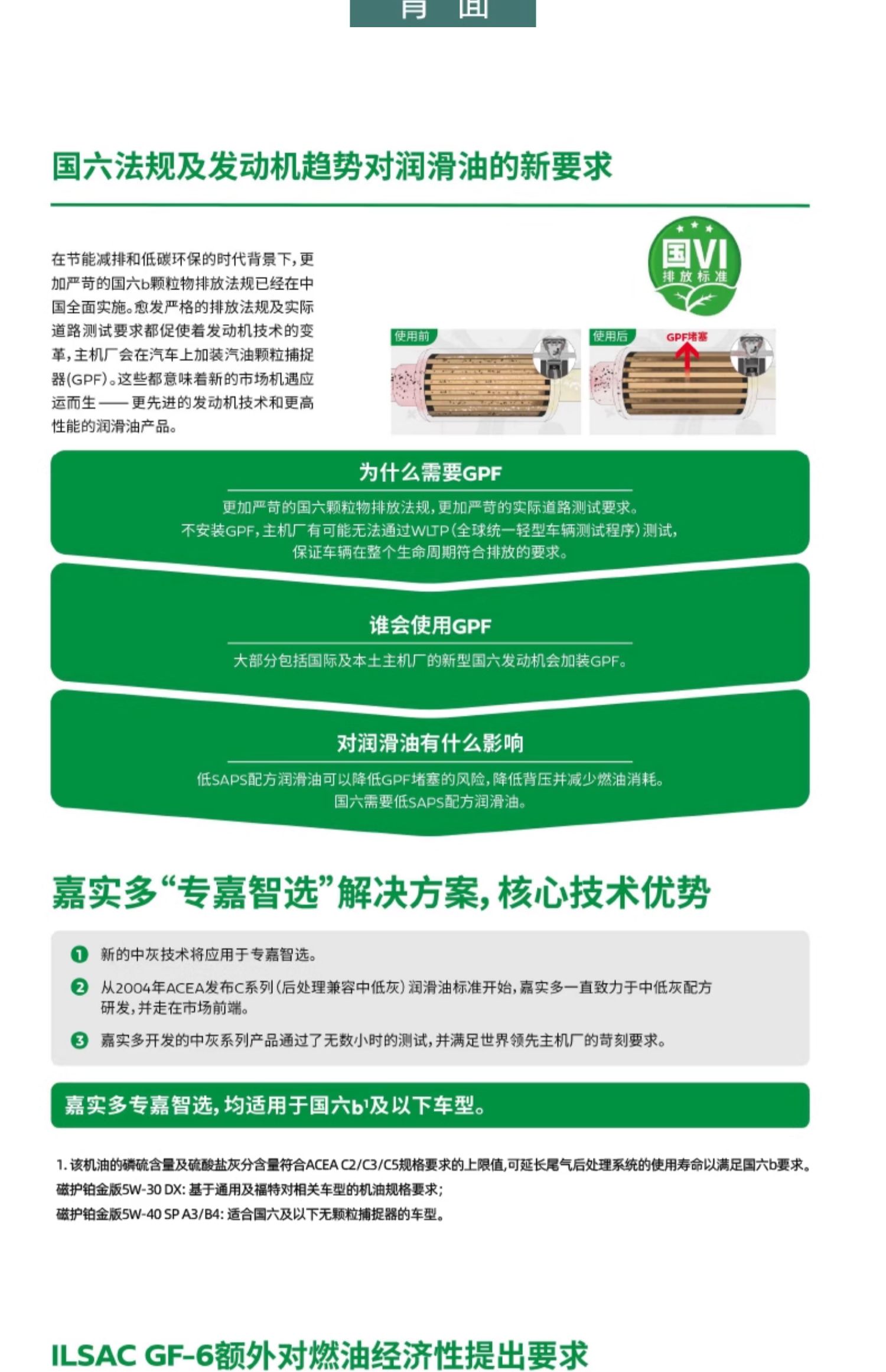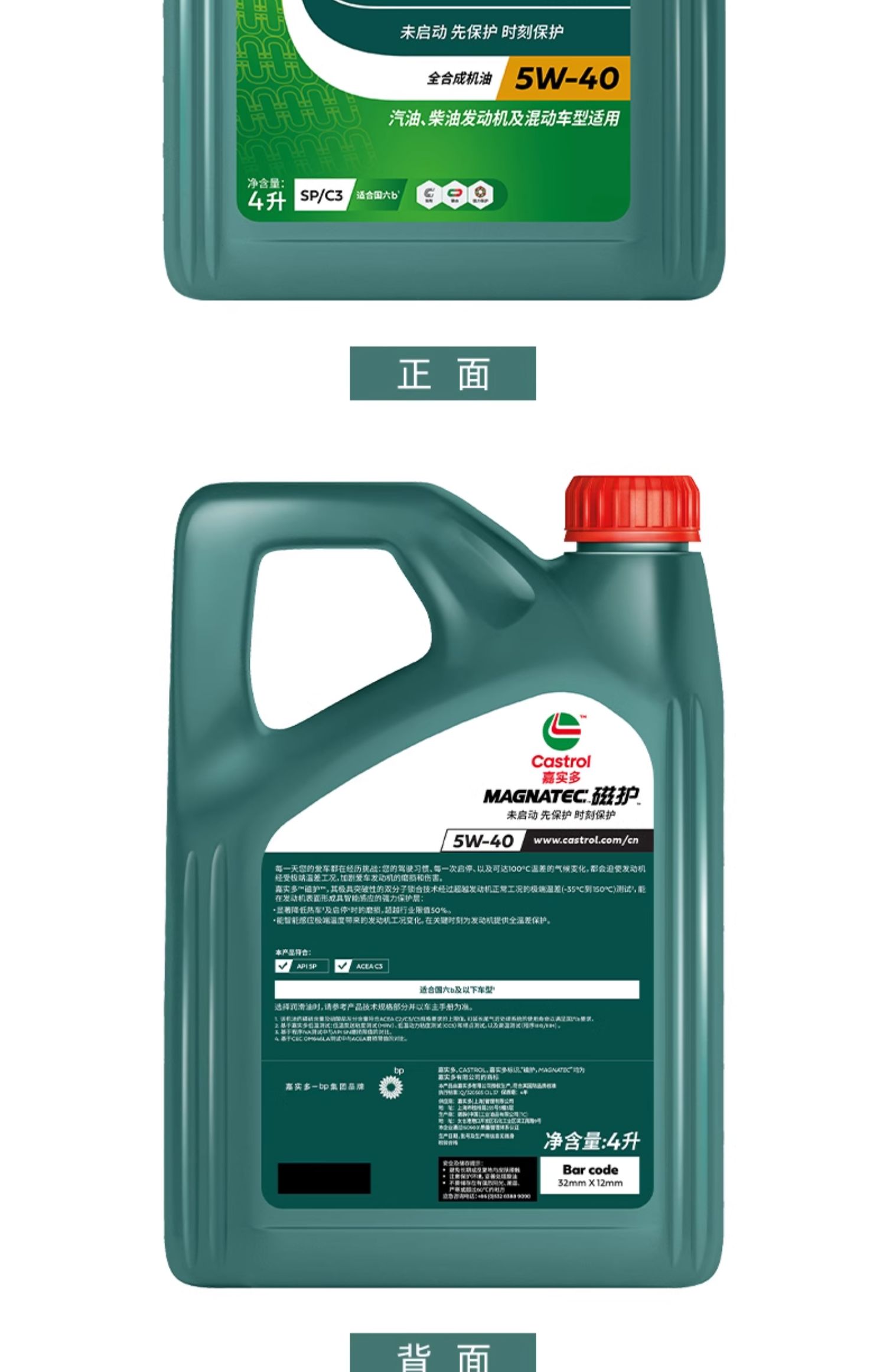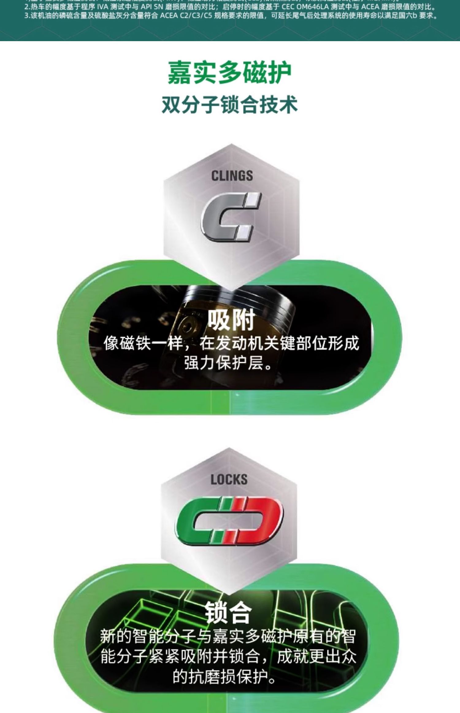 嘉实多磁护5W-40 API SQ;ACEA C3全合成润滑油,适合国六b及以下车型