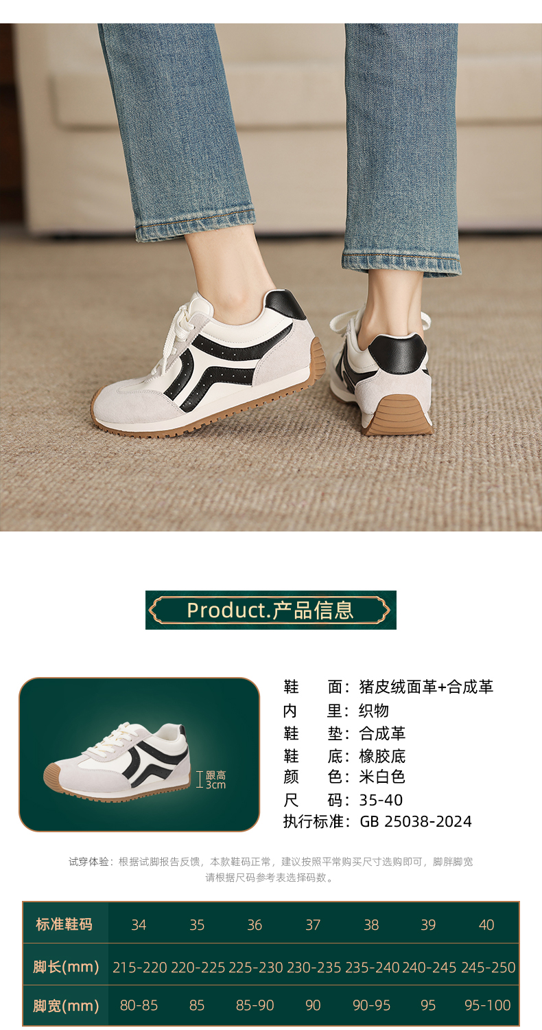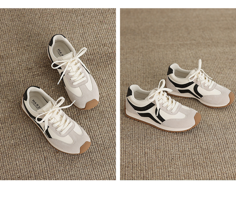 阿么手工女鞋透气百搭软底阿甘鞋2026冬季新款拼接系带休闲鞋3CM 商品图3